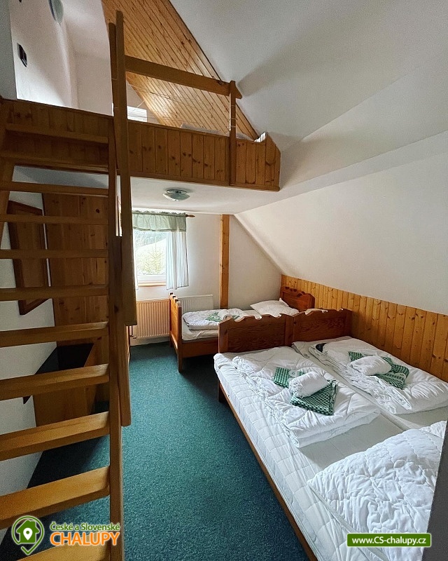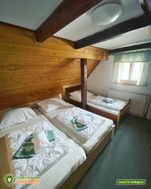 Chalupa Krkonoše s letním bazénem - Horská chalupa nedaleko Relaxparku Pec pod Sněžkou (bobová dráha, Monkey park, skluzavky, trampolíny, jízda na kladce). Chalupa leží u sjezdovky a nabízí ubytování pro až 27 osob v 7 ložnicích (3x pětilůžková ložnice a 4x třílůžková ložnice). K dispozici je prostorná společenská místnost s krbem, televizí a stereo soupravou a plně vybavená kuchyň (lednice, mrazák, sklad na potraviny, myčka, rychlovarná konvice, mikrovlnná trouba, 2x sporák s troubou a kávovar na kapsle). Možnost zapůjčení výčepního zařízení s chlazením. Sociální zařízení zahrnuje dvě koupelny se sprchovým koutem a WC a samostatné WC v patře u ložnic. Objekt je vytápěn kotlem na peletky, možnost topení i v krbu na brikety. K dispozici Wi-Fi připojení, šipky a lyžárna na úschovu vybavení. Parkování možné u objektu pro 7 aut. U chalupy je venkovní posezení s grilem, venkovním krbem a udírnou. V okolí chalupy se můžete věnovat turistice, cykloturistice, houbaření, lyžování a běžkování. LÉTO: Lanová dráha Sněžka - Pec pod Sněžkou, Lanová dráha Černá hora - Janské Lázně (turistika, cyklistika, koloběžky, dětský zábavní park), Relaxpark - Pec pod Sněžkou (bobová dráha, Monkey park, skluzavky, trampolíny, jízda na kladce), Stezka korunami stromů v Janských lázních, Mladé Buky - rodinný areál pro rodiny s dětmi, ZOO Dvůr Králové nad Labem, Adršpašské a Teplické skály. ZIMA: Největší lyžařský areál v ČR: Černá hora (sáňkářská cesta), Pec pod Sněžkou (bobová dráha), Velká Úpa, Černý důl, Svoboda n. Úpou. Horní Malá Úpa (kluziště), Mladé Buky (bobová dráha) a Krkonošská lyžařská magistrála pro milovníky běžek. Těšíme se na Vás u nás.