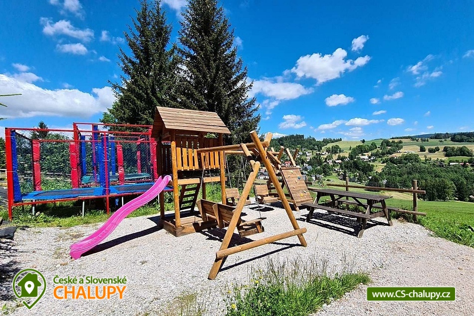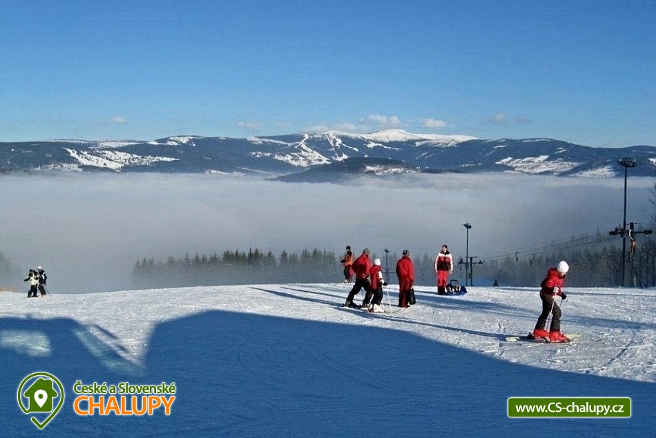 Pension Harry - accommodation on ski slope with wellness - Vysoke nad Jizerou - Sklenařice - SKI Šachty. Cottage HARRY PENSION all year round, our accommodation capacity is 30 beds. There is a year-round indoor whirlpool included in the price and a Finnish sauna at an additional cost. We offer accommodation in TWO 6-BED AND FOUR 4-BED APARTMENTS WITH HALF BOARD. Skiing is connected with the ski resort Šachty Vysoké nad Jizerou. The cottage is located on the border of the Jizera Mountains and Giant Mountains, 200 m from the road from Sklenařice to Vysoké nad Jizerou. Parking directly at the cottage. There is a well-maintained path leading to the building, which is a tourist connection between the glassworks and the village of Vysoké nad Jizerou. Fifty meters from the entrance of the house ends the ski lift, which does not disturb the peaceful character of the countryside and semi-remote area (very suitable for children or beginners). It is possible to ski to the Šachty ski resort in Vysoké nad Jizerou and to come back on skis to the house. All our rooms are comfortably newly renovated and have their own bathroom. Guests have a TV, satellite and wifi. The whole house is non-smoking. Bicycles, skis, prams for children and other things can be stored in a special lockable room. Towels and bed linen are provided. The cottage is open all day at Harry's House, not only for our guests. Breakfast is served as a buffet from 08.00 to 09.30. This gives you the ideal time for morning trips when staying with young children. Dinner is served - choice of 2 meals. Dinner time is 18.00 to 19.30. We also provide space for companies and corporate events. The outdoor terrace overlooking the ski slope is a great relaxation for parents who have their children in control when skiing. There is a ski resort in Paseky nad Jizerou (3 km), Rokytnice nad Jizerou (10 km) or in Harrachov (18 km). Next to the house there is a popular cross-country trail from Vysoke nad Jizerou to Stepanek and back. to Paseky, Zlata Olesnice, etc. Nearby ski resorts: Shafts - Vysoke nad Jizerou, Metlak - Sklenařice, ski lift TJ Sokol Sklenařice, Kamenec - Jablonec nad Jizerou, Ski resort Paseky nad Jizerou, Zlata Olesnice and Korenov - Rejdice.
