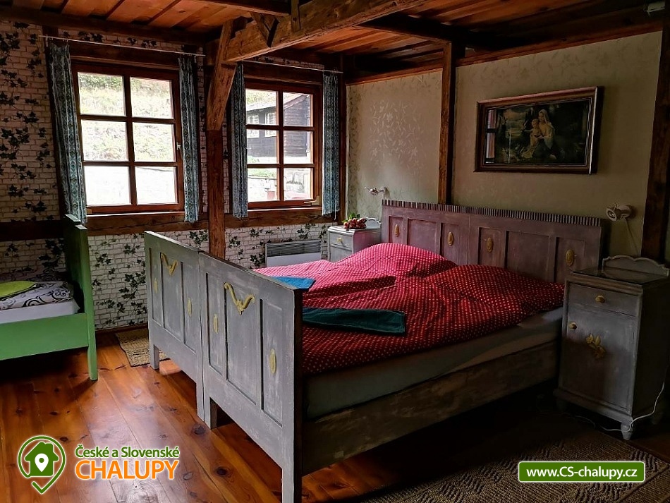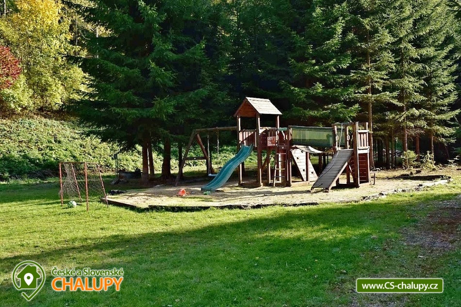 Chalupa Kyjovské údolí, obec Krásný Buk - Národní park České Švýcarsko. Chalupa poskytuje ubytování pro až 9 osob na 7 pevných lůžkách a 2 přistýlkách. Přízemí chalupy tvoří prostorná obývací plocha s velkou rohovou rozkládací pohovkou (2 přistýlky), barem, plně vybavenou kuchyní (vč. myčky nádobí), jídelnou se dvěma stoly a koupelnou s velkým sprchovým koutem, toaletou, umyvadlem a pisoárem. Celé přízemí (mimo koupelnu), je jeden otevřený prostor cca 80 m². V 1. poschodí nalevo je situována mezonetová ložnice se spacím patrem (2+2 lůžka) a velkou lodžií s výhledem na jih do údolí. Uprostřed je prostorná koupelna s vanou, toaletou a umyvadlem. Na druhé straně patra se nachází další ložnice se třemi lůžky a velkou šatnou (samostatná malá místnost). Objekt je vytápěn litinovými americkými kamny na dřevo, podlahovým topením a přímotopy. Areál nabízí také velké ohniště s posezením (možnost grilování) a dětské hřiště s prolézačkami. Celá chalupa je nekuřácká. Možnost ubytování i se psy (s podmínkou, že nebudou zůstávat v objektu bez dohledu). Stravování je vlastní, případně snídaně je možné domluvit v penzionu Na Bělidle (20 m). Parkování je možné přímo u chalupy. V blízkosti se nachází vstupní brána do Českého Švýcarska - Kyjovské údolí. Nedaleko je restaurace a přírodní koupaliště - Kyjovská přehrada. Národní park České Švýcarsko patří mezi nejvzácnější přírodní oblasti České republiky. Leží v severních Čechách, v okrese Děčín, na pravém břehu řeky Labe podél státní hranice se Saskem. Hlavním předmětem ochrany jsou unikátní pískovcové útvary a na ně vázaný biotop. Možnosti koupání: Kyjovská přehrada, rybník Doubice, koupaliště Chřibská, přírodní koupaliště Mikulášovice, koupaliště Jetřichovice a koupaliště Jiřetín pod Jedlovou. Těšíme se na Vaši návštěvu.