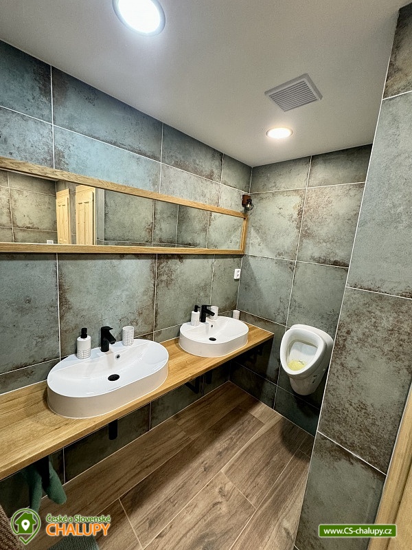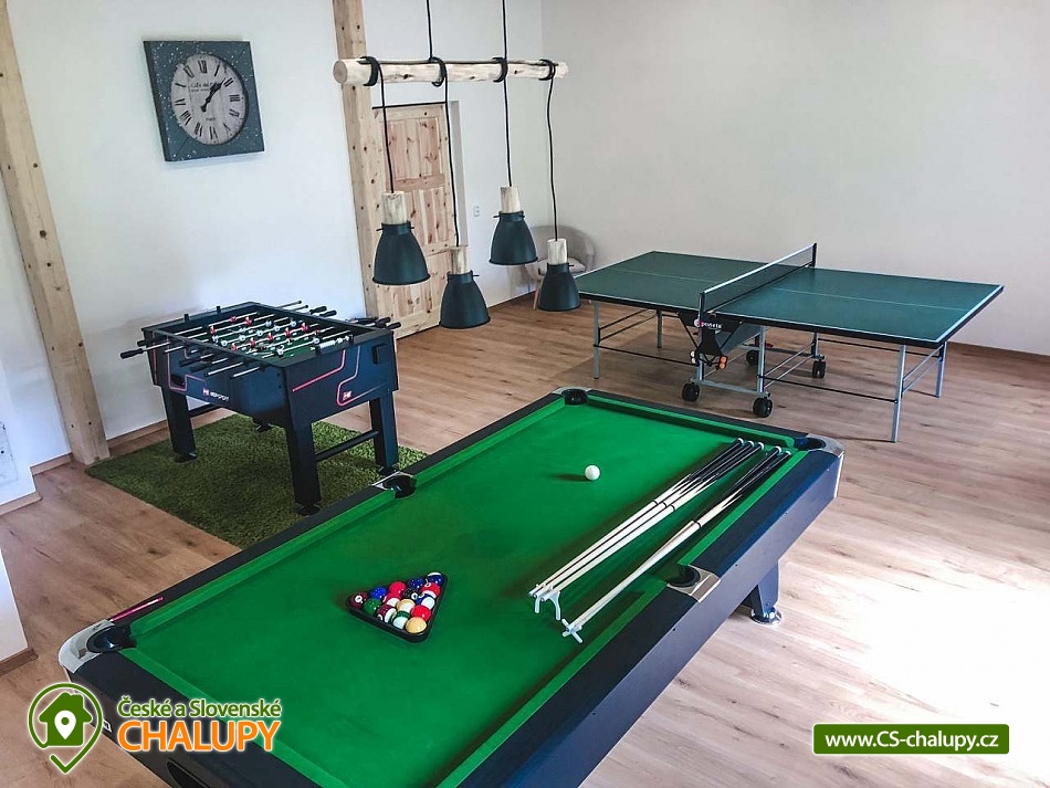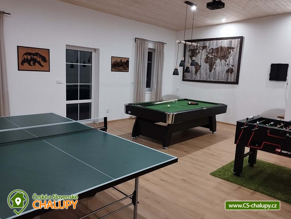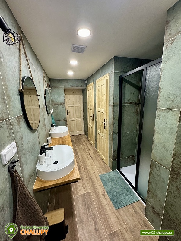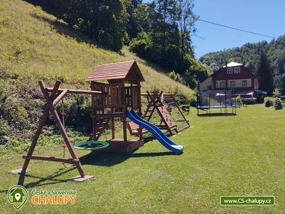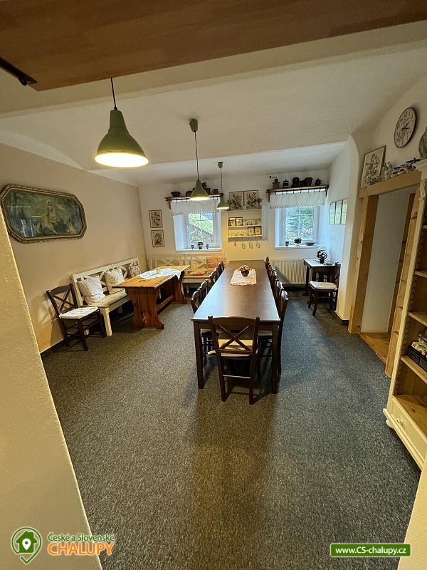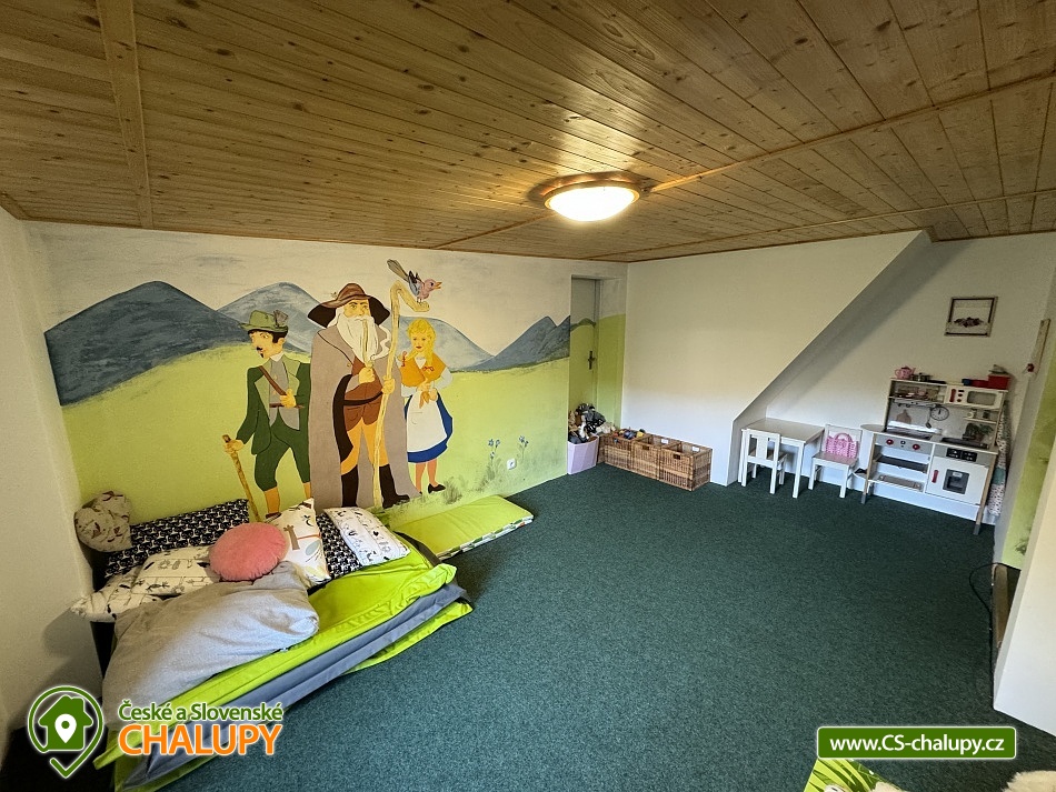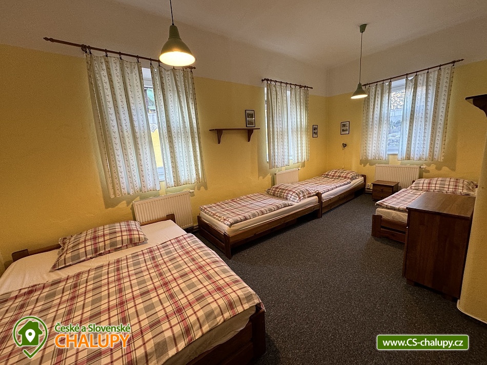 Chalupa v CHKO Krkonoše u Luisina údolí v malém horském středisku Dolní Dvůr u obce Strážné a Hořejšího Vrchlabí. Vzhledem ke své poloze a svému okolí je chalupa ideální pro rodinnou dovolenou s dětmi nebo pro větší skupiny osob. Chalupa je v blízkosti centra obce s výbornou dostupností a parkováním přímo před objektem pro až 10 aut. Jedná se o velmi klidnou lokalitu v těsné blízkosti areálu Family. Ubytovací kapacita chalupy je 24 - 33 osob v 8 - 10 pokojích, které se nacházejí v patře a jsou vybaveny stylovým nábytkem. Celkem je zde 8 pokojů pro 24 osob. Pokoje jsou 1x pětilůžkový, 2x čtyřlůžkový, 1x třílůžkový a 4x dvoulůžkový. Pro větší skupiny můžeme poskytnout ubytování i v podkroví, tj. pro dalších 9 osob. Po domluvě Vám rádi zapůjčíme dětskou postýlku a dětskou vaničku. Nové sociální zařízení: 2X WC pro pány a 2X WC pro dámy, 2X sprcha pro pány a 2x sprcha pro dámy - to vše se nachází v přízemí. Wc s umyvadlem a sauna v prvním patře. Koupelna se sprchovým koutem a 2X WC se nachází v podkroví. V přízemí je velká společenská místnost s TV a krbem, kterým lze vytápět celý objekt (topení je zajištěno také elektrokotlem), jídelna pro 24 osob a prostorná, vybavená kuchyně, velká herna s kulečníkem, stolním fotbalem, stolním tenisem, šipkami a projektorem. Dále je v přízemí sklad potravin/ studená spižírna/ a lyžárna. Plně vybavená kuchyně se dvěma elektrickými sporáky, mikrovlnou troubou, varnou konvicí, topinkovačem, lednicí a velkým mrazákem. Další lednice se nachází ve spižírně. Na různé druhy párty je v kuchyni výčepní zařízení pro čepování piva, které jsme schopni klientům zajistit po předchozím objednání za velkoobchodní cenu. WI - FI pokrytí zdarma. Vytápění: Komfortní vytápění krbem s výměníkem v obývacím pokoji, kterým lze vytápět celý objekt v kombinaci s elektrokotlem. Příjemné teplo z krbu navodí tu pravou chalupářskou atmosféru. V podkroví se topí pouze elektrokotlem. V okolí doporučujeme: Krásnou procházkou 4 km od naší chalupy je chata " Apalucha " kde se natáčela komedie "S tebou mě baví svět". Naproti od chalupy je kostel sv. Josefa s unikátní zvonkohrou, která hraje různé melodie charakterizující čtvero ročních období a Vánoce. V těsné blízkosti chalupy se nachází také tělocvična nebo přírodní dětské hřiště. Kouzelné jsou výlety na horských kolech po okolních krkonošských boudách. V Dolním Dvoře jsou 2 lyžařské areály s kompletním vybavením (sjezdovky, bar, půjčovna, servis, občerstvení), které nabízí lyžování bez front na denně upravovaných svazích za nejlepší ceny. Z Lánova jezdí cyklobus do okolních středisek. Zhruba 2 km od nás je Luisino údolí z typickými a nádhernými krkonošskými roubenkami. V zimě: Pro náročnější lyžaře je možné navštívit větší skiareály v dojezdové vzdálenosti do 20 minut. Nejbližší jsou Skiareál Luisino údolí (2 km), Skiareál Strážné (7 km). Skiareál Herlíkovice (12 km), Kněžický vrch ve Vrchlabí (8km) nebo Černý Důl (12 km) se sedačkovou lanovkou. Skiareál Jánské Lázně - Černá hora (17 km) s kabinkovou lanovkou nebo známý Skiareál Špindlerův mlýn (20 km). Celoročně: V nedalekém Vrchlabí je také letiště, kde si můžete zajistit vyhlídkové lety.