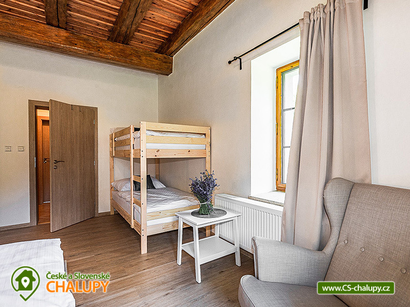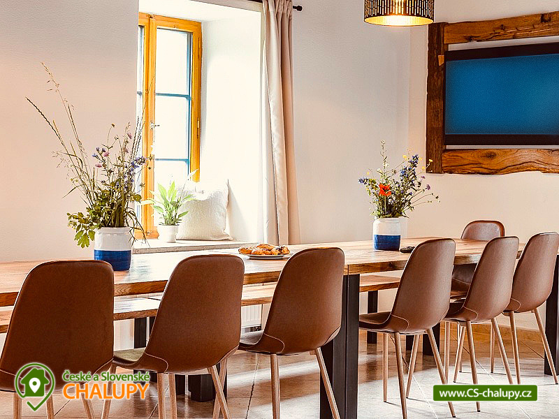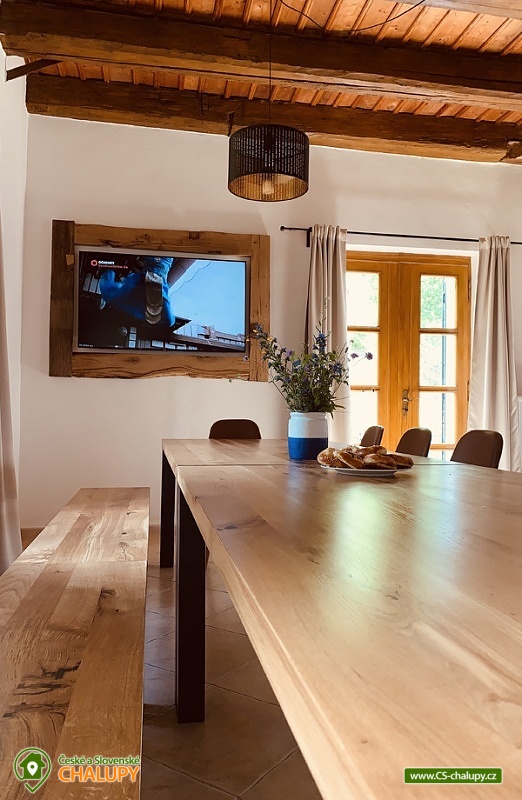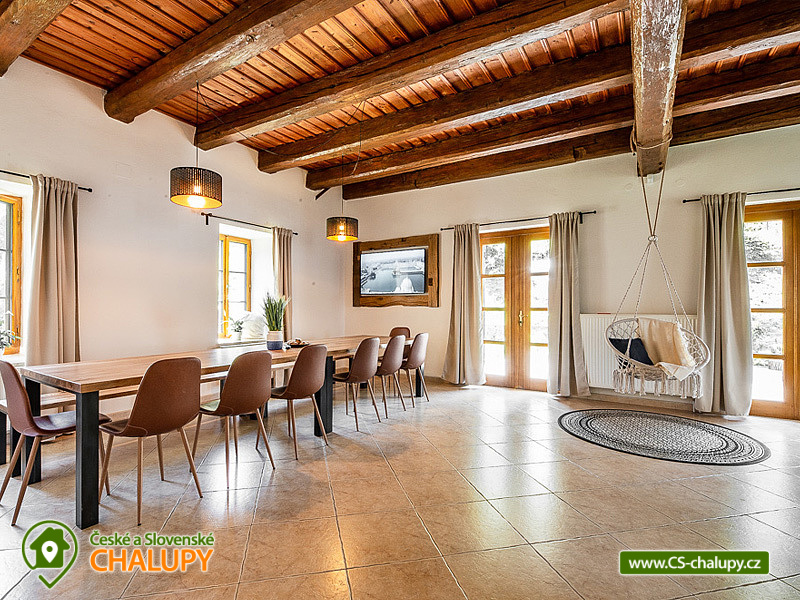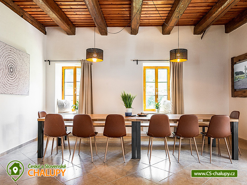 Chalupa Moravský kras nabízí ubytování ve venkovském stylu v lokalitě u města Blansko a Boskovice, obec Černá Hora. Kapacita 14 lůžek / 4 ložnice. V přízemí chalupy se nachází ložnice pro 4 osoby, samostatná koupelna s vanou a samostatná toaleta. V patře jsou 3 pokoje – 1. pokoj pro 4 osoby, 2. pokoj také pro 4 osoby a 3. pokoj pro 2 osoby. Samostatná koupelna se dvěma umyvadly a sprchovým koutem, dále samostatná toaleta. Pokoje jsou vybaveny nábytkem pro uložení oblečení a postele jsou z masivního dubu. V přízemí chalupy je dále prostorná společenská místnost s mohutnými trámy pod stropem a krásnými modrými kachlovými kamny. Dále je vybavena sedací soupravou s konferenčním stolkem, je zde také jídelní dubový masivní stůl pro 14 lidí, barový stolek, 2 barové židličky a dětská židlička. Kuchyň je vybavena plynovým sporákem, vestavěnou troubou, mikrovlnou troubou, myčkou nádobí, 2x lednice s mrazákem, rychlovarnou konvicí, kávovarem Tchibo na kapsle, topinkovačem, toustovačem, kompletním kuchyňským nádobím a jídelním servisem. Ložnice jsou vybaveny nábytkem pro uložení věcí a postelemi z masivního dubu. Dětskou postýlku pro vaše miminka se lze bez problému postavit do 3 ložnic. K dispozici je venkovní posezení na terase s grilem, posezení u ohniště, lehátka na zahradě, nebo zastřešené posezení. Pro děti máme k dispozici dětské hřiště se skluzavkou, trampolínu a lanové atrakce. Parkování je pro 7 aut přímo na pozemku. Dále je k dispozici garáž s dálkovým elektrickým ovládáním pro vaše kola, motorku a v zimním období pro lyže. V Černé Hoře je několik obchodů, restaurací, pizzerie, pekárna, místní pivovar a také prodejna čerstvých ryb. Díky velkorysé dispozici nabízí soukromí na pozemku o velikosti 4.000 m². Chalupa se nachází v blízkosti R43 Brno - Svitavy. Přímo u chalupy vede cyklostezka směrem k Moravskému krasu a v okolí najdete spoustu jiných cyklistických i turistických tras. Chalupa Černohorka se nachází v oblasti Moravského krasu a jeho okolí, kde najdete: propast Macocha, Punkevní jeskyně, Sloupsko - Šošůvské jeskyně, Balcarka Jeskyně nebo např. Kateřínské jeskyně.
