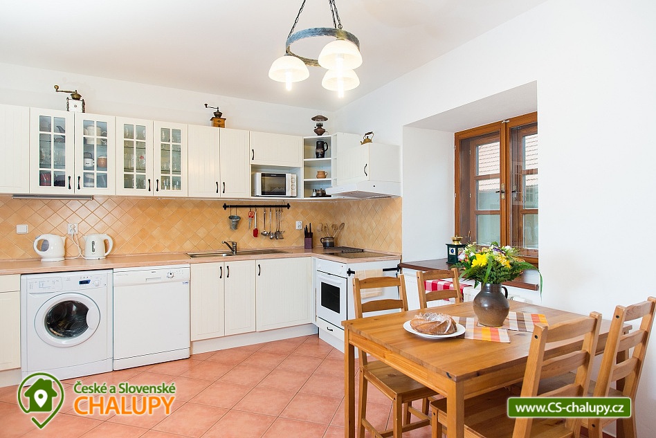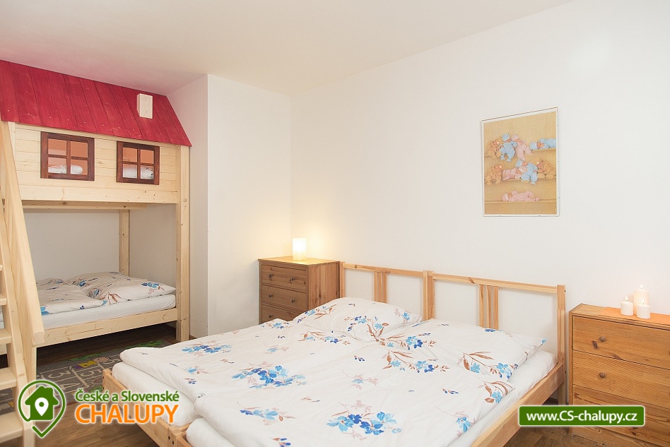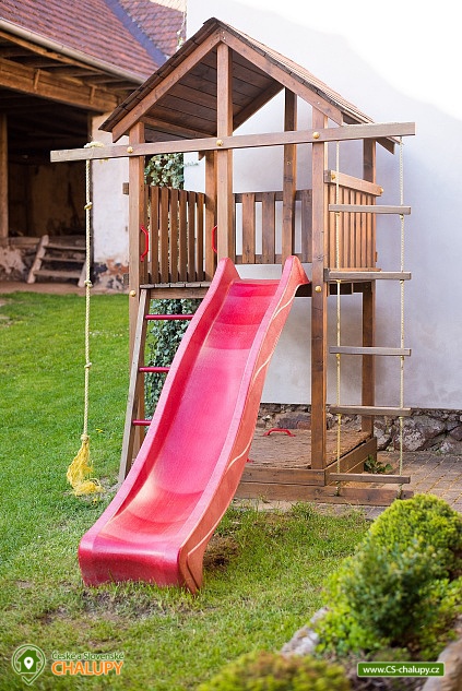 Chalupa Mysletice - Telč - Czech Canada. Comfortably renovated cottage with sauna and pond in the garden located in the village of Mysletice, district of Jihlava. Quiet location without direct neighbors, near forests, playground and playground. There is a cycle path around the cottage. Inside the luxuriously furnished cottage is a fully equipped kitchen (sitting, electric stove, microwave, 2x electric kettle, refrigerator, coffee maker, dishwasher, freezer, kitchen scale, blender, electric whirlpool, stool) including wood stove. There is also a large central room with TV and fireplace seating. The property has 5 bedrooms. Of which 4 bedrooms on the floor = 2 bedrooms with double bed, 1 bedroom with 2 single beds and 1 bedroom with bunk bed and double bed. On the ground floor there is a 5th bedroom with 2 single beds and a bunk bed with 2 double beds. There is a cot. The sanitary facility includes 3x toilet and 2 bathrooms with shower, hairdryer available. The heating is provided by solar, electric and fireplace. There is a sauna, a gym and a table tennis table. Large family celebrations can be organized in the building. Closed courtyard with seating under the shelter with barbecue, children's cottage, slide and sandbox. In the garden open fireplace. Free Wi-Fi internet access is available throughout the property. Parking possible in the premises of the yard outside the lawn. The cottage is located near the town of Telč in view of the highest peak Javořice and in the immediate vicinity of Czech Canada. The advantage of this area is still a low level of tourism, unspoilt nature, picturesque scenery, little fun paths ideal for cycling, extensive forests for walking, mushroom picking and ponds with clean water. Nevertheless, there are great summer cultural events, monuments and sports activities. Natural attractions in the surroundings: Javořice, Dyje Spring, Rock Formations - Míchova Rock, Bradlo, Hradisko, Spruce King Javořice, Rastýnská obora, region Czech Canada. Nearby sights: Telč Chateau, Dačice, historical towns Slavonice and Jindřichův Hradec, castles Landštejn, Štamberk, Roštejn Castle, Janštejn, monasteries Kostelní Vydří and Nová Říše. For sports use are possible tennis courts Krahulčí, bowling Telč, Dačice, Golf Šišek's Mill near Telč or rope center Lhotka.