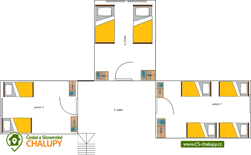- 7 bedrooms: 2x 4, 2x 3, 3x 2