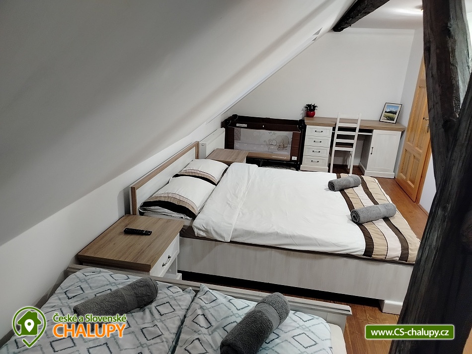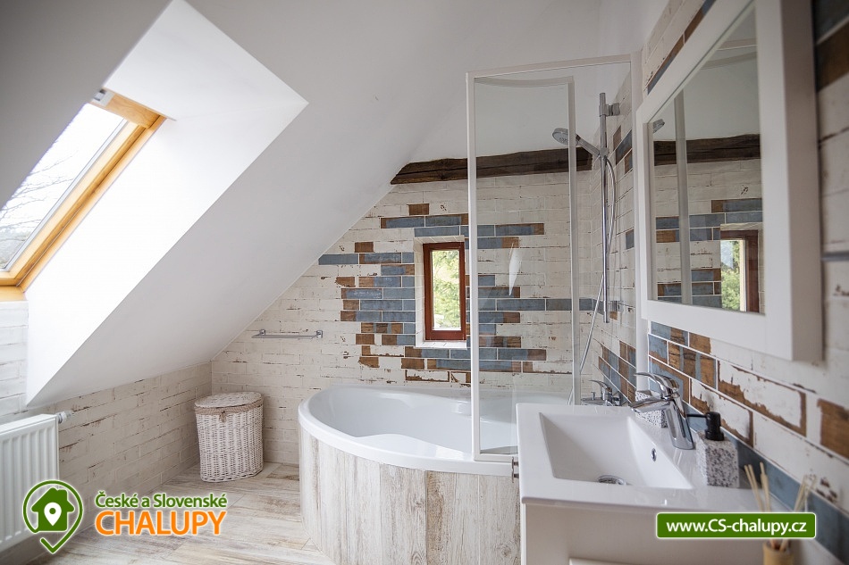 Cottage Bouduv Mlýn - Skuhrov - accommodation Vysočina. The cottage for rent with a capacity of 15 people is located in a secluded area, one kilometer from the village of Skuhrov, Vysočina region. On the first floor of the cottage there are 3 bedrooms (3 x 4 beds), two bathrooms equipped with a shower, toilet and sink. One of the rooms also has a sink directly in the room. A washing machine is also available here. Furthermore, on the first floor there is a fully equipped kitchen, induction hob, oven, fridge, freezer, dishwasher, microwave oven and Dolce Gusto coffee machine. There is also a hall with a dining table and an indoor pellet boiler, where you can relax on sheepskins by the stove. On the second attic floor, there is one room for 3 guests, equipped with its own bathroom, where there is a bathtub, toilet and sink. There are 2 cots available in the building. On this floor there is also a hall with a sitting area, a sofa, an armchair and a small children's corner. There is a fully equipped bar (fridge, freezer, induction two-burner hob, sink and tap equipment. There is also a smart TV in the living room. All rooms are equipped with their own TV. There is Wi-Fi connection in the building. On the ground floor it is possible use the table tennis table. The large yard has a fire pit, an outdoor brick smokehouse and several places to sit. There is a trampoline, a children's swing, a children's playhouse and a small pool (for the summer season). In the deep woods here, you can not only mushroom picking, but you can also discover a well with healing water here. You can visit, for example: Lipnice nad Sázavou (16 km) with its castle, the grave of Jaroslav Hašek, or take a walk in the local forests. Havlíčkův Brod (9 km), with its historic walls and the museum of Karel Havlíček Borovský. Humpolec (27 km), here you can visit the local brewery Bernard, with an observation tower or the nearby ruins of the Orlík castle. Žďár nad Sázavou (37 km), here you can find Zelená hora, a UNESCO monument, Pilák recreation area or, for example, Žďár castle above Sázava. We look forward to seeing you here.