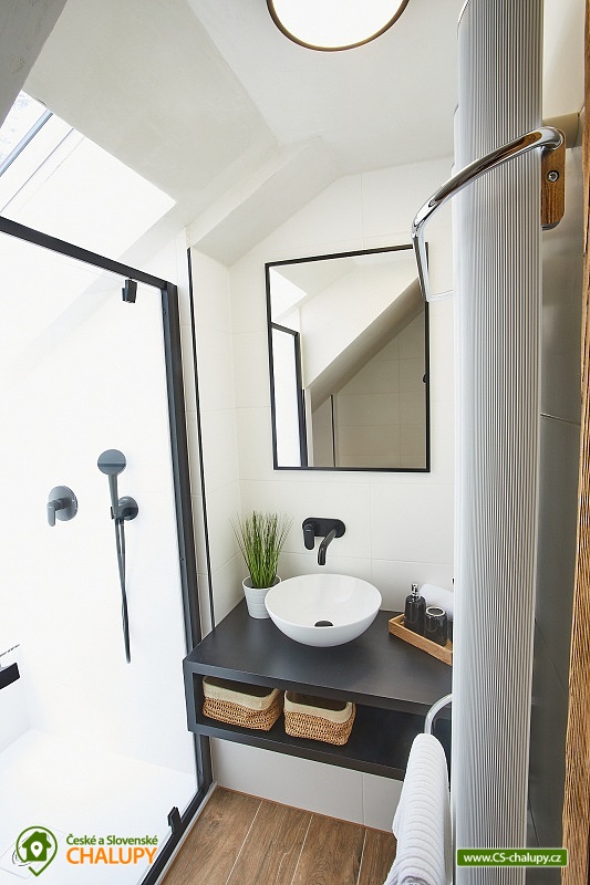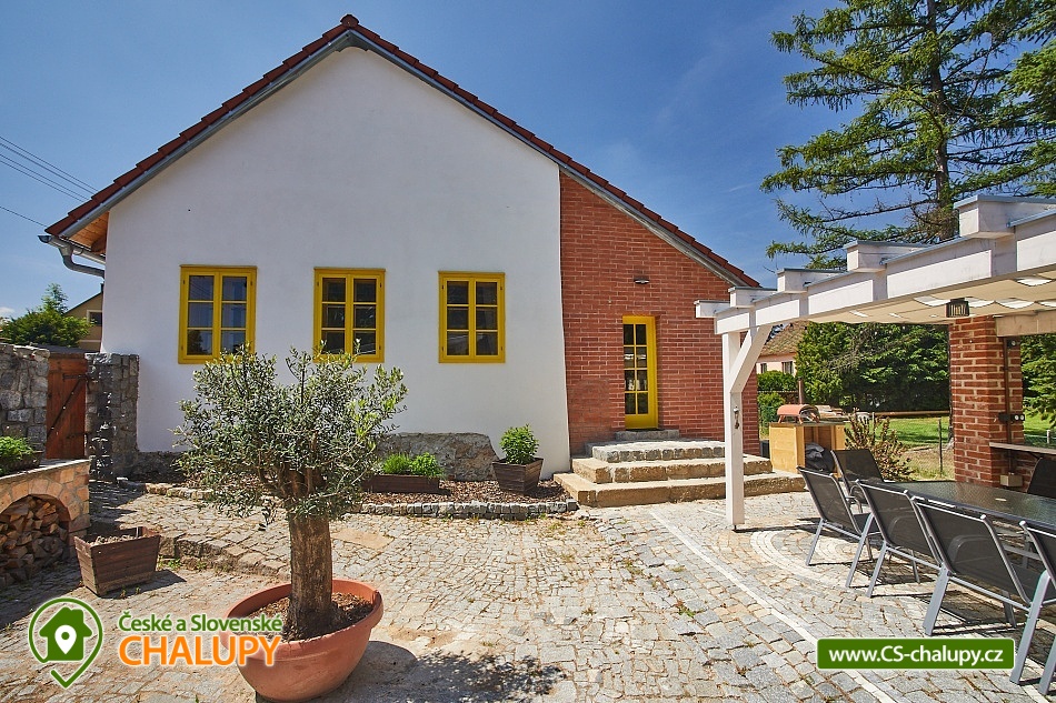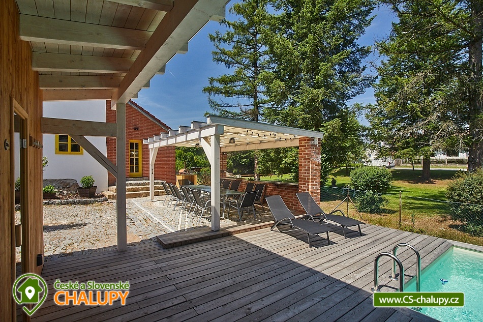 Ať již vyhledáváte aktivní nebo odpočinkovou dovolenou, chalupa v Nové Vsi nad Lužnicí splní oba požadavky. Nabízí ubytování ve třech ložnicích po čtyřech lůžkách celkem 12 osobám, plně vybavenou kuchyň, obývací pokoj, dvě koupelny se společným WC, vinný sklep a zahradu s posezením, ohništěm, grilem, pizza pecí, vířivkou, finskou saunou a bazénem se slanou vodou. Ze zahrady se Vám nabízí výhled do udržovaného obecního parku, ve kterém zejména rodiny s malými dětmi ocení dětské hřiště, které je v bezprostřední blízkosti chalupy, avšak nikterak neruší zdejší klid. Vybavení a ubytování Interiér chalupy je plně nekuřácký. Ve třech ložnicích se může ubytovat až 12 hostů (1 ložnice v přízemí, 2 ložnice v prvním patře), dále jsou zde dvě koupelny se sprchovým koutem a WC, obývací část a kuchyň s jídelním koutem. Kuchyň je vybavena lednicí, myčkou nádobí, elektrickou troubou s indukční varnou deskou, kapslovým kávovarem Nespresso, topinkovačem a dostatečným množstvím nádobí. Z kuchyně vede vstup do vinného sklepa, kde můžete posedět nad sklenkou lahodného moravského vína, které si u nás můžete zakoupit. V obývacím pokoji se Vám o zábavu postará internetová televize a společenské hry, se kterými můžete strávit nejeden večer. Pokud se venku ochladí, jistě oceníte krbová kamna, která zajistí příjemné teplo. Mimo ně jsou k dispozici elektrické přímotopy a v obývacím pokoji a kuchyni navíc klimatizace. Samozřejmostí je také wi-fi připojení, které Vás udrží v kontaktu s okolním světem. Zahrada a wellness Zahrada Vás zve k posezení v pergole, grilování, opékání buřtů u ohniště nebo upečení vlastní pizzy v pizza peci. Horké dny můžete strávit u bazénu se slanou vodou a večer si dopřát odpočinek ve venkovní wellness zóně s finskou saunou a vířivkou. Pamatováno je také na cyklisty a jízdní kola/elektrokola. V kolárně je možné nejen jejich uskladnění, ale také nabití.