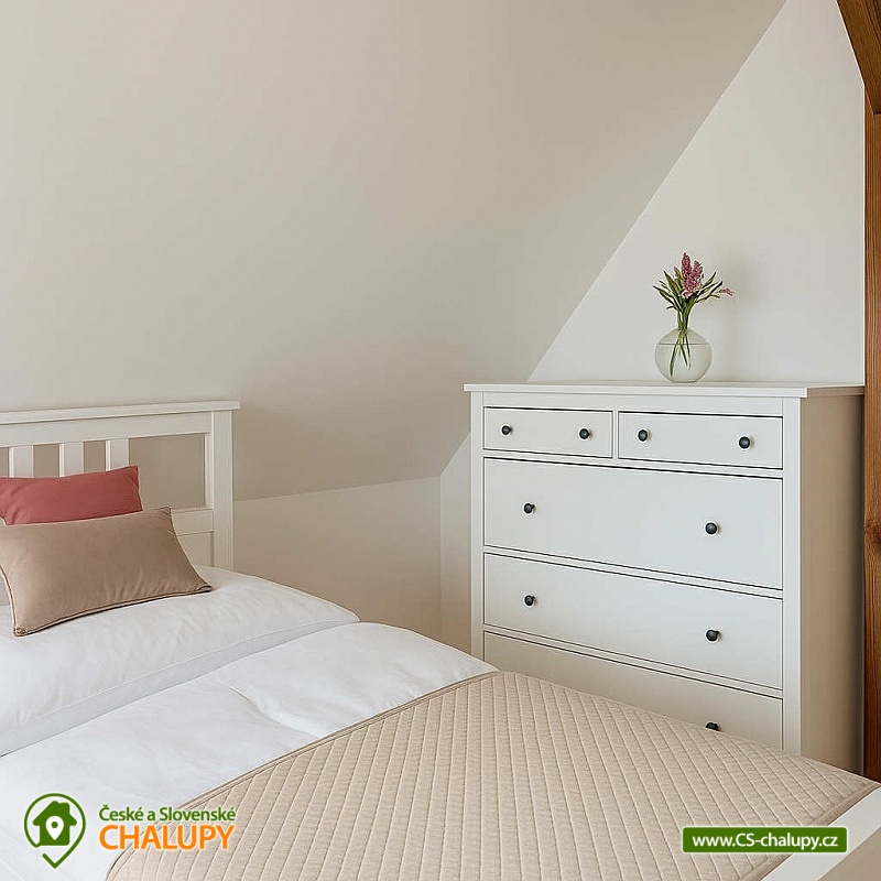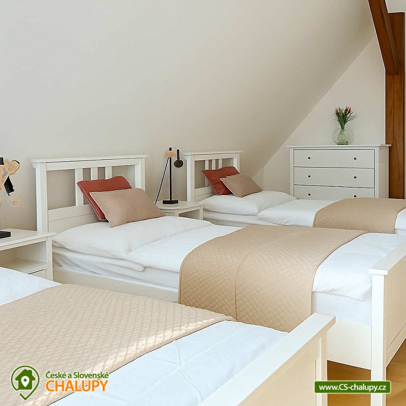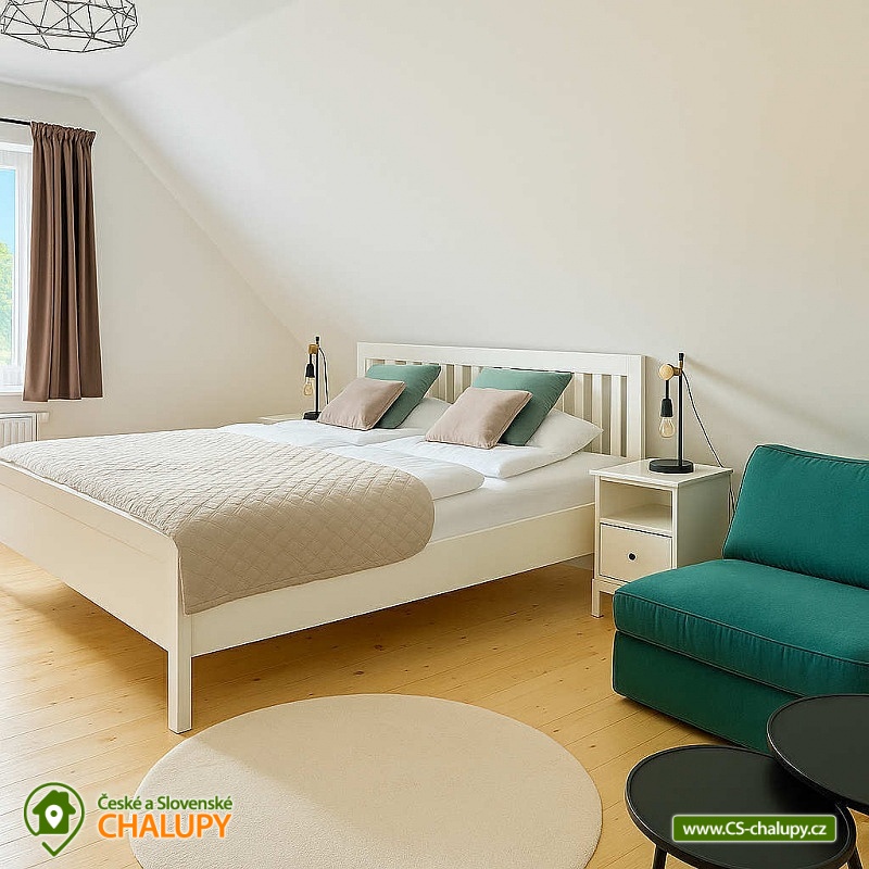 Chalupa v nádherné krajině Novohradských hor - stylově a komfortně zařízená chalupa ve Starých Hutích u Horní Stropnice. Chalupa představuje ověřený koncept pohodlného a stylového ubytování s kapacitou až 11 osob. Objekt je ideální pro rodinné pobyty nebo skupiny přátel, kteří hledají komfort, soukromí a kouzlo Novohradských hor. POPIS: V horním patře najdete čtyři prostorné ložnice, ideální pro pohodlné ubytování až 11 osob: Ložnice 1 - manželská postel velikosti king a přistýlka - rozkládací křeslo. Ložnice 2 - manželská postel velikosti king. Ložnice 3 - tři samostatná lůžka. Ložnice 4 - manželská postel velikosti king a přistýlka - gaučík. Všechny ložnice jsou zařízené kvalitním nábytkem, nechybí dostatek úložného prostoru ani dostatek denního světla. V patře je dále moderní koupelna s vanou a samostatná toaleta. Přízemí: V přízemí se nachází - vstupní zádveří, uzamykatelná garáž pro kola a lyže, prostorná obytná místnost, která spojuje plně vybavenou kuchyň, jídelnu a obývací část s pohodlným sezením a chytrou TV, další koupelna se sprchovým koutem a toaletou. Plně vybavená kuchyně s myčkou, troubou, lednicí a veškerým nádobím potěší každého, kdo rád vaří. V chalupě jsou vám tak k dispozici dvě stylové, moderní koupelny – jedna se sprchovým koutem, druhá s vanou. Součástí jsou dvě toalety, dostatek ručníků a základní toaletní potřeby. Vše je čisté, voňavé a připravené tak, abyste si pobyt užili v maximálním pohodlí. Vytápění - Moderní elektrokotel s podlahovým vytápěním v přízemí. Radiátory v ložnicích a koupelnách s možností individuální regulace teploty. Krb není k dispozici. V celé chalupě je Wi - Fi připojení. Venku je připravené posezení s grilem, udržovaný prostor pro odpočinek i hry a uzamykatelná garáž pro úschovu kol nebo lyží. Přímo u chalupy je dostatek parkovacích míst. Příjezdová cesta navazuje na místní komunikaci, je dobře sjízdná celoročně. Chalupa je ideálním výchozím bodem pro turistiku, cyklistiku i zimní sporty v krásném prostředí Novohradských hor. V okolí trasy pro pěší turistiku a cykloturistiku v létě a na běžky v zimě. Možnosti koupání v Mlýnském rybníku, Zlaté Ktiši a dalších přírodních koupalištích v okolí, vstup zdarma do plně vybaveného koupaliště s venkovním bazénem v Horní Stropnici. Lyžařské areály v dostupné vzdálenosti. Bohatá občanská vybavenost v blízkém okolí (obchody, restaurace, pošta, bankomat). Těšíme se na Vás u nás.