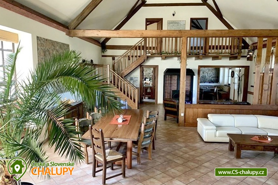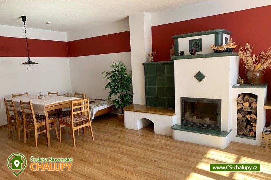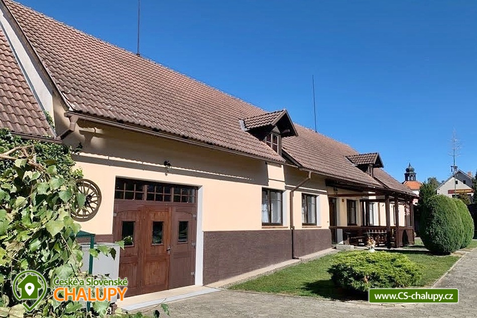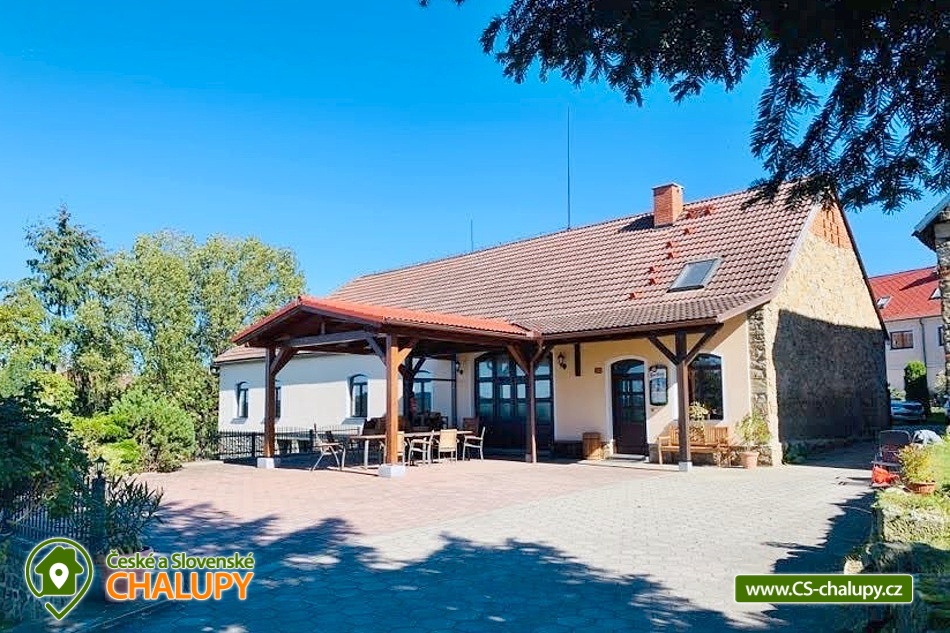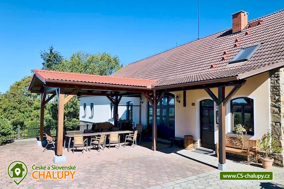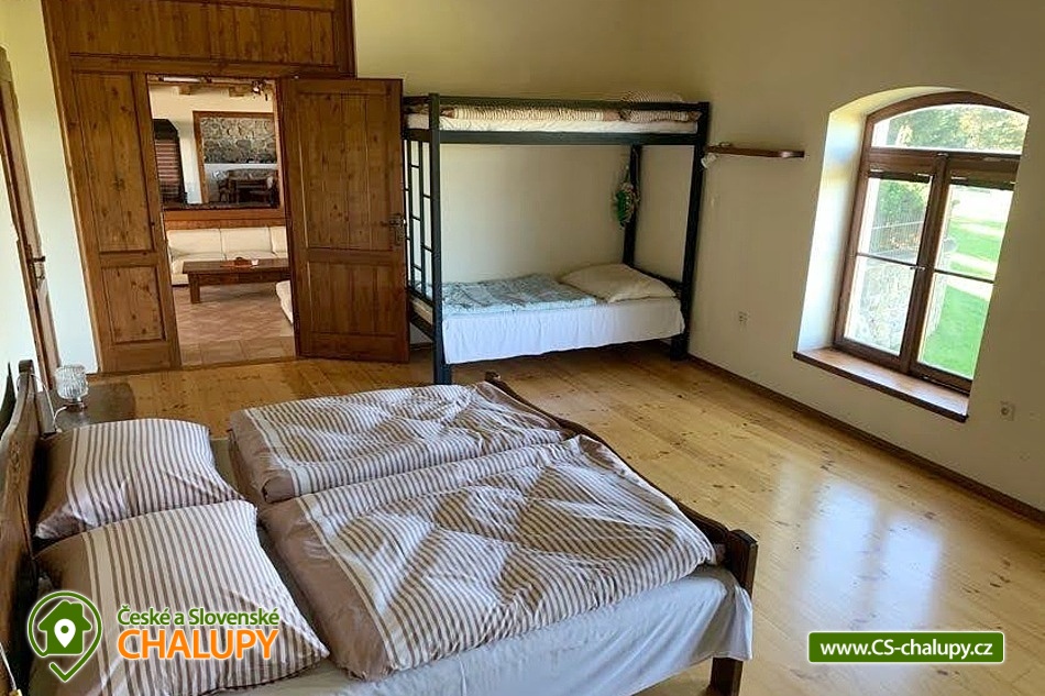 The Válův Dvůr estate is located in a picturesque setting by the Orlická Dam, in the village of Chrást in South Bohemia. Accommodation for 19 people is available in three separately rented parts - in the Stodola house or in the second house, where two apartments Maštal and Chlívek are located. You can look forward to a sauna, a covered saltwater pool, a multi-purpose court with an artificial surface (tennis, basketball and children's games) and an adjacent pergola with a fireplace. DESCRIPTION: STODOLA (house with a terrace) has a capacity for 10 people. On the ground floor there is a four-bed bedroom with a view of the garden (1× double bed, 1× bunk bed and a cot) and on the first floor there are two three-bed bedrooms (1× single bed and 1× double bed). A spacious common room with sofas, fireplace and TV is available for pleasant moments. There is a fully equipped kitchen (2 refrigerators, freezer, gas stove, oven, microwave, coffee maker, kettle and dishwasher). The kitchen also includes a bar counter, dining table and tap equipment for tapping draft beer. A draft beer barrel can be provided upon request. The sanitary facilities include 2 bathrooms with showers and 3 separate toilets. From the ground floor of the house there is a smooth transition to a beautiful terrace with seating and beautiful views of the countryside. In the second house - Maštal with Chlívek, there are two apartments with a private entrance. MAŠTAL (apartment) has a capacity for 6 people. There is a double bedroom (1× double bed), a triple bedroom (1× single bed and 1× double bed) and one extra bed (fold-out bed) in the living room. The living room also includes a beautiful fireplace with seating, a couch, a dining table and a fully equipped kitchen (fridge with freezer, stove, oven, coffee maker and dishwasher). There is a bathroom with a bathtub and toilet in the hallway. The Maštale also includes a room shared by all guests of Válov dvór, where there is a ping-pong table, a shower with toilet, a washing machine, a dryer, a freezer and a work table ideal for fishermen to process their catches. Outside, there is a covered pergola with outdoor seating. THE SHED (apartment) has a capacity for 3 people. There is one double bedroom (2 single beds) and one extra bed (sofa). The entrance to the apartment leads directly to the living room, where there is a fireplace, a comfortable sofa (extra bed) and a comfortably equipped kitchenette (electric stove, fridge with freezer and kettle). In the attic, up the stairs, there is a bedroom, a bathroom with a shower and toilet and a sauna. The sauna can be rented to all guests of Válová dvór by arrangement. The apartment also has a roofed terrace with seating. WIFI internet access is available throughout the building. Heating is provided by a fireplace and electric heating. Outside, all guests will appreciate the large grassy garden with a tennis court, a saltwater swimming pool with a sliding roof, a gazebo with a fireplace, a fireplace and swings and a sandbox for children. There is a bicycle storage room. Rowing and motor boats can be rented by arrangement. Parking is available directly at the building. In the vicinity of the recreational area, there is the possibility of hiking, cycling, swimming, mushroom picking, fishing, cross-country skiing and in-line skating. There is also a fitness center and riding school nearby. Swimming options include: Orlík water reservoir, Zvíkovské Podhradí swimming pool, Kamýk water reservoir, Váša pond, Sychrov quarry, Tábor swimming pool, etc. Trips in the surrounding area include Orlík Castle, Žďákovský Bridge, Orlík Aquarium, Zeměráj Adventure Park, and the historic towns of Písek and Tábor. We look forward to seeing you there.