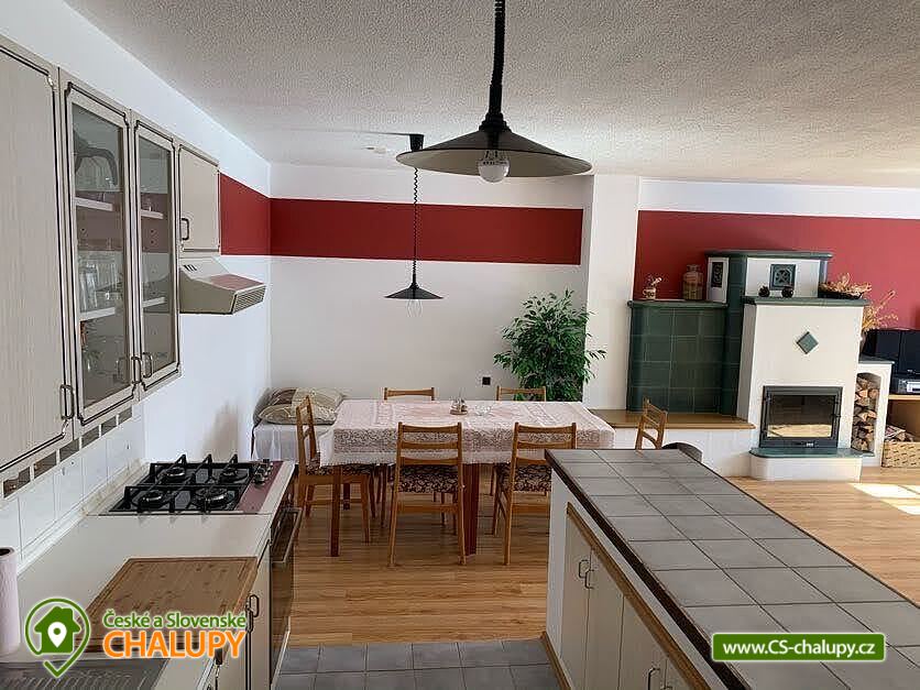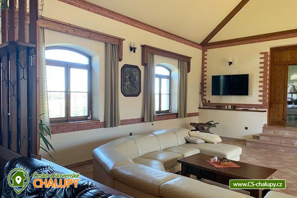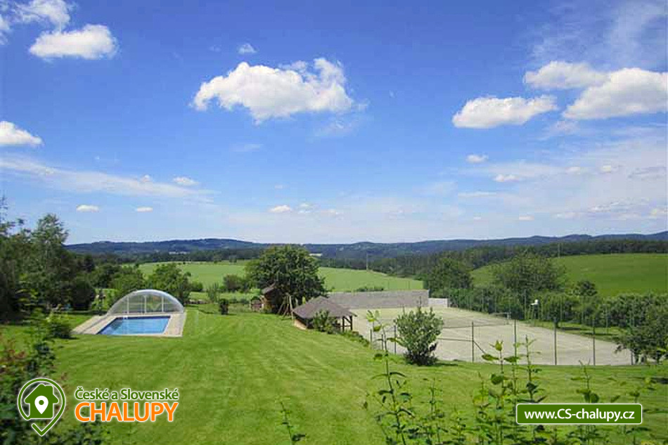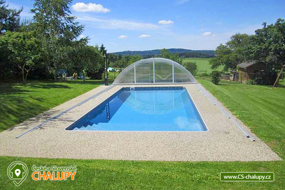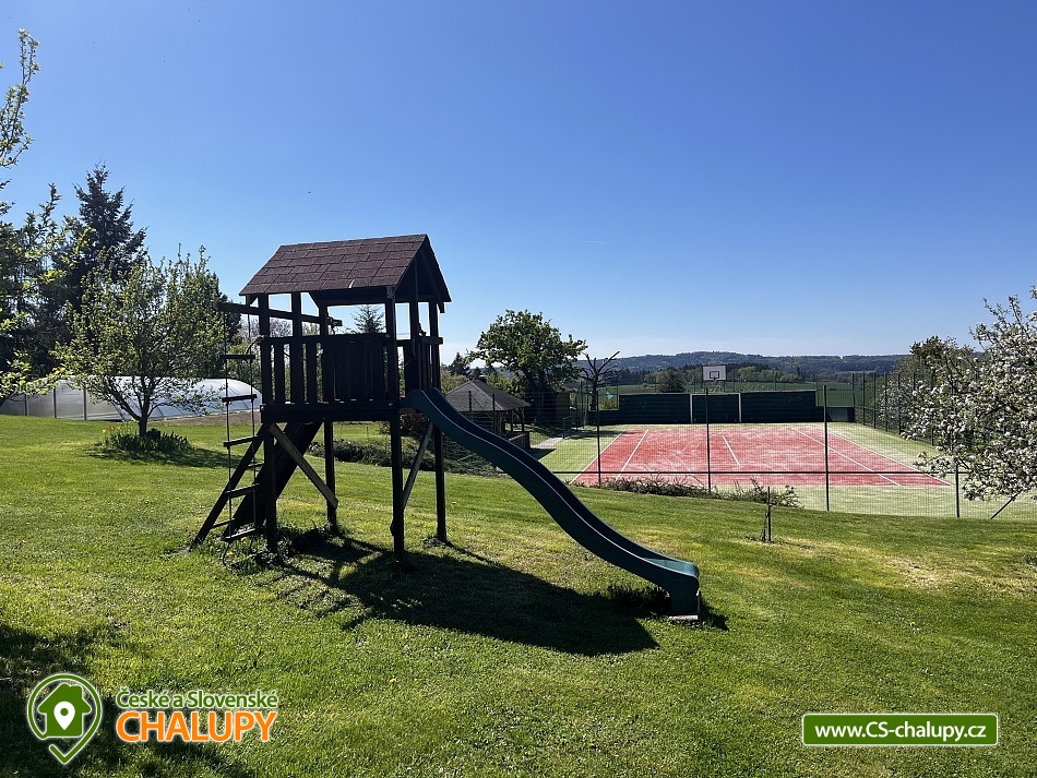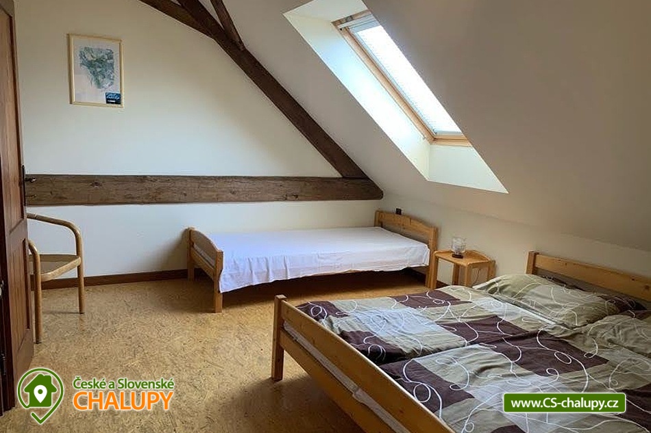 The Válův Dvůr estate is located in a picturesque setting by the Orlická Dam, in the village of Chrást in South Bohemia. Accommodation for 19 people is available in three separately rented parts - in the Stodola house or in the second house, where two apartments Maštal and Chlívek are located. You can look forward to a sauna, a covered saltwater pool, a multi-purpose court with an artificial surface (tennis, basketball and children's games) and an adjacent pergola with a fireplace. DESCRIPTION: STODOLA (house with a terrace) has a capacity for 10 people. On the ground floor there is a four-bed bedroom with a view of the garden (1× double bed, 1× bunk bed and a cot) and on the first floor there are two three-bed bedrooms (1× single bed and 1× double bed). A spacious common room with sofas, fireplace and TV is available for pleasant moments. There is a fully equipped kitchen (2 refrigerators, freezer, gas stove, oven, microwave, coffee maker, kettle and dishwasher). The kitchen also includes a bar counter, dining table and tap equipment for tapping draft beer. A draft beer barrel can be provided upon request. The sanitary facilities include 2 bathrooms with showers and 3 separate toilets. From the ground floor of the house there is a smooth transition to a beautiful terrace with seating and beautiful views of the countryside. In the second house - Maštal with Chlívek, there are two apartments with a private entrance. MAŠTAL (apartment) has a capacity for 6 people. There is a double bedroom (1× double bed), a triple bedroom (1× single bed and 1× double bed) and one extra bed (fold-out bed) in the living room. The living room also includes a beautiful fireplace with seating, a couch, a dining table and a fully equipped kitchen (fridge with freezer, stove, oven, coffee maker and dishwasher). There is a bathroom with a bathtub and toilet in the hallway. The Maštale also includes a room shared by all guests of Válov dvór, where there is a ping-pong table, a shower with toilet, a washing machine, a dryer, a freezer and a work table ideal for fishermen to process their catches. Outside, there is a covered pergola with outdoor seating. THE SHED (apartment) has a capacity for 3 people. There is one double bedroom (2 single beds) and one extra bed (sofa). The entrance to the apartment leads directly to the living room, where there is a fireplace, a comfortable sofa (extra bed) and a comfortably equipped kitchenette (electric stove, fridge with freezer and kettle). In the attic, up the stairs, there is a bedroom, a bathroom with a shower and toilet and a sauna. The sauna can be rented to all guests of Válová dvór by arrangement. The apartment also has a roofed terrace with seating. WIFI internet access is available throughout the building. Heating is provided by a fireplace and electric heating. Outside, all guests will appreciate the large grassy garden with a tennis court, a saltwater swimming pool with a sliding roof, a gazebo with a fireplace, a fireplace and swings and a sandbox for children. There is a bicycle storage room. Rowing and motor boats can be rented by arrangement. Parking is available directly at the building. In the vicinity of the recreational area, there is the possibility of hiking, cycling, swimming, mushroom picking, fishing, cross-country skiing and in-line skating. There is also a fitness center and riding school nearby. Swimming options include: Orlík water reservoir, Zvíkovské Podhradí swimming pool, Kamýk water reservoir, Váša pond, Sychrov quarry, Tábor swimming pool, etc. Trips in the surrounding area include Orlík Castle, Žďákovský Bridge, Orlík Aquarium, Zeměráj Adventure Park, and the historic towns of Písek and Tábor. We look forward to seeing you there.