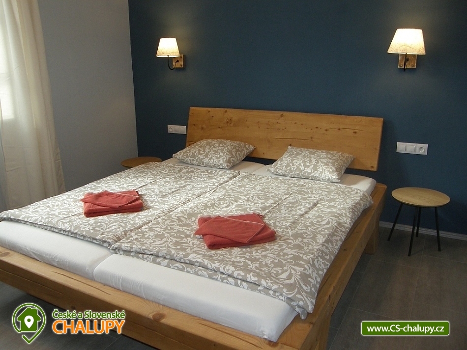 Chalupa Pálava a vinný sklep pod Stolovou horou ve vinařské obci Bavory u Mikulova na úpatí Pálavy. Chalupa nabízí ubytování pro až 16 osob v celkem 4 pokojích. Ubytování je koncipováno jako jeden objekt - chalupa pro rodinu nebo partu přátel, tedy pronajímá se vždy celý objekt 1 skupině klientů. Sestává ze čtyř 2 lůžkových pokojů. Dva pokoje (č. 1 a č. 2) jsou větší, je zde manželská postel z masivního dřeva + rozkládací sedačka, která má po rozložení má šířku 2x 70 cm a dá se využít jako přistýlka pro 2 děti nebo jednu dospělou osobu. Další dva pokoje (č. 3 a č. 4) jsou menší, je zde manželská postel z masivního dřeva. Všechny pokoje mají samostatný vchod, tzn. nejsou průchozí a nebudete se tak v noci vzájemně rušit. Do pokoje č. 1 se vstupuje z kuchyně, do pokojů č. 2 až č. 4 přes chodbu. Pokoj č. 4 jako jediný má ještě samostatné dveře na terasu za chalupou. Pro větší skupiny mohou sloužit ke spaní ještě další dvě sedačky v obývacím pokoji, po rozložení má každá z nich rozměr 2x 80 cm, tedy možno další 4 osoby. Maximální kapacita je tedy 16 lůžek: v pokojích 4x manželská postel (8 osob) + 4 přistýlky v pokojích + 4 přistýlky v obývacím pokoji. Sociální zařízení: Každý ze čtyř pokojů má samostatnou koupelnu. Vybavení: závěsné WC, umyvadlo, zrcadlo, sprchový kout oddělený bezpečnostním sklem, předložka před sprchovým koutem. Každý host má svoji velkou osušku a malý ručník. Součástí vybavení nejsou fény či jiné el. spotřebiče. Pro hosty, kteří by případně spali v obývacím pokoji na přistýlkách, je k dispozici další samostatné WC + umyvadlo se zrcadlem, v místnosti dostupné přímo z obývacího pokoje. Kuchyně: kuchyňská linka, dřez s odkapávací plochou, el. sporák, sklokeramická deska se 4 vařiči, myčka, lednice s mrazákem, varná konvice, kapslový kávovar Dolce Gusto (spotřebované kapsle účtujeme na konci pobytu v nákupních cenách), veškeré další vybavení (sklenice, hrníčky, talíře, příbory, hrnce, naběračky, vařečky... ), jídelní stůl + 8 židlí z masivního dřeva, dětská sedačka ke stolu. Celý objekt má podlahové elektrické vytápění. Ovládání teploty jednoduchými mechanickými termostaty, samostatně pro každý pokoj, každou koupelnu a obývací pokoj s kuchyní. Za chalupu je terasa: 65m², z jedné poloviny zastřešená pergolou, dva sety zahradního sedacího nábytku z masivního dřeva, jeden sedací set pro malé děti, příjemné osvětlení, gril. Parkování na našem pozemku naproti chalupě. Kousek od chalupy se nachází naše vinařství a o 100m dále provozujeme degustační sklep, kde se dá večer příjemně posedět, pro děti jsou tam houpačky a skluzavka. Našim hostům dáváme slevu 15% na všechna vína: ta která vypijete za dobu pobytu na penzionu i ta, která si případně odvezete domů. U týdenních pobytů máte v ceně 1 - hodinovou degustaci našich vín přímo ve sklepě. Kam na výlety: Mikulov s krásným zámkem, zámeckou zahradou a historickým náměstím. Lednice a Valtice a celá turistická oblast Pálava a Lednicko - valtický areál. Koupání vnitřní/vnější, atrakce, sauny, masáže: 10 km od nás je Aqualand Moravia, nejbližší bazén je v Mikulově a dále termály v rakouském Laa jsou vzdálené pouhých 25 km od nás. Přímo u nás v Bavorech stojí určitě za návštěvu Degustační salón Pálava, kde najdete sbírku 50 - ti nejlepších vín pouze z viničních tratí z Pálavy. Těšíme se na Vás u nás.