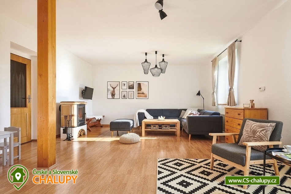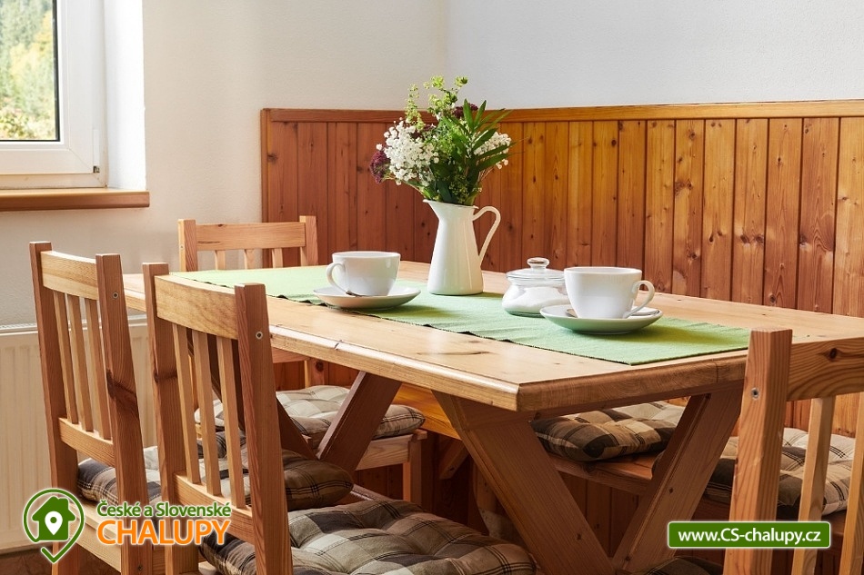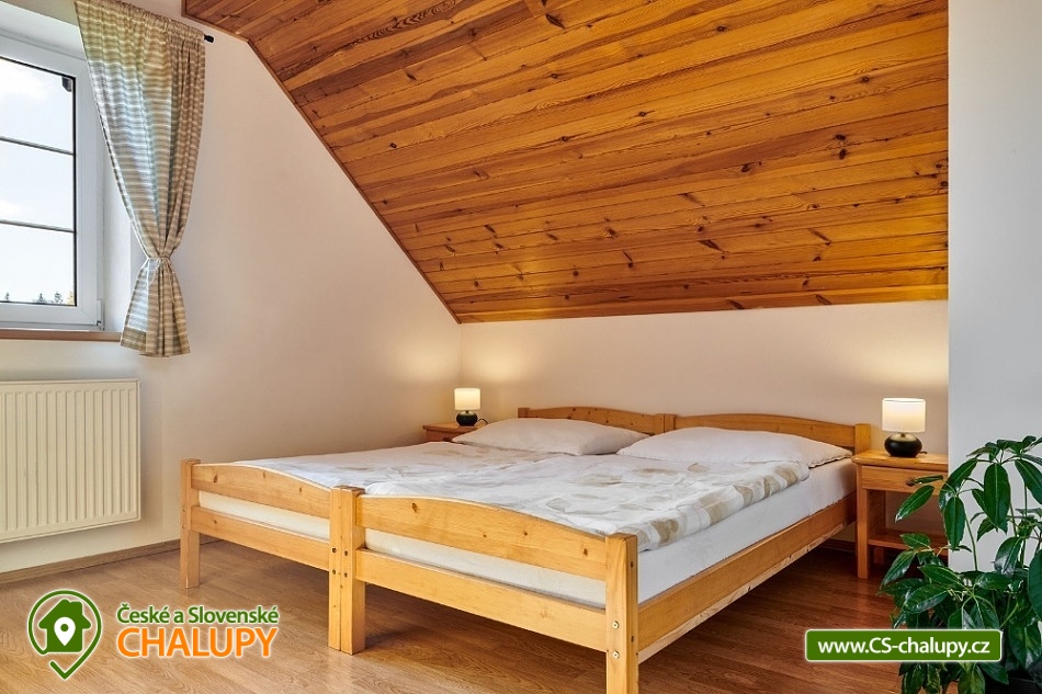 Chalupa pod lesem uprostřed louky, daleko od všedního ruchu měst, ale zároveň dostatečně blízko Churáňovských turistických tras i výletnických cílů (Horská Kvilda, Klostermannova skála, atd.). Chalupa k pronájmu poskytuje ubytování pro až 8 osob ve 4 ložnicích. Chalupa na pozemku o velikosti 4000 m2 je Vám celá k dispozici. Ve čtyřech dvoulůžkových pokojích se pohodlně ubytuje 8 osob, po individuální domluvě lze vyřešit přistýlky. Přízemí dominuje prostorný obývací pokoj s posezením a krbovými kamny pro doladění té pravé horské atmosféry. Zařízená kuchyně a technická místnost pro umístění Vašeho sportovního vybavení je samozřejmostí. Plně vybavená kuchyně s elektrickým sporákem, myčkou, mikrovlnnou troubou, rychlovarnou konvicí, lednicí, mrazákem a veškerým kuchyňským vybavením je samozřejmostí. V obývacím pokoji máte k dispozici TV a WIFI. V chalupě je k dispozici 2x WC. V patře se nachází společná koupelna se sprchovým koutem a WC, vybavená nočníkem, dětským sedátkem. Chalupa je vytápěna pomocí automaticky pracujícího tepelného čerpadla. V každé místnosti se nachází elektrické topení. V obývacím pokoji je možnost přitopit si v zimních měsících v krbových kamnech, dřevo pro ubytované je k dispozici. V létě pak jistě rádi využijete možnost venkovního posezení u kamenného grilu či opékání buřtů u soukromého ohniště. Na své si přijdou milovníci zimních i letních sportů. Chalupa je situována v blízkosti lyžařských areálů, běžkařských a cyklistických tratí i vyznačených turistických tras. Největší předností této nedotčené části Národního parku Šumava bezpochyby patří hustá síť běžkařských a cyklistických tras, které jsou skvěle připravené pro všechny typy jízdy. Lyžařská škola, půjčovny lyží a běžek, snowpark, lánový park, půjčovna kol, MTB park, nespočet krásných vyhlídek a hradů v blízkém okolí uzavírá nedotčená šumavská příroda doslova na dlani. Těšíme se na Vás u nás.