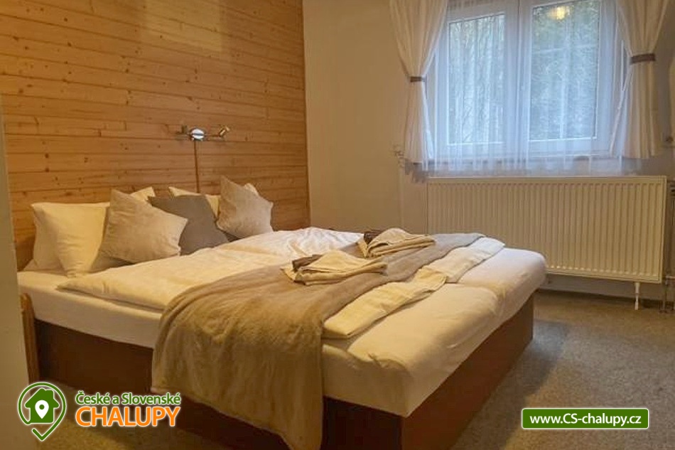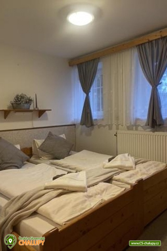 Cottage under Sněžkou - solitude by the forest near the Úpský waterfall. The cottage is located in the beautiful countryside of the Krkonoše Mountains in the village of Velká Úpa, on the picturesque "old road" connecting Úpa with the popular mountain resort Pec pod Sněžkou. It is an ideal starting point for a hike to Sněžka, the highest mountain in the Czech Republic. The mountain resort includes an extensive ski area Skiresort Černá hora - Pec with 12.5 km of slopes and modern cable cars and a bobsleigh track and a children's park Lemurie with trampolines, climbing frames and slides. The cottage offers accommodation for 22 people in eight rooms with private bathrooms. The property can be rented as a whole or each room separately. Upon agreement, it is possible to arrange a stay with breakfast in the form of a buffet. There are a total of: 1 double room with a bathroom in the room and a toilet in the hallway, 3 double rooms with a bathroom and a toilet in the room, 2 triple rooms with a bathroom in the room and a toilet in the hallway and 2 quadruple rooms with a bathroom and a toilet in the room. All rooms have a double bed, the triple rooms also have a separate single bed, and the quadruple room has two separate single beds in one and a bunk bed in the other. A cot, high chair and toys for children are available for rent. All accommodation can spend pleasant moments in a spacious common room with a dining room, sofa, TV with SAT, bar counter and fully equipped kitchen (large fridge, freezer, electric stove, dishwasher, microwave, electric kettle, coffee maker, toaster, electric whisk and a large amount of dishes). WIFI internet connection is available throughout the building. The cottage includes a storage room for bicycles and skis. The sanitary facilities include a total of 8 bathrooms with showers and 9 toilets. Towels, a hairdryer, an iron, a washing machine and a dryer are available. Heating is provided by a heat pump and radiators. There is a partially fenced, grassy area around the cottage. You can sit on the outdoor terrace. There is a grill, a fireplace and darts. 4 - 5 cars can be parked directly at the property. The access road to the property is maintained even in winter. In the vicinity of the cottage, there is the possibility of hiking, cycling, swimming, mushroom picking, skiing and cross-country skiing. Swimming options include: Aquacentrum Jánské Lázně, Swimming pool Čistá, Swimming pool Retro park Sejfy, Aquapark Špindlerův Mlýn, Labská Dam, Aquacentrum Vrchlabí, Swimming pool Trutnov, etc. Nearby ski resorts are available: Skiport - Velká Úpa, Pec pod Sněžkou, Pěnkavčí vrch, Černá hora - Černý Důl, Černá hora - Jánské Lázně and others. Trips in the area include the Upper and Lower Úpský waterfall, Černá hora peat bogs or Lysečinská rock needle, Treetop Trail - Janské Lázně, Hnědý vrch Lookout Tower, Špindlerův Mlýn mountain resort, Krkonoše Museum - Vrchlabí or Jilemnice Chateau. We look forward to seeing you there.