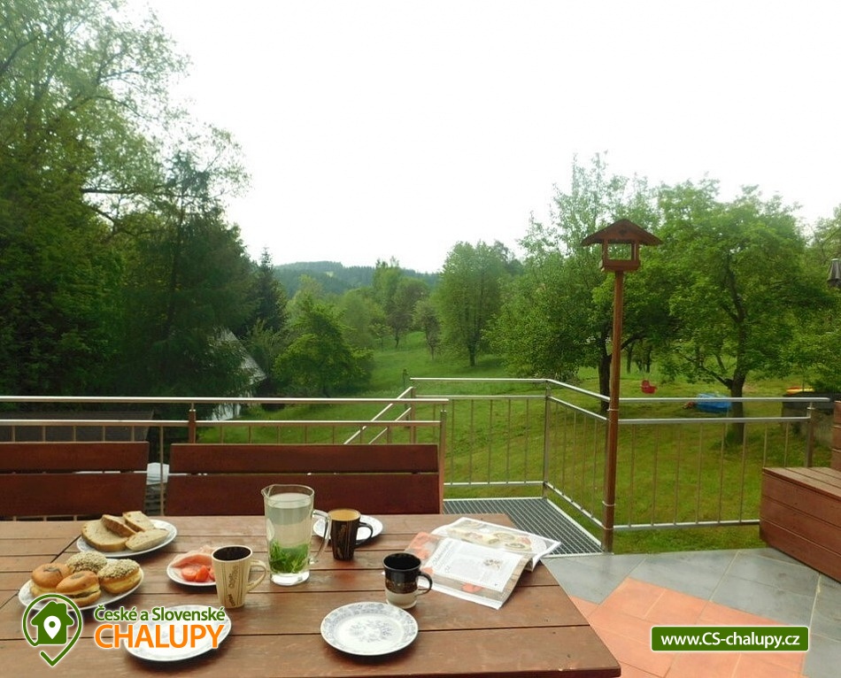 Chalupa Podkrkonoší na rozhraní Krkonoš a Českého ráje nedaleko obce Jesenný a Vysoké nad Jizerou v Libereckém kraji. Celoročně nabízíme ubytování v chalupě s celkovou kapacitou až 13 osob. Ubytování je ideální pro rodiny s dětmi nebo skupinky přátel. V přízemí chalupy najdete společenskou místnost s krbem a barem, k vybavení patří také televize se satelitním příjmem, gaučové posezení, jídelní stůl, knihy a společenské hry. Příprava jídel Vám půjde od ruky v kompletně vybavené kuchyni s indukčními varnými deskami, elektrickou a mikrovlnnou troubou, lednicí, rychlovarnou konvicí a také myčkou nádobí. V přízemí najdete také lyžárnu s vysoušečem bot, samostatnou toaletu a technickou místnost. Na spánek je určeno první patro, kde na Vás čekají čtyři ložnice, 2-lůžková, 2-lůžková s přistýlkou, 3-lůžková a 4-lůžková s přistýlkou. Všechna lůžka jsou samostatná, v případě potřeby je možné je spojit do dvoulůžka, přistýlky jsou na vysouvacím lůžku. Na požádání Vám poskytneme dětskou postýlku. Každá ložnice disponuje vlastní koupelnou se sprchovým koutem a toaletou. V celé chalupě je pro Vás zajištěn bezplatný WiFi přístup na internet. Ze společenské místnosti se dostanete na terasu s posezením a grilem, na pozemku najdete i ohniště. Děti si volný čas zkrátí hrou na pískovišti a na houpačce nebo si zahrajete společně badminton. Pokud si chcete odpočinout, dopřejte si chvíli v sauně (za příplatek). Cyklisté si kola odloží v místnosti pod terasou. Při chalupě je možné zaparkovat 3 auta. Příroda v okolí obce Vás zláká na turistiku, turisté rádi absolvují túru na vrcholy Vyskeř či Malý Žalý, k některému z mnoha vodopádů nebo k rozhlednám U borovice, Maják Járy Cimrmana a Štěpánka. Obdivovat můžete i Klokočské skály a Bozkovské dolomitové jeskyně. V této oblasti najdete také několik zámků (Hrubý Rohozec, Hrubá Skála) a zřícenin (Nístějka, Trosky, Kumburk). S dětmi doporučujeme vyrazit do areálu Šťastná země, do Aquaparku Špindl nebo do Liberce, kde najdete zoologickou zahradu, aquapark či iQLANDIU. Pokud se sem chystáte v zimním období, sněhovou nadílku si vychutnáte v blízkých lyžařských střediscích, z těch nejbližších zmíníme například Větrov, Šachty, Kamenec či Zlatá Olešnice.
