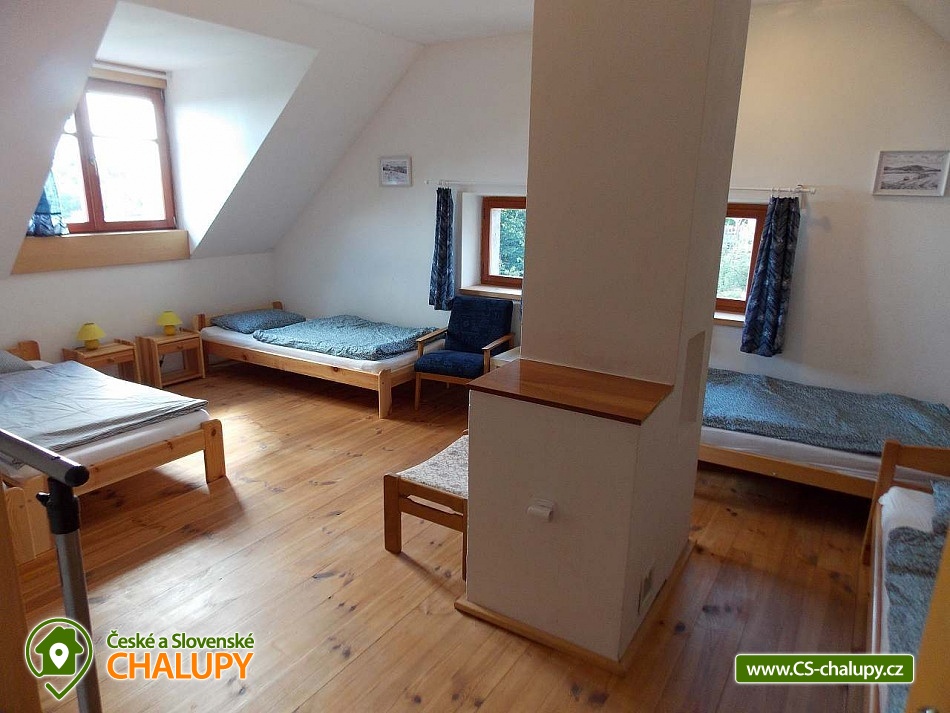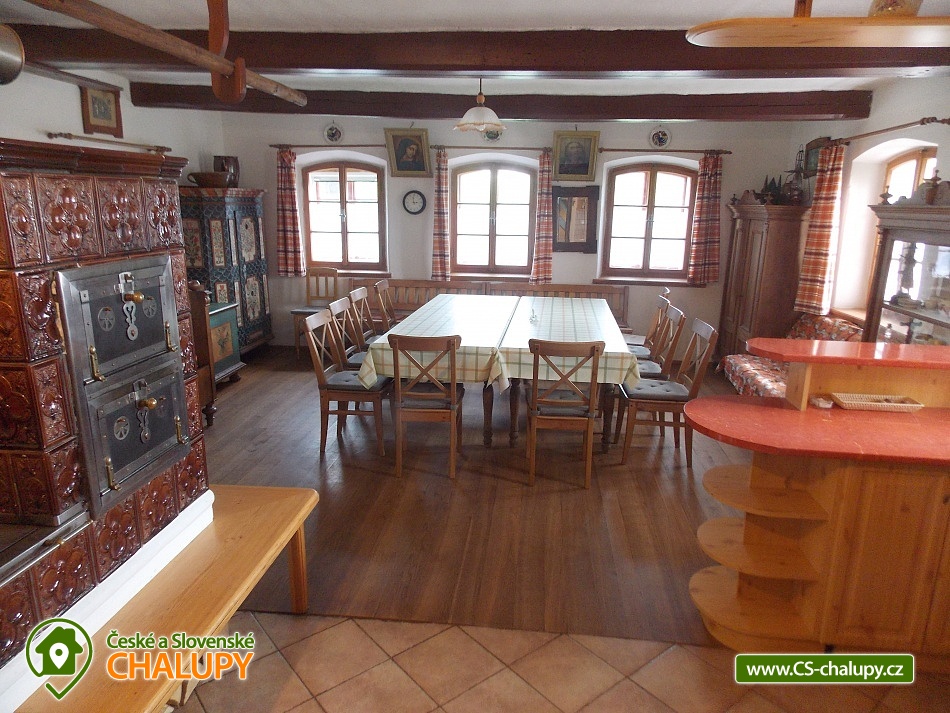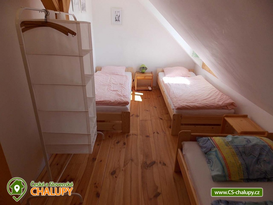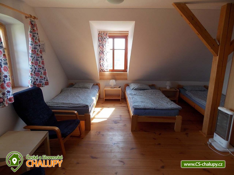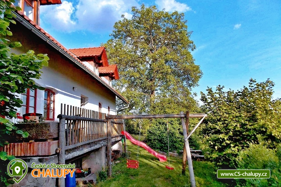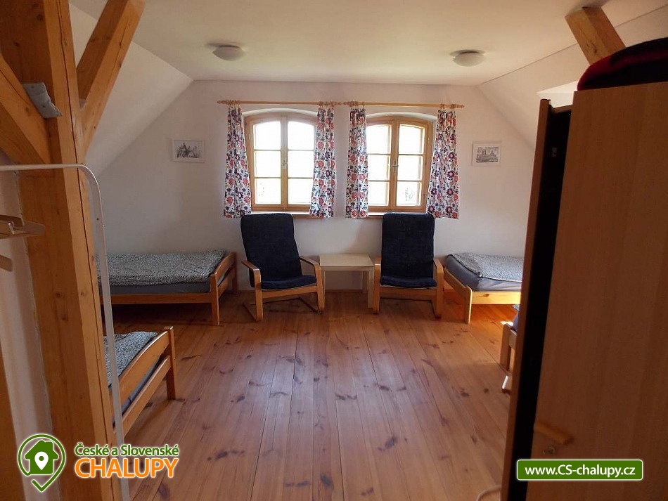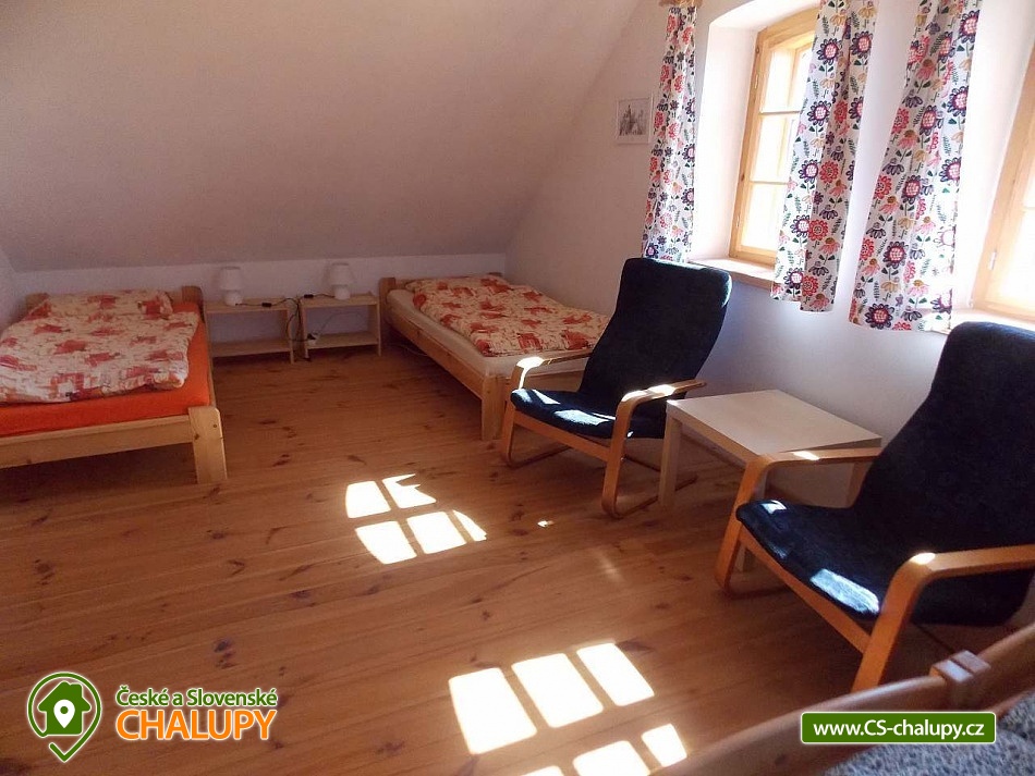 Cottage for rent Syřenov - Žďár near Kumburk on the border of the Bohemian Paradise and Krkonoše regions. The cottage for rent offers accommodation for up to 15 people. There are three bedrooms in the attic, two larger ones in the gables for 5 people and one smaller one on the south side of the building for three people. In addition, it is possible to rent two baby cots. In addition, it is possible to sleep on one stylish bed in the sitting room - and for romantics, on the stove. The cottage has a large sitting room ("for two looms") with an oven and a tiled stove, which is equipped with a kitchenette (pressure cooker, electric cooker, microwave oven, electric oven, dishwasher and sink. If necessary, you can use an electric stove, or in the colder season, there is a separate toilet with a sink, and a bathroom with a sink and a seat There is also a 120-liter water heater. Parking is available at the cottage. In good weather, you can play petangue outside on the grill or cook stew in a 13l enameled boiler. The ground floor is also a room with two refrigerators and a sink. There is also a barn with a separate stove, which can also be used for this purpose. A well-preserved sandstone cellar can be useful under the woodshed. Thanks to its exceptional location, the immediate surroundings of the cottage allow for far-reaching views of the region and the ridges of the Krkonoše and Jizera mountains. There are two castles within walking distance. Kumburk with a viewing platform ensuring an unobstructed circular view and Bradlec standing somewhat to the side of greater interest. The view from Ždár near Kumburek to Bradlec is also captured in the well-known film Kuky se vráci, which was filmed here. Žďár itself is a quiet village, although attractive tourist locations such as Prachovské skály, Jičín, Trosky, etc. are practically at hand. Come fight!