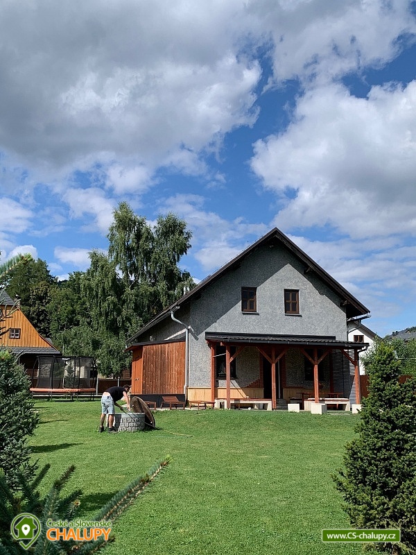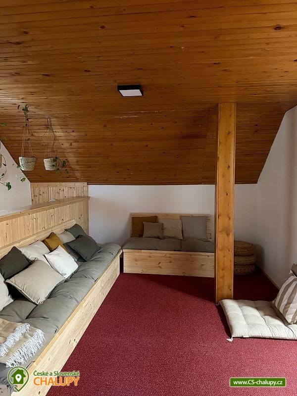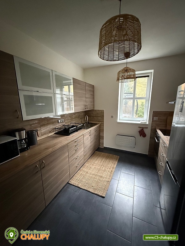 Chalupa na pomezí Jeseníků a Rychlebských hor nedaleko Kralického Sněžníku u obce Malé Vrbno, poloha v obci Kunčice. Chalupa nabízí plnohodnotné zázemí jak pro rodinné tak firemní pobyty. Celková kapacita je až 20 osob. POPIS: 4x dvoulůžkový pokoj, 3x čtyřlůžkový pokoj. V chalupě je plně vybavená kuchyně a několik prostorů pro společné posezení - v přízemí u krbu, v patře na gauči a lenoškách a venku na zastřešené terase. Kuchyně je plně vybavena a připravena i na ty nejdivočejší kulinární kousky. Najdete v ní horkovzdušnou troubu, elektrickou varnou desku, lednici s mrazákem, mikrovlnku, toustovač a topinkovač, varnou konvici a samozřejmě i potřebné nádobí a náčiní. Nechybí ani tyčový mixér či ošatka a formy na pečení chleba. Pro milovníky čerstvé kávy je k dispozici elektrický mlýnek, překapávač, frenchpress, moka konvička a aeropress. Pro děti je připraveno zázemí s hračkami. V chalupě najdete celkem 3 koupelny, 2 sprchy a 4 wc. Zahrada je oplocená a bezplatně lze využívat ohniště i gril. S výjimkou zimních měsíců je na zahradě připravená síť a lze si zahrát volejbal, nohejbal či badminton. K zapůjčení jsou i další hry jako petangue nebo kriket. Celoročně je veku k dispozici trampolína. V letních měsících lze využít opalovací lehátka a venkovní sprchu. Chalupa je obklopena trasami pro pěší, cykloturistiku i běžky. Nejbližší sjezdovky leží pár minut chůze od chalupy. A na houby nebo koupání to máte od nás taky kousek. O výletní místa v okolí není nouze, ať už vás zajímá historie, rádi navštěvujete kostely, muzea, farmy nebo dáváte přednost sportovním aktivitám. I když jsou Kunčice více vzdálené od větších měst, nejnutnější potřeby nakoupíte v nedalekém Starém Městě. Dobrou zprávou je, že až k chalupě vám nákup přiveze Rohlík. 1 km od chalupy se nachází vyhlášená cukrárna, kde můžete ochutnat tradiční a poctivé zákusky včetně regionální speciality, staroměstské máslové trubičky. Těšíme se na Vás u nás.