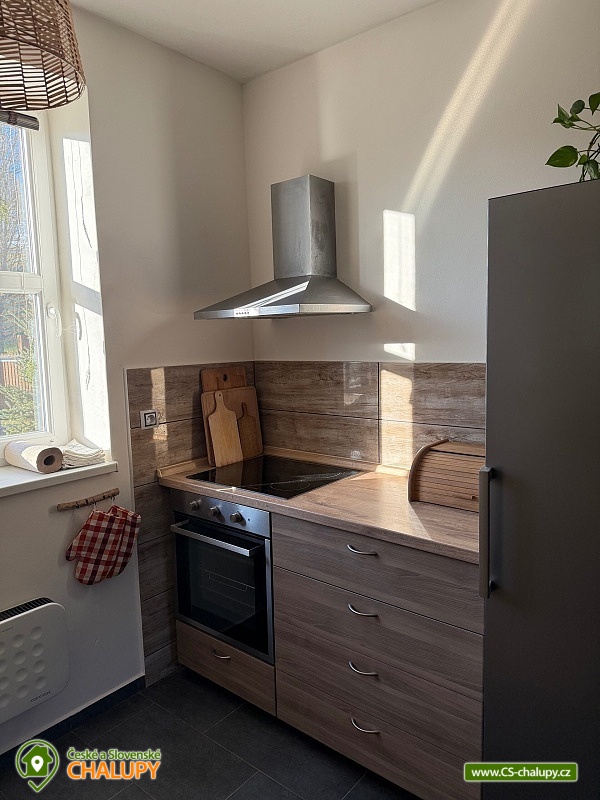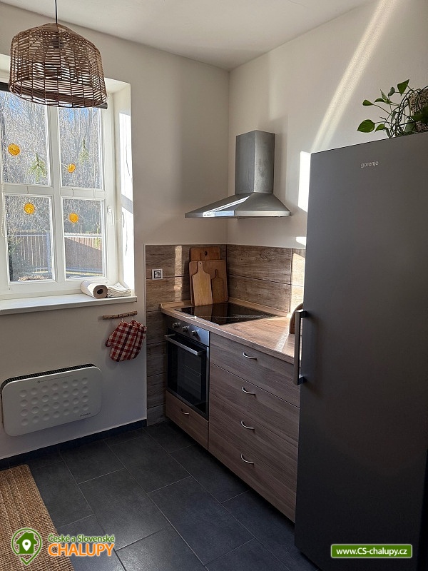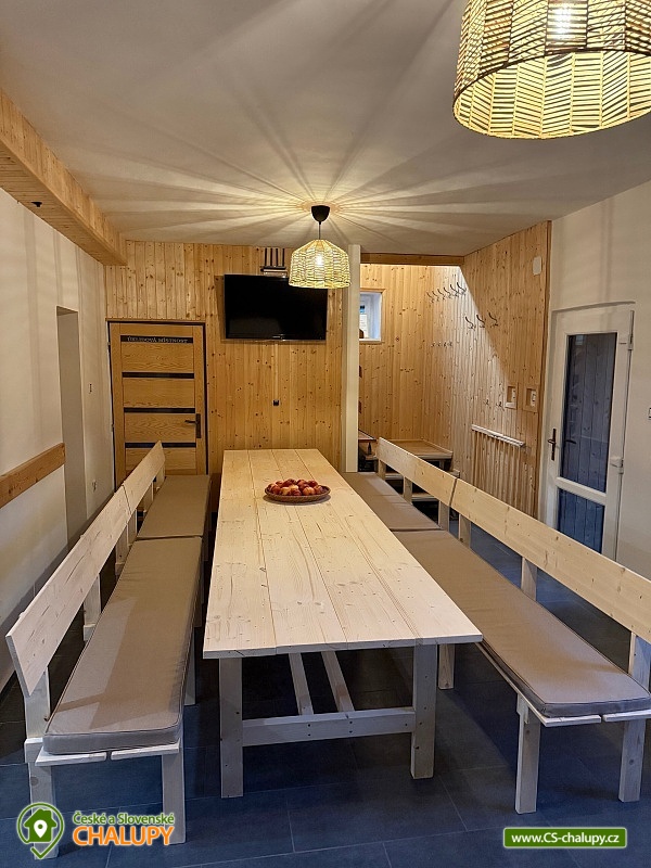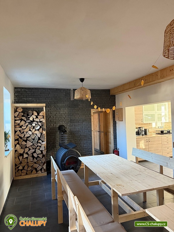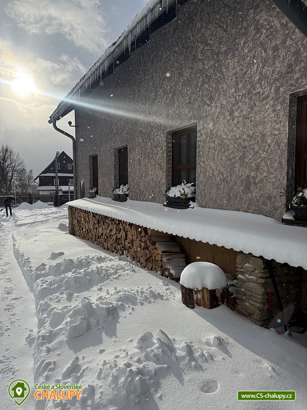 Chalupa se nachází na pomezí Jeseníků a Rychlebských hor nedaleko Kralického Sněžníku, v obci Kunčice. Chalupa nabízí plnohodnotné zázemí jak pro rodinné tak firemní pobyty. Celková kapacita je až 20 osob. POPIS: 4x dvoulůžkový pokoj, 3x čtyřlůžkový pokoj. V chalupě je plně vybavená kuchyně a několik prostorů pro společné posezení - v přízemí u kamen, v patře na gauči a lenoškách a venku na zastřešené terase. Kuchyně je plně vybavená a připravená i na ty nejdivočejší kulinární kousky. Najdete v ní horkovzdušnou troubu, elektrickou varnou desku, lednici s mrazákem, mikrovlnku, toustovač a topinkovač, varnou konvici a samozřejmě i potřebné nádobí a náčiní. Nechybí ani tyčový mixér či ošatka a formy na pečení chleba. Pro milovníky čerstvé kávy je k dispozici elektrický mlýnek, překapávač, frenchpress, moka konvička a aeropress. Součástí kuchyně je spižírna s dostatkem úložného prostoru a druhou lednicí. Pro děti je připraveno zázemí s hračkami. V chalupě najdete celkem 3 koupelny, 2 sprchy a 4 wc. Zahrada je oplocená a bezplatně lze využívat ohniště i gril. S výjimkou zimních měsíců je na zahradě připravená síť a lze si zahrát volejbal, nohejbal či badminton. K zapůjčení jsou i další hry jako petangue nebo kriket. Celoročně je veku k dispozici trampolína. V letních měsících lze využít opalovací lehátka a venkovní sprchu. Chalupa je obklopena trasami pro pěší, cykloturistiku i běžky. Nejbližší sjezdovky leží pár minut chůze od chalupy. A na houby nebo koupání to máte od nás taky kousek. O výletní místa v okolí není nouze, ať už vás zajímá historie, rádi navštěvujete kostely, muzea, farmy nebo dáváte přednost sportovním aktivitám. I když jsou Kunčice více vzdálené od větších měst, nejnutnější potřeby nakoupíte v nedalekém Starém Městě. Dobrou zprávou je, že až k chalupě vám nákup přiveze Rohlík. 1 km od chalupy se nachází vyhlášená cukrárna, kde můžete ochutnat tradiční a poctivé zákusky včetně regionální speciality, staroměstské máslové trubičky. Těšíme se na vás.