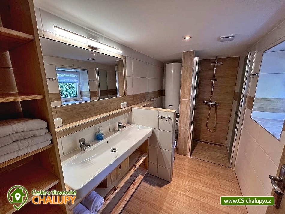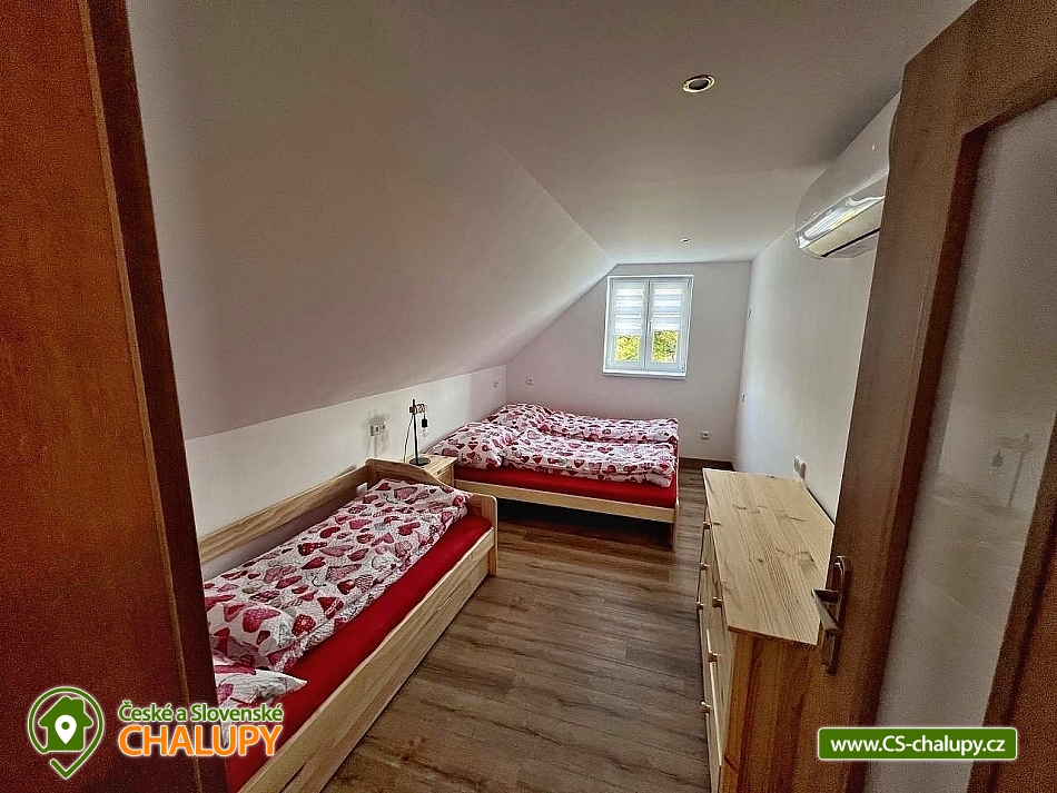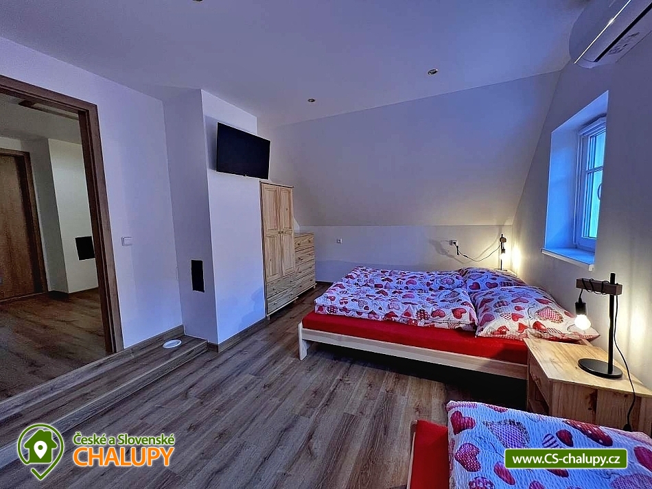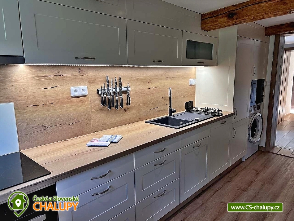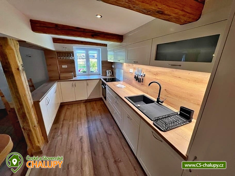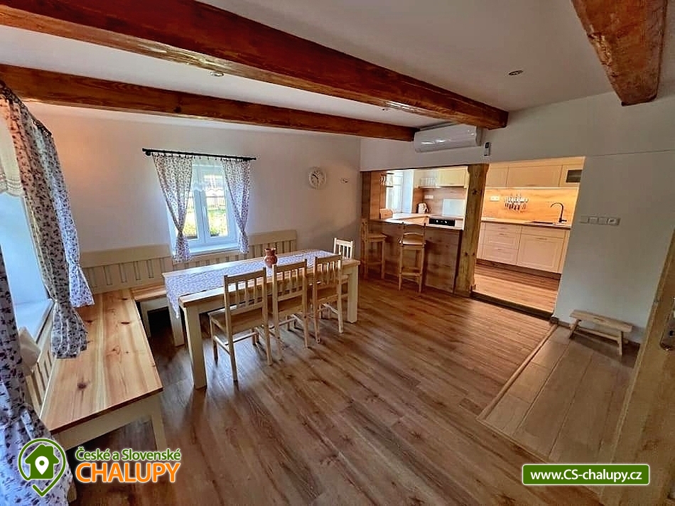 Chalupa Na Chajdě is located in the Moravian-Silesian Region, in the picturesque village of Kozlovice, a village of the Wallachian Voivods in the foothills of the Moravian-Silesian Beskydy Mountains, which is a peaceful stop in today's busy times. The cottage is located 10 km west of the town of Frýdlant nad Ostravicí, 12 km southeast of Příbor and 14 km southwest of Frýdek - Místek. We offer weekly and weekend stays. The cottage has been completely renovated and provides accommodation for up to 12 people in 3 bedrooms. It is fully equipped for moments of comfort and relaxation, especially during family holidays in summer or winter. Every guest will feel at home with us. In the fully equipped cottage you will find everything you need for an undisturbed stay. The cottage has a fully equipped kitchen (ceramic hob, oven, dishwasher, microwave oven, kettle, all crockery and washing machine). On the ground floor there is also a stylishly equipped dining room, a living room for 10 to 12 people with a large table, television and a fully functional fireplace. On the ground floor, there is also a bathroom with a shower and a toilet, as well as a common room with a table and a fireplace, which can also accommodate up to 12 people. Upstairs there are three separate bedrooms. One with a double bed, and two single beds. In the other two there are always three single beds and the possibility of one extra bed. A second toilet is also available on the floor. Access to all three bedrooms is only possible via the Miller Staircase. A bathroom with a toilet on the ground floor, and a second toilet on the first floor. Heating: Heating is possible with a heat pump and fireplace with distribution to all rooms. The garden of the cottage has a covered seating area for 12 people, a fireplace with seating and a grill with complete equipment. You can diversify your time in the spacious garden by playing skittles. The cottage also includes a barn, which is equipped with a hot tub and a games room, consisting of a pool table, professional football, table tennis and wall darts. The entire cottage is air-conditioned and covered by a WIFI signal. Excursions: From Kozlovice you can go to three beautiful Ondřejníky mountains - Skalka, Solárka and Stará Úboč, from which you can see the surrounding area and the highest mountain of the Beskydy - Lysa hora. The village abounds in many hillsides and pastures, and each house is nicely set in it. There are many tourist destinations in the vicinity that can also be reached by bicycle, e.g. Hukvaldy Castle ruins 3 km, Kopřivnice Automobile Museum 10 km, Šipka cave 13 km, Štramberská Trúba lookout tower 14 km, Hermitage with a statue of the god Radegast, Tarzánie rope park 14 km and the Wallachian Museum in Nature 20 km. We look forward to seeing you here.