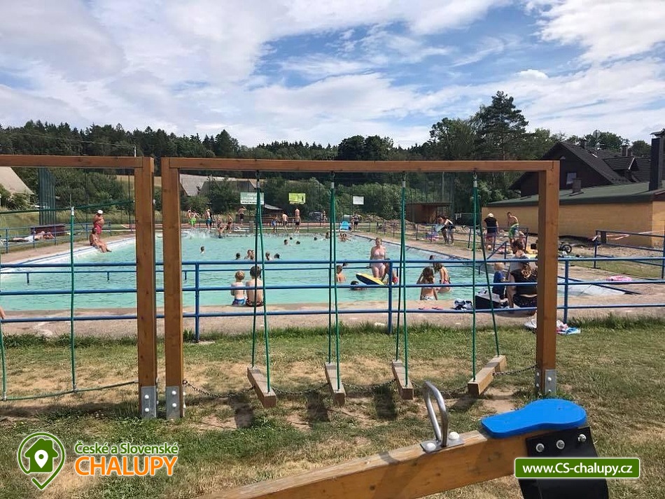 Chalupa s bazénem nedaleko Babiččina údolí, zříceniny hradu Vízmburk a vodní nádrže Rozkoš. Romantická chalupa nabízí kapacitu ubytování až 6 osob. K dispozici je zapuštěný bazén se solárním ohřevem, posezení s ohništěm a pro děti koutek s pískovištěm. U chalupy je parkoviště pro dvě auta, příjezdová komunikace je asfaltová, v zimě udržovaná. VYBAVENÍ CHALUPY: v přízemí je vybavená kuchyň, jídelna, obývací pokoj, koupelna se sprchou a WC, v podkroví je ložnice se dvěma manželskými postelemi a dvěma lůžky. Hlavní velká místnost je rozdělena na menší jídelnu a větší obývací prostor se sedačkou a televizí. Topení je zařízeno elektrokotlem, nebo krbovými kamny. U chaty je venkovní posezení, pískoviště, ohniště, v letním období je k dispozici bazén 7,5 m. Pod chalupou protéká potok. Jedná se o turisticky velmi atraktivní kraj podhůří Orlických hor a Krkonoš vhodný pro podnikání zajímavých výletů do okolí. Vedou zde desítky kilometrů značených cyklostezek. Doporučujeme navštívit Babiččino údolí a zámek Ratibořice (10 km), zámek Kuks (25 km), zámek Náchod (15 km), Nové Město nad Metují (20 km), zříceninu hradu Vízmburk (10 km), rozhlednu a pevnost Dobrošov (20 km), podzemní chodby v pevnosti Josefov (25 km), Teplicko-adršpašské skály, ZOO Dvůr Králové nad Labem a další.
