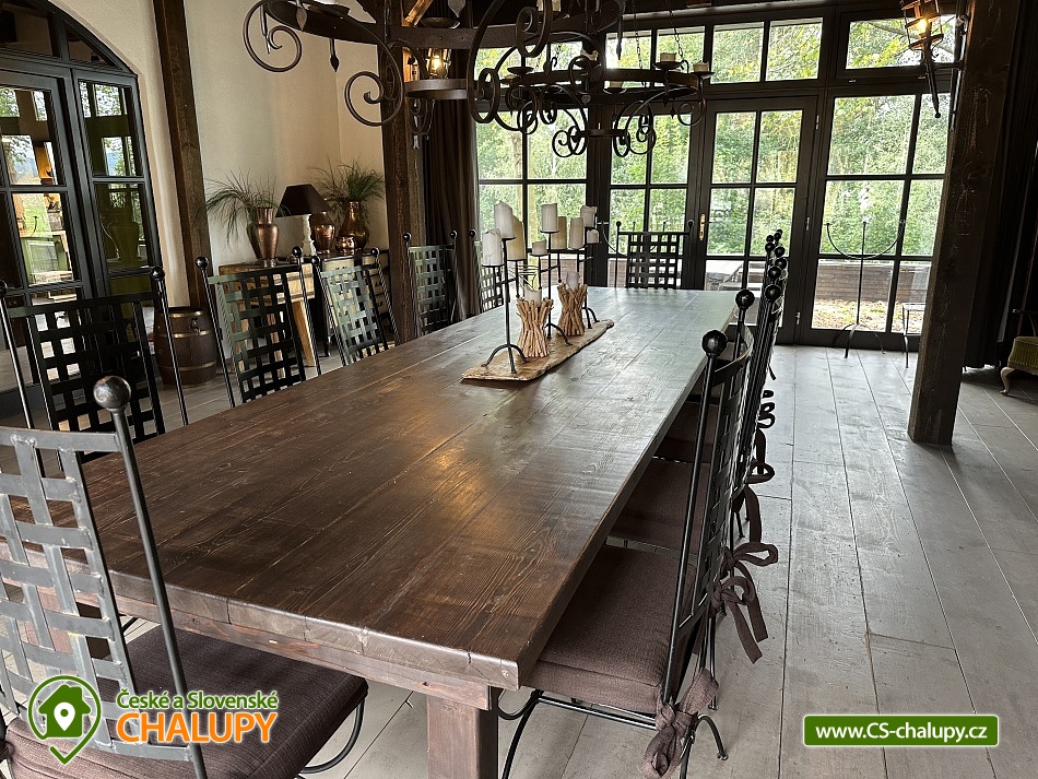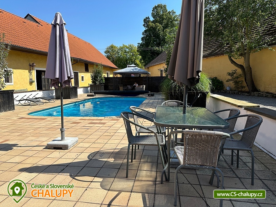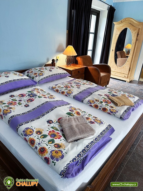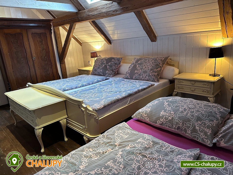 Residence Chmelná - apartment cottage with pool - Český Krumlov. Residence Chmelná is located near Český Krumlov and is a unique historical building in the heart of picturesque nature suitable for a family vacation, corporate event or your wedding. There are 5 apartments built in the building (the building is rented as a whole), which are fully equipped for a longer stay. There are also common rooms in the area. Large kitchen with fireplace: a huge spacious and stylish kitchen is used in most cases mainly for the Spanish Room and the Red Royal Room. It is also used in the case of mass joint evenings and possibly for the preparation of half board or breakfast, which can be ordered. To be used at an additional cost. The living room and living room serve as common rooms for all guests, it includes a large library, home cinema and a large number of board games, a large fireplace and romance are underlined by large candlesticks and chandeliers in which you can light candles. These rooms also have heating. The kitchen is equipped with: stove, oven, dishwasher, refrigerator, freezer, sink, toaster, coffee maker. It includes kitchen utensils and dishes. The building has a rustic apartment - 8 people / 2 bedrooms, living room, kitchen, bathroom (bath + shower), terrace. Manor apartment - 8 persons / 2 bedrooms, living room, bathroom (shower), cast iron stove, kitchen is equipped with: stove, oven, dishwasher, refrigerator, freezer, sink, toaster, coffee maker. It includes kitchen utensils and dishes, dining room with table for 10 people. Very spacious apartment with a large living room, kitchen and a second floor in which the bedrooms are located. Hunting blue apartment - 2 + 2 persons / 1 room, bathroom (shower), kitchen is equipped with: sink, dishes, toaster, stove. This apartment has a terrace. Spanish room: 3 persons / 1 room, private bathroom, shared large kitchen. Beautifully equipped, built-in wardrobe. This room can be connected to the Red Royal Room via a connecting corridor. Red Royal Apartment - 3 persons / 1 room, private bathroom (bath + shower), fitted wardrobes, King size bed, this room can be connected by a connecting corridor with the Spanish, then also from the hall you continue to the residential living room. The whole area has an outdoor heated pool, which is illuminated - 8x4 m, sunbeds and umbrellas. Each apartment has its own bathroom + there is a men's and women's public toilet in the connecting hallway. Central heating / gas + cast iron stove. Parking is possible directly at the building. In the vicinity of a large number of monuments and interesting places. Possibility to rent a quad bike for an extra charge. South Bohemia is perfect for a domestic holiday with friends or family. Countless hiking trails, bike paths and wonderful sights are within easy reach at Rezidenc Chmelná. Accommodation in Chmelná u Křemže provides several benefits. You can really relax and enjoy relaxing days in a picturesque South Bohemian village. Another advantage of the location is that there will be no shortage of ideas for trips. Český Krumlov - UNESCO, is at an air distance of 14 km from the village Chmelná. The state castle and chateau of Český Krumlov is an extraordinary architectural gem, the importance of which is confirmed by the city's inscription on the UNESCO World Heritage List in 1992. Holašovice - UNESCO - Holašovice is at an air distance of 4 km from the village Chmelná.