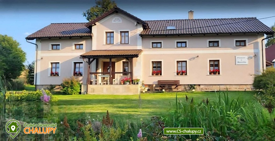 Chalupa u Marušky se nachází v chráněné krajinné oblasti Broumovsko, v blízkosti Teplicko - adršpašských skal a Broumovských stěn, v malebné vesnici Božanov. Vesnička leží pod 770 m vysokou horou Koruna, v krásnem a klidném prostředí s nádhernou přírodou v každém ročním období. Tento kraj nabízí množství turistických tras, cyklostezek a nádherných míst, svou polohou na k podnikání výletů do blízkého okolí, Polska i do vzdálenějších míst (ZOO Dvůr Králové, Podkrkonoší, Krkonoše). Je ideálním místem pro celoroční dovolenou a na své si tu přijdou příznivci turistiky, lyžování (Ski areál Kamenec Teplice nad Metují, Ski areál Janovičky), rodiny s dětmi a ty co mají rádi klid, přírodu a lesy. Chalupa nabízí ubytování pro 2 až 11 osob v celkem 3 pokojích. Ložnice a pokoje: 1. pokoj je pro 4 osoby (průchozí), 2. pokoj pro 3 osoby s koupelnou, 3. pokoj pro 4 osoby s vlastní koupelnou. Sociální zařízení: 3 koupelny (2 koupelny se sprchovým koutem, umyvadlem, WC a 1x koupelna s vanou, umyvadlem + samostatné WC). Parkování přímo, místo pro 5 - 6 aut. Stravování: Vaření v plně vybavené kuchyni. Obchod a restaurace je ve středu obce, cca 1 km od penzionu. Denně čerstvé pečivo, otevřeno i v neděli (přes letní prázdniny). Místní restaurace s poledním menu, vhodná pro děti, s velkou terasou. Vybavení chalupy: Kuchyně - mikrovlnná trouba, elektrická trouba, sklokeramická deska, varná konvice, kávovar, běžné vybavení (hrnky, nádobí atd), terasa, zahrada. V obci lze využít multifunkční hřiště (tenis, volejbal, fotbal). Výlety: Adršpašské a teplické skály - fascinují fascinuje turisty a vandrovníky už od 18.století; tehdy několikadenní požár zničil okolní bujnou vegetaci. Vynikla tak krása skvostných pískovcových útvarů. Od této doby tu začaly vznikat turistické stezky a horolezci postupně dobývali jeden skalní útvar za druhým. Z 18.st. pochází také většina pojmenování místních skalisek. Mezi nejznámější patří Milenci, Starosta a Starostová, Homole cukru, Krakonošova lenoška, Džbán nebo Sloní náměstí. Ostaš - národní park se skalním labyrintem, 2 hodiny trvající cesta. Benediktinský klášter v Broumově - zapsán v seznamu národních kulturních památek, lze navštívit s průvodcem v rámci prohlídky: klášterní kostel sv. Vojtěcha, sakristii, refektář (zde je vystavena kopie tzv. Turínského plátna) a klášterní knihovnu, kt. patří mezi vzácně dochované klášterní knihovny v České republice. Hvězda - na hřebeni Broumovských stěn, ve výšce 674 m n.m., s malou kaplí, postaven ve švýcarském slohu. Návštěvníky a hosty jistě zaujme nádherná dřevěná jídelna se stylovým krbem. Majitel chová také bachyni jménem Beruška, která je velmi ochočená a má ráda společnost. Osówka a Walim - vybudován rozlehlý komplex podzemních chodeb, pravděpodobně jako továrna na utajované Hitlerovi zbraně, zpřístupněných je cca 750 metrů dlouhá trasa s průvodcem. Pod zemí lze vidět také expozice Hitlerova velitelství a podzemních továren na zbraně Třetí říše. Czermna (PL) - ve vesnici se nachází známá kostnice z 18.století. Sloupy, stěny i strop této kaple jsou obloženy kostmi asi 3000 lidí - oběti válek a morové epidemie, která zde ve vesnici kdysi řádila. Janovičky - lyžařský areál s dvěma vleky a jedním dětským vlekem. Jízdarna Hejtmánkovice - koně. Fabrika na zážitky centrum "Walzel" - bowling, střelnice, lezecká stěna, restaurace Švejk. Venkovní bazén v Meziměstí (cca 25km) - 2 sklouzavky, dětský bazén, specialní část pro vodní hry, plavecký bazén. Golf v Broumově (cca 10 km). Pivovar v Olivětíne - ochutnávka piva a exkurze. Možnosti koupání: koupaliště Meziměstí, Přírodní koupaliště Radków, koupaliště Police nad Metují, aquapark Kudowa Zdroj, koupaliště Koupálo Janovičky, koupaliště Teplice nad Metují, koupaliště Náchod, rybník Buchťák, Brodský rybník, bazén Náchod, jezero Kuprovka, rybník Špinka. Blízká lyžařská střediska: Machov, Na Nebíčku. Turistické cíle v okolí: Broumovské stěny. Noční klid od 22.00 h do 7.00 h. Check-in od 16.00 h do 22.00 h. Check-out od 6.00 h do 10.00 h. Těšíme se na Vás u nás.