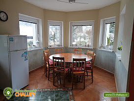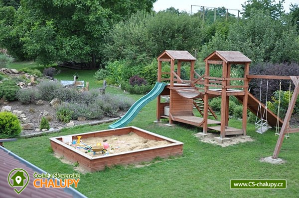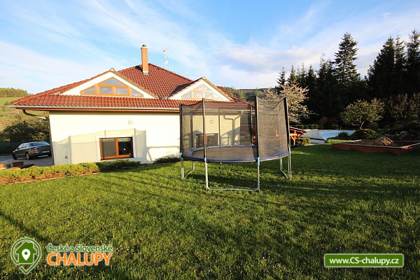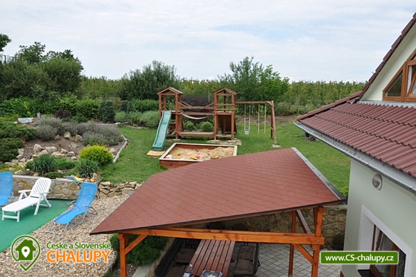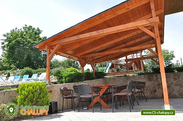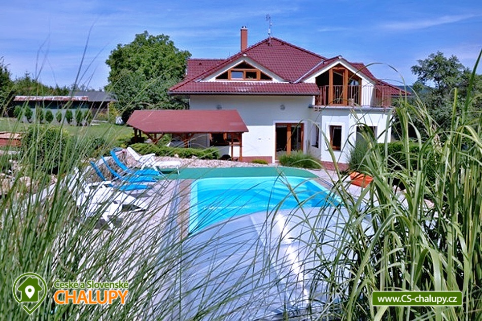 Chalupa s bazénem a zahradou na úpatí Chřibských vrchů v malé obci Střílky v okrese Kroměříž. Kapacita chalupy je 13 lůžek + 2 přistýlky / 5 ložnic. K dispozici jsou 2 plně vybavené kuchyně (posezení, el. vařič, lednice, myčka, horkovzdušná trouba, mikrovlnná trouba, varná konvice), hala s krbovými kamny, TV a rádio s CD. Dále je zde celkem 5 ložnic (1x4-lůžková, 1x3-lůžková, 3x2-lůžková + možnost 2 přistýlek). 2 ložnice (1x3 lůžka a 1x2 lůžka) jsou v přízemí, ostatní ložnice naleznete v patře. Sociální zařízení sestává z 3x koupelny a 3x WC. Přízemí domu je bezbariérové. Vytápění je zajištěno krbovými kamny a také elektricky. U objektu je velký krytý bazén se slanou vodou a protiproudem (6,5 x 3,5 x 1,5 m), dvůr, terasa, zahradní nábytek, ohniště s posezením, gril, volné prostranství, oplocený pozemek a elektricky ovládaná brána. Dále je zde k dispozici nově vybudované dětské hřiště a vinotéka se vzorky sudového a archivního vína. Parkovat lze přímo u objektu. Dům se svojí polohou hodí pro turistiku i cykloturistiku a je určen i pro zimní rekreaci z důvodu blízkosti sjezdovky Stupava. V okolí domu najdete mnoho turisticky zajímavých míst. Mezi ně patří zámek Buchlovice, který spolu s rozsáhlým parkem představuje opravdový architektonický skvost pozdní renesance. Nedaleko můžete navštívit i hrad Buchlov nebo město Kroměříž známé svým zámkem a překrásnou Květnou zahradou. Zapomenout nelze ani na známé poutní místo a klášter Velehrad nebo nedaleký archeoskanzen Modrá. Při toulkách chřibskou krajinou narazíte i na zříceninu gotického hradu Cimburk nebo rozhlednu Salaš, která svým tvarem připomíná dvě do sebe zakleslé sedmičky a umožní Vám výhled na Velehrad, Uherské Hradiště, vrcholky Bílých Karpat nebo Chřibů.
