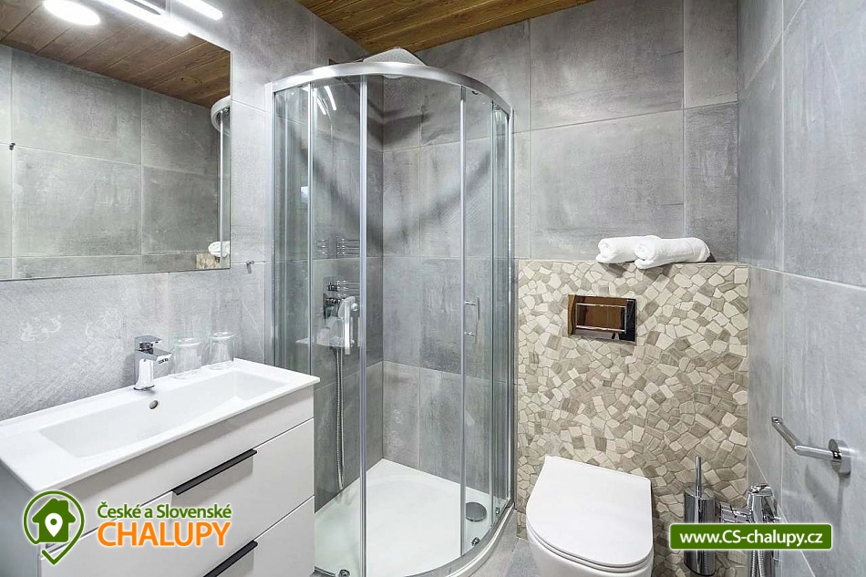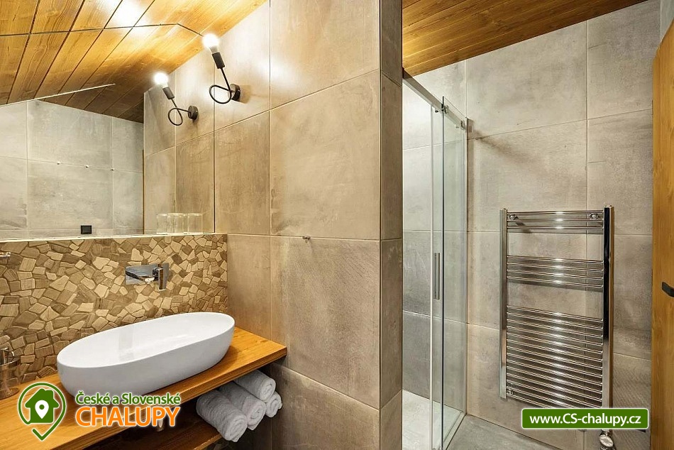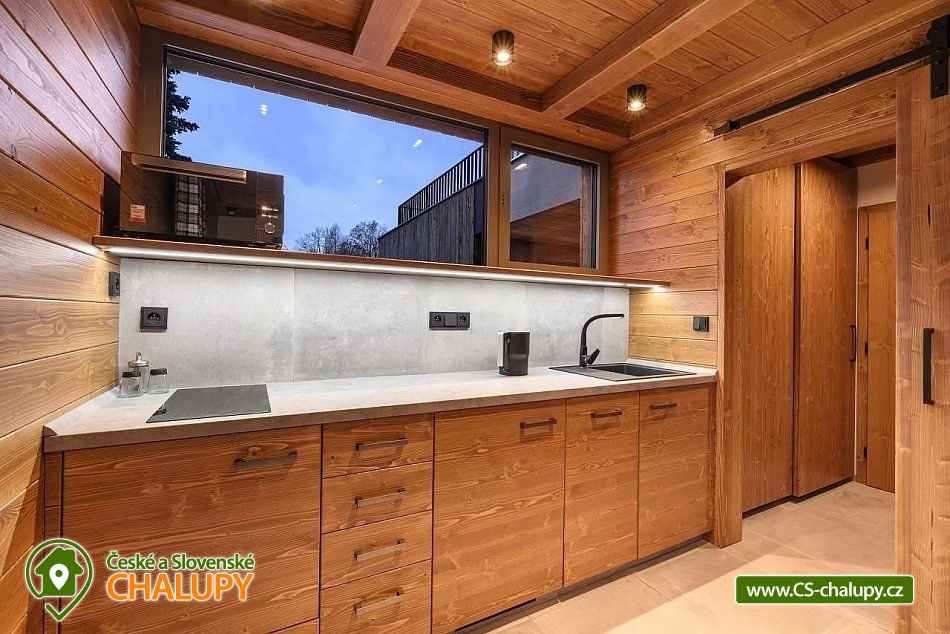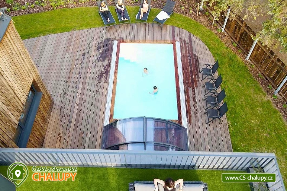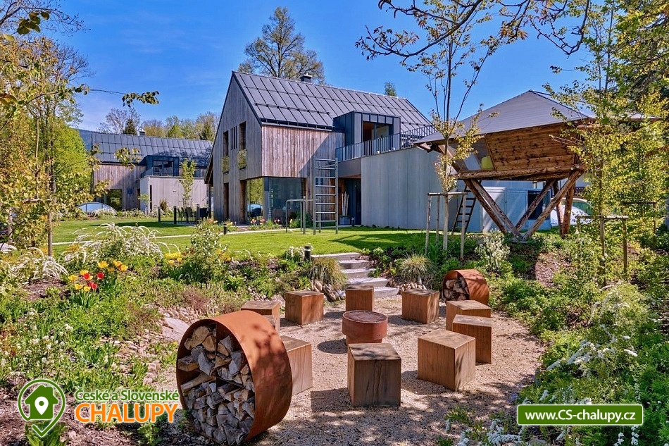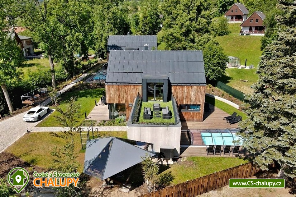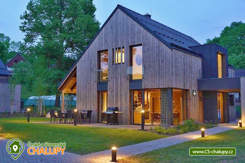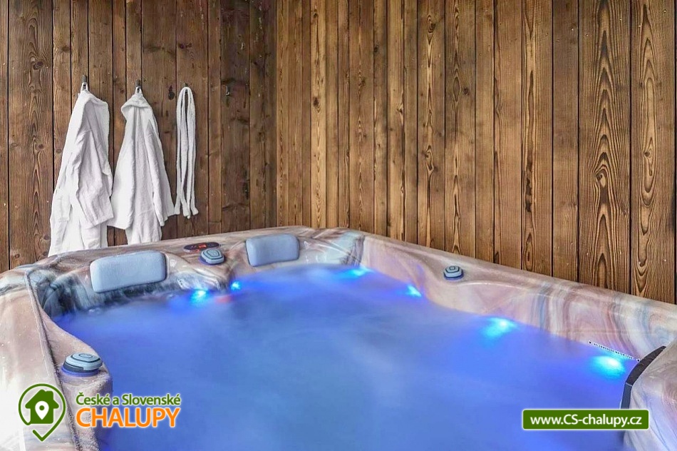 Luxusní chalupa s bazénem se nachází v krásné přírodě Krkonoš v obci Čistá v Krkonoších v těsné blízkosti obce Černý Důl a Janské Lázně. Chalupa je součástí uzavřeného areálu, jehož součástí je také sousední objekt 5C-325. Skvělé místo pro aktivní dovolenou nebo jen odpočinek v každém ročním období, chalupa je svým vybavením vhodná i pro rodiny s dětmi. Těšit se můžete na útulný interiér s dřevěnými prvky, odpočinek u krbu nebo na venkovní terase, na hernu s X Boxem a také na relax ve vířivce nebo koupání v zastřešeném bazénu. Chalupa s bezbariérovým přístupem poskytuje ubytování pro až 10 osob v 5 ložnicích dvoulůžkových ložnicích s manželskou postelí. V horní části chalupy jsou umístěné čtyři oddělené ložnice. V přízemí se nachází samostatný malý apartmán s ložnicí, plně vybaveným kuchyňským koutem (rychlovarná konvice, lednička, myčka nádobí, mikrovlnná trouba, indukční deska, nádobí a mycí prostředky) se sedačkou, TV a koupelnou s WC. Pro ubytované je k dispozici připravené kompletní ložní prádlo a přezuvky. Společné chvíle lze trávit v obývacím pokoji s velkou sedačkou, ze které je možné se pohodlně dívat do krbu a na TV. Na obývací pokoj navazuje plně vybavená kuchyň s indukční deskou, horkovzdušnou troubou, mikrovlnnou troubou, lednicí s mrazákem, myčkou nádobí, espresso kávovarem na zrnkovou kávu, rychlovarnou konvicí, sedvičovačem, toastovačem, mycími prostředky a dalším kuchyňským vybavením. U kuchyně je umístěný prostorný jídelní kout pro 10 osob. V horní části domu ocení malý nocležníci, ale i dospělí herní místnost s odpočinkovými vaky a TV s nejnovější konzolí XBOX ONE X s širokou nabídkou her. K dispozici je také mnoho deskových a karetních her. Do herny se děti dostanou buď po schodišti, anebo po horolezecké stěně. Součástí chalupy je samostatná technická místnost, kde si můžete uložit sportovní vybavení, usušit prádlo a boty. Je zde umístěná pračka se sušičkou. V celém objektu k dispozici WIFI připojení na internet. Sociální zařízení zahrnuje 4 koupelny se sprchovým koutem a WC, dvě jsou umístěné v patře a dvě v přízemí. K dispozici jsou fény, WC papír, mýdlo na ruce, předložky, ručníky, osušky a župany. Vytápění je řešeno podlahovým topením, rekuperací a krbem v obývacím pokoji. V horní části vily jsou pokoje klimatizované. Pro odpočinek slouží horní venkovní odpočinková terasa a venkovní posezení s grilem a přístupem do zastřešeného vyhřívaného bazénu se slanou vodou. Relax nabízí také vířivka s příjemně vyhřátou vodou na 38 °C. V areálu lze využívat i pohodlné sezení na terase u potoka. V celém uzavřeném areálu je také možné si zahrát míčové hry, cvičit na workoutovém hřišti, vymyslet bojovku, pozorovat přírodu z Kukaně, dovádět u potoka nebo rozdělat oheň. Parkovat lze přímo u objektu. K dispozici je nabíječka pro elektroauta. V okolí možnost turistiky, cykloturistiky, koupání, houbaření, lyžování a běžkování. V blízkosti je také jízdárna, tenisové kurty, golfové hřiště a bowling. Mezi možnosti koupání patří např.: aquacentrum Vrchlabí, koupaliště Čistá, aquacentrum Jánské Lázně, rybník Vejsplachy, koupaliště Retro park Sejfy, koupaliště Dolní Kalná, koupaliště Valteřice, Trutnov - Pekelský rybník, rybník U Mlejna, koupaliště Jilemnice, rybník Dolce, přehrada Labská, bazén Jilemnice, atd. V zimním období blízká lyžařská střediska: Černá hora - Černý Důl, Horní Lánov, Černá hora - Jánské Lázně, Ski Family - Dolní Dvůr, Košťálka, Svoboda nad Úpou, Dolní Dvůr - Luisino údolí, Vrchlabí - Kněžický vrch, Strážné, Pec pod Sněžkou, Herlíkovice - Bubákov a další. K výletům v okolí láká Černohorské rašeliniště, Krkonošský národní park, Stezka korunami stromů Krkonoše, Zoologická zahrada Dvůr Králové nad Labem, zámek Kuks, Harrachov – sklářské muzeum s možností návštěvy hutě, Mumlavský vodopád, Vrchlabí, Jilemnice a nejvyšší vrchol ČR Sněžka. Těšíme se na Vás u nás.
