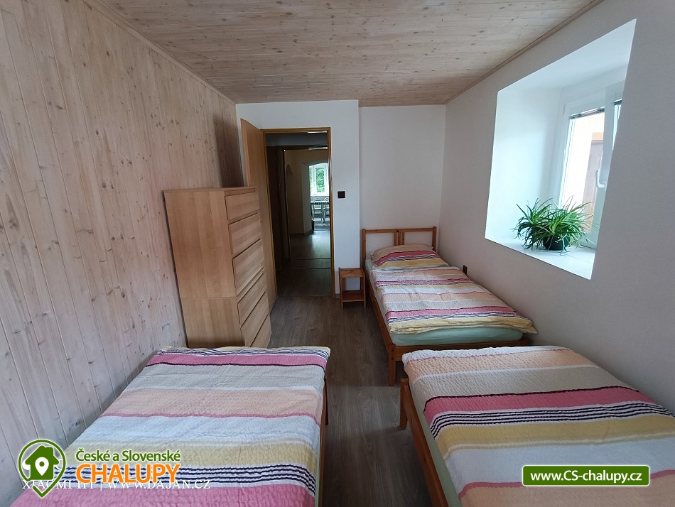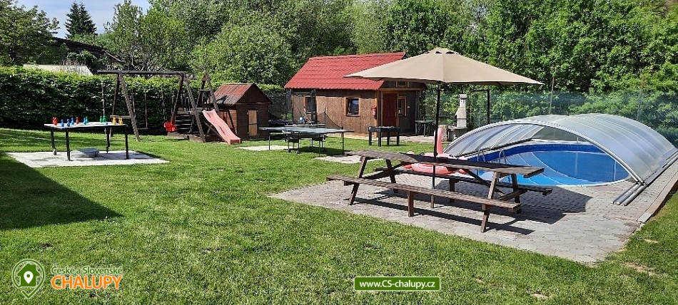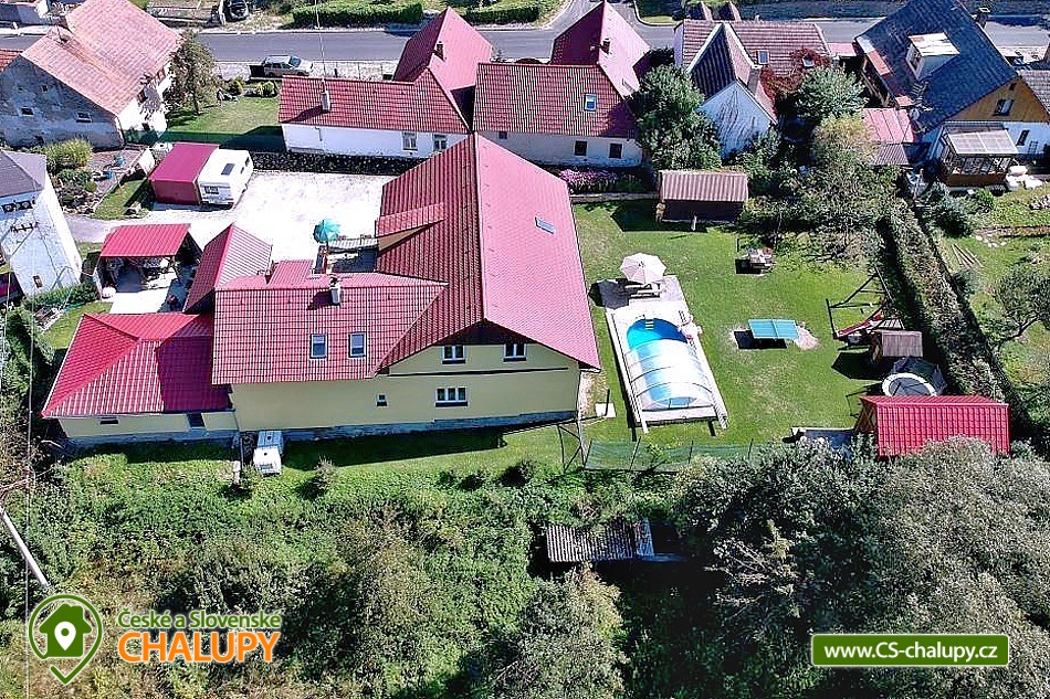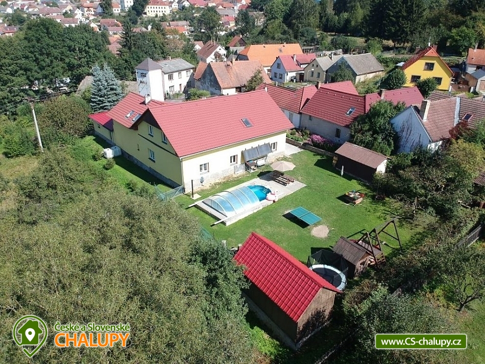 Chalupa s bazénem v krásné České Kanadě plné hradů a zámků, poloha nedaleko rybníku Hejtman a Komorník. Chalupa má kapacitu až 17 osob ve 3 apartmánech. V Letní sezoně pronajímáme chalupu jako celek 1 skupině klientů. V mimosezóně je možno pronajmout i jednotlivé apartmány samostatně. V přízemí chalupy se nachází 2 apartmány. Apartmán I. pro 7 osob má jeden čtyřlůžkový a jeden třílůžkový pokoj. Apartmán II. má 1 čtyřlůžkový a jeden třílůžkový pokoj. Každý apartmán má svůj vlastní vchod. Mezi apartmány jsou dveře, které se mohou uzamknout nebo mohou být apartmány průchozí. Ze dvora je točivé schodiště na terasu ze zábradlím kam se vstupuje do samostatného apartmánu III. pro 3 osoby. Vnitřní prostory objektu jsou nekuřácké. Na zahradě můžete využívat zapuštěný krytý bazén 7,5m x 3,5m (bazén v provozu od 1.5.- 15.9.), posezení u bazénu a grilu, zahradní gril, zahradní chatu s posezením. V chalupě jsou také elektronické šipky. Dále je na zahradě dětský koutek, s houpačkami, lanem na šplhání, skluzavkou, pískovištěm, zahradní domeček, stolní tenis, velká trampolína s ochrannou sítí a spoustu zahradních her kuželky, badminton, stolní fotbal, velké zahradní člověče nezlob se, ruské kuželky a další. Je zde i uzamykatelná garáž například pro vlastní kola a kočáry. V celém objektu a na zahradě je WiFi. V okolí chalupy se nachází spoustu krásných lesů vhodné ke sběru hub a borůvek a mnoho rybníků k rybaření. Objekt se nachází v oblasti Česká Kanada. Rybaření je zde v okolí možné na více místech - například už 30m od objektu kde teče Hamerský potok. Dále 300m od objektu na rybníku Zájezdek, nebo 2km od objektu soukromý rybník kde není potřeba rybářský lístek, pouze se zaplatí denní vstupenka. Koupání u objektu v bazénu, v autokempu Komorník 2 km, Jindřichův Hradec v novém aqua parku 20 km nebo v Jihlavě velký aqua park 45 km. Kolem Strmilova vedoucí převážně lesem jsou dobře značené cyklostezky. V zimním období je v Mrákotíně 12 km sjezdovka z vlekem. Těšíme se na Vás u nás.