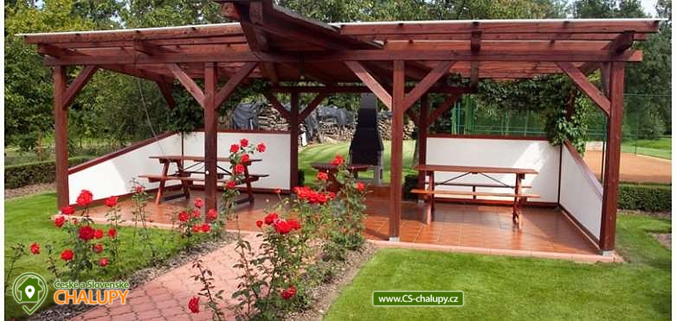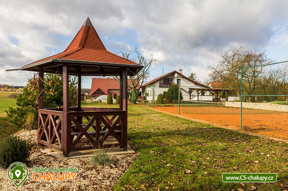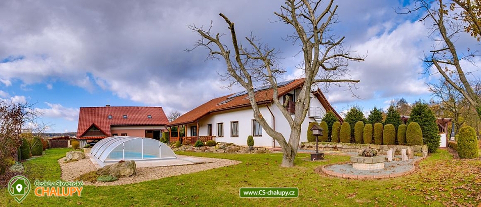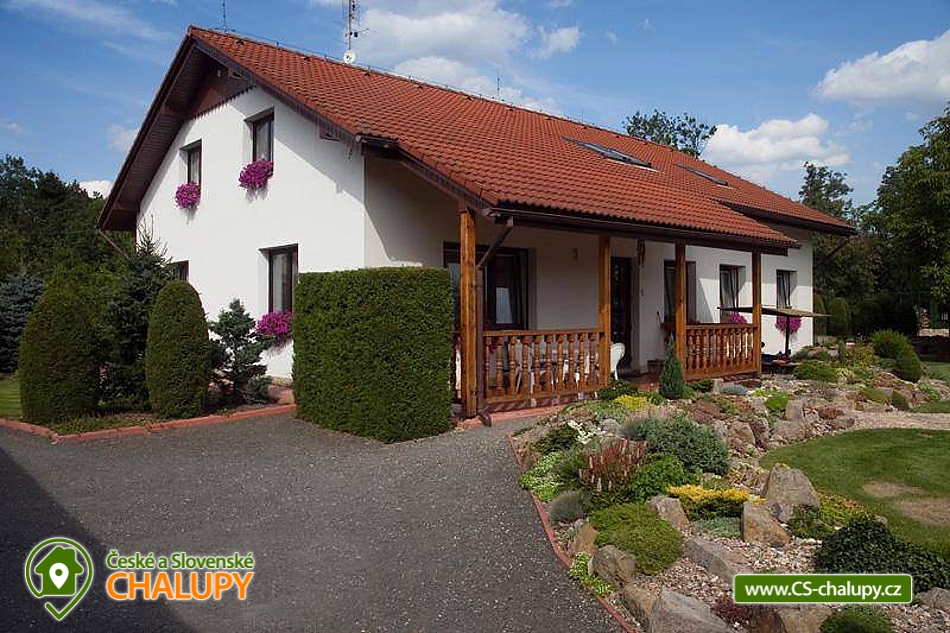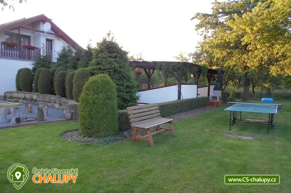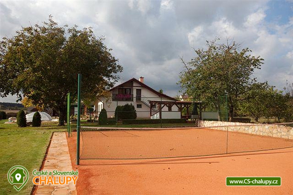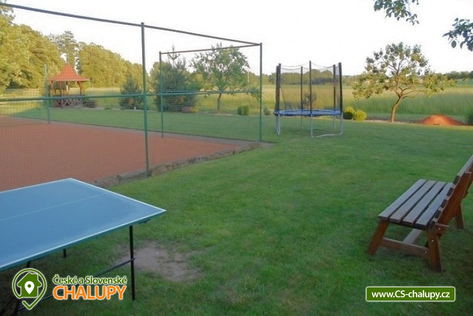 Pension u Kňourků - Vidoň - cottage with a swimming pool - Bohemian Paradise and Podkrkonoší. The Penzion u Kňourků is located in the picturesque village of Vidoň. Luxurious, stylish cottage in a beautiful and quiet area of Podkrkonoší, on the edge of a small village in the middle of nature, surrounded by forests, meadows and fields. There are 8 beds (2x 4 beds), 4 (2 + 2) extra beds possible. The cottage is especially suitable for two families with children offering relaxation and sporting possibilities. An advantage is the swimming pool heating with the possibility of water temperature control (25 - 35 degrees) depending on the weather and swimming from May to September. The cottage has a swimming pool with roofing, heating and lighting, a tennis court with a gazebo and a table for table tennis. Bicycle hire is also available. For children there is a sandpit, swing, trampoline. Possibility to rent bicycles for children. Large and small can have fun at ball and social games. Guests are provided with a garden barbecue, a smoker's fireplace, lava stones and a stainless steel barbecue. Rooms and equipment: There are a total of 2 bedrooms with 4 beds (with the possibility of 2 + 2 extra beds). For small children we can rent a baby cot and a chair. Each bedroom has a bathroom with a toilet. Parking is provided on fenced grounds, which provides plenty of parking space. Shared kitchen (hob, microwave, electric kettle, coffee maker and fridge). The living room is equipped with TV, satellite, video player, DVD player and internet connection. Surrounding the cottage offers many other relaxation and relaxation options, but also nature suitable for walks - meadows, rocks and forests. Countless sights and interesting localities (Zoo Safari Dvůr Králové, Bohemian Paradise - Prachov Rocks, Pecka Castle, ski lift in winter or only 40 km away from Giant Mountains). In the vicinity there is a network of cycling trails and hiking trails, an aquapark in Jičín or in Hradec Králové, 25 km away.