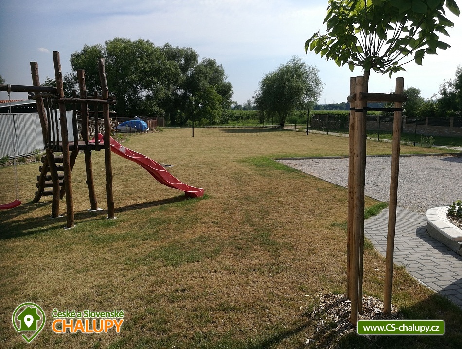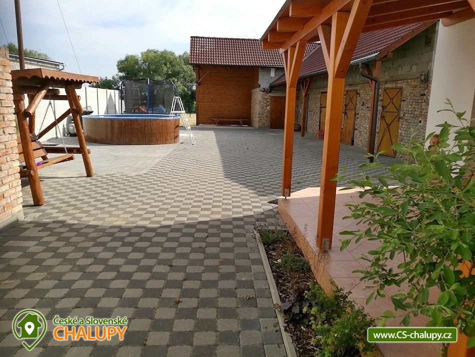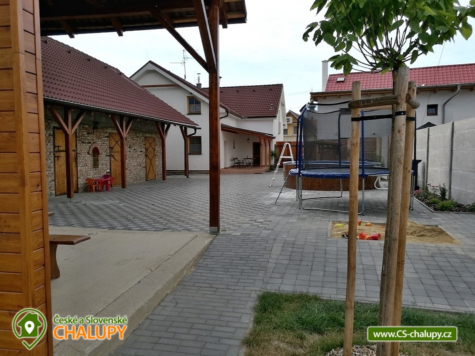 Chalupa s bazénem na Velkopavlovické vinařské stezce u CHKO Pálava a Novomlýnské nádrže. Chalupa k pronájmu s kapacitou až 21 osob se nachází v obci Přítluky.. Chalupu pronajímáme jako celek pro 1 skupinu klientů. V přízemí chalupy je samostatný apartmán pro 4 osoby s vchodem ze dvora. V tomto apartmánu je společenská místnost s kuchyňským koutem, krb, TV, plně vybavená kuchyně nádobím, lednice s mrazákem, myčka, sklokeramická deska, horkovzdušná trouba, mikrovlnná trouba, varná konvice. Dětský koutek, který se nachází za kuchyní. Dvoulůžková ložnice s možností přistýlky. Koupelna se sprchovým koutem, vanou a WC. Ve společenské místnosti je rozkládací pohovka pro dvě osoby. Apartmán podkroví: vchod ze dvora. Společenská místnost s kuchyňským koutem, TV, plně vybavená kuchyně nádobím, lednice s mrazákem, myčka, sklokeramická deska, horkovzdušná trouba, mikrovlnná trouba, varná konvice. Třílůžková ložnice s možností dvou přistýlek, TV. Další 2 třílůžkové ložnice s možností jedné přistýlky a TV. Koupelna se sprchovým koutem, samostatné WC. Ve společenské místnosti jsou dvě rozkládací pohovky po dvou osobách. Objekt vytápí ústřední topení, plynový kotel s radiátory a v přízemí je navíc krbová vložka na dřevo. Možnost rezervace degustace a prohlídky vinného sklepa. Chalupa má vlastní uzavřené parkoviště, dvůr s posezením a velkou zahradou. K vybavení patří stolní tenis, gril, kotel na guláš, trampolína, venkovní bazén, síť na nohejbal, či volejbal. Prostory pro uložení kol. Přítluky jsou malou vinařskou obcí. Čeká vás tady několik sklepů pro večerní koštování, vinic jsou kolem širé lány. Místní poklidný ráz je stvořený pro dovolenou. V blízkosti se nachází Novomlýnské nádrže, Lednicko - Valtický areál, Pálavské vrchy, známé vinařské obce Velké Pavlovice, Zaječí, Rakvice, Velké Bílovice, Pavlov, Bulhary, Horní Věstonice, Dolní Věstonice atd., které jsou navzájem propojené cyklistickými stezkami. Těšíme se na Vás u nás.