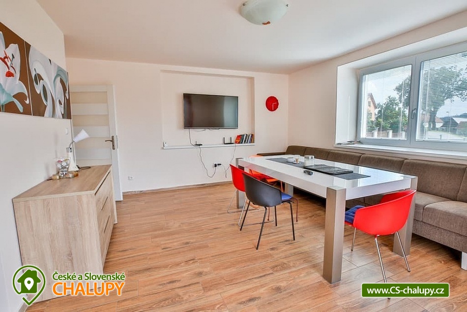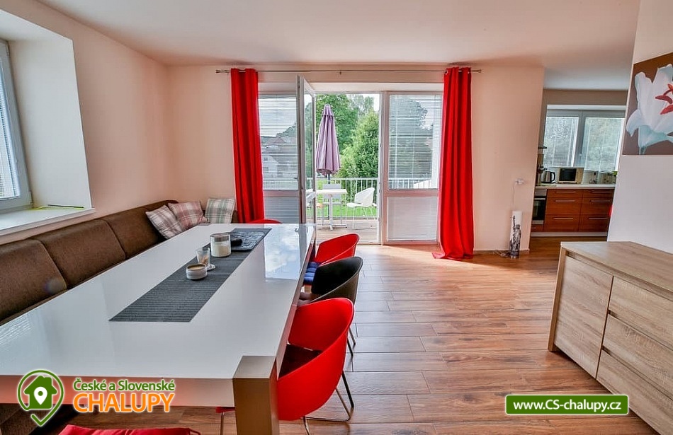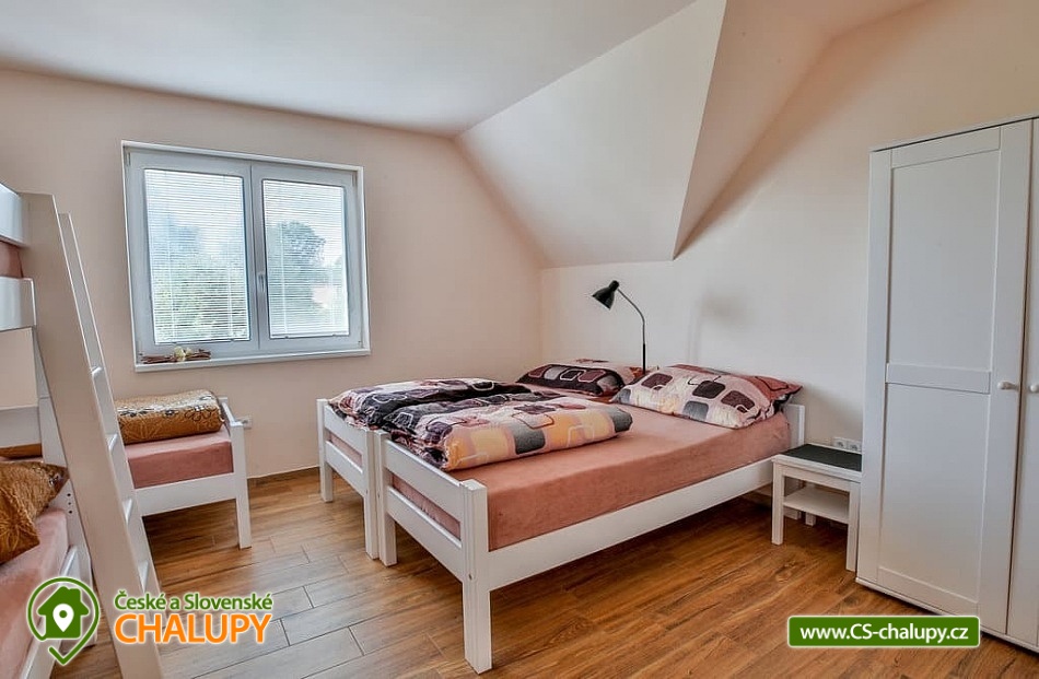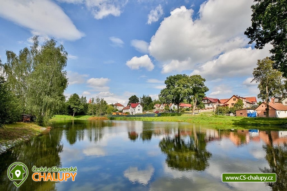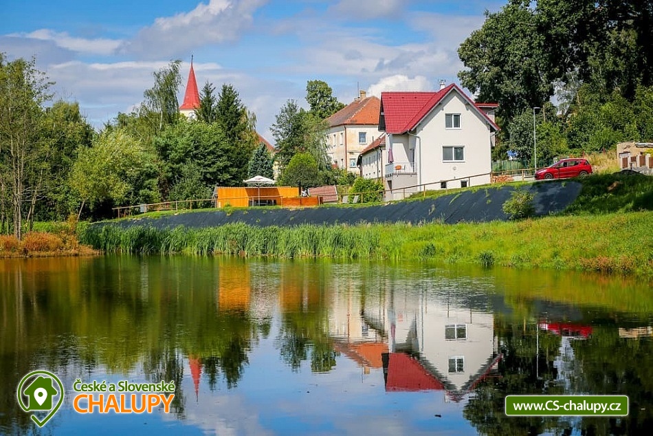 Cottage with outdoor pool - Vysočina is located on the border of the South Bohemian Region and the Vysočina Region. It stands on the shore of a municipal pond, a short distance from the forest and near the towns of Tábor, Pelhřimov and Vlašim. It offers quiet accommodation with an outdoor pool and a view of the pond. The cottage can accommodate 11 people. There are two bedrooms (1x five-bed and 1x six-bed), which are located on the floor. There is also a common room with a fireplace and a kitchenette in the basement and a living room with a kitchenette, a comfortable sofa and a TV on the ground floor of the cottage. The kitchenette is fully equipped (dishes, electric oven, ceramic hob, microwave, kettle, fridge, freezer, toaster, toaster and dishwasher). The sanitary facilities include one bathroom with a shower, toilet, washing machine and two other separate toilets on the ground floor and basement of the building. Wi-Fi connection available. The cottage has a well-maintained grassy plot with an outdoor pool, sun loungers, a fireplace and a grill. You can enjoy additional seating on the balcony or terrace overlooking the pond. The entire building is heated by underfloor heating, there is a fireplace in the basement. Parking is possible directly at the building for 5 cars and bicycle racks are also available. The surroundings are attractive for hiking, cycling and mushroom picking. Tips for trips: Kámen Castle, Chýnov Cave, ruins of Šelmberk Castle and Choustník Castle, Červená Řečice Chateau, Kovářka Lookout Tower, Tábor Zoo. Swimming options include: Valcha - Cetoraz pond, Černovice-Klínot swimming pool, Černý pond, Mladá Vožice swimming pool, Knížecí pond, Fejfar pond, Hejlovský pond, Pohoda swimming pool, Trnávka dam, Stráž pond, Tábor swimming pool, Jordán water reservoir, Tábor swimming pool, etc. In winter, you can ski in the Monínec ski area, Horní Kouty - Radvánov, Křešín ski lift. We look forward to seeing you.