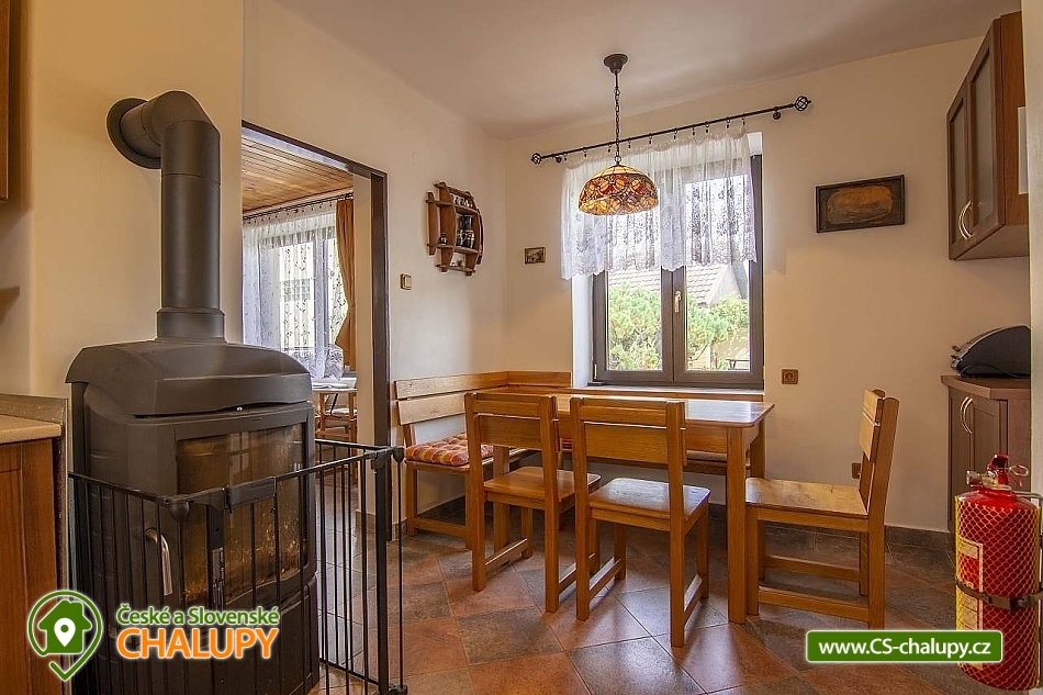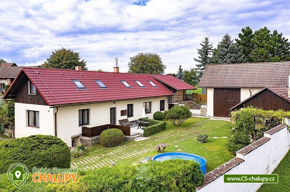 Chalupa s bazénem na Vysočině nedaleko Sečské přehrady - to je pohodová rodinná dovolená v soukromí na velkém pozemku s pergolou, dětským hřištěm, trampolínou, bazénem a vyhřívaným sudem. Chalupa pro rodiny s dětmi disponuje 2 nezávislými prostory (přízemí a patro mají vlastní vchod). V každé části chalupy je vlastní kompletní vybavení od kuchyně, koupelny, obývacího pokoje až po pohodlné ložnice. Chalupa je po kompletní rekonstrukci. Chalupa k pronajmutí poskytuje ubytování pro 12 osob ve 4 ložnicích. Patro : 1x velká ložnice (manželská postel + patrová postel), rozšířený obývací pokoj ( 2 postele ), koupelna a kuchyň s jídelnou. Přízemí (6+1): 2x velká ložnice s manželskou postelí + patrová postel, obývací pokoj , koupelna, kuchyň a jídelna. Kuchyně: Kompletní vybavení pro běžné vaření. Kapslový kávovar Dolce Gusto, presovač, topinkovač, toustovač, ruční mixer. Sociální zařízení: Patro: Záchod + sprchový kout. Přízemí: Záchod + vana, pračka. Vytápění: Patro: elektřina. Přízemí: elektřina + pevné palivo. Parkování pro 4 auta u chalupy. Pro děti: Spoustu hraček od kuchyňky, panenek, autíček, omalovánek, knížek přes různá odrážedla či mobilní skluzavku až po dětskou jídelní stoličku či vaničku na koupání, nebo houpací křesílko pro nejmenší. V každé koupelně je dětská stolička u umyvadla. Na zahradě jsou v létě také maliny, ostružiny, borůvky, sad jablek a několik vysázených rajčat. Vše k dispozici pro ubytované. V Leškovicích je dětské hřiště a hned naproti chaty i nový tenisový kurt. Na výlety můžete vyrazit dle turistických tras, vesnicí prochází hned dvě. Na kole se dá vyrazit po odlehlých silničkách na všechny směry. Jedna vede i k 15 km vzdálené Sečské přehradě, což jako letní výpravu vřele doporučuji. Autem pak dojede za 30 minut do Kutné Hory, Chotěboře či Havlíčkova Brodu, kde je nové venkovní koupaliště, krytý bazén a spousta sportovního vyžití. Za 40 minut se dostanete do Jihlavy, kde je krásná ZOO, aqua park, zábavný park Robinson a spoustu jiné zábavy. Chybí vám nějaká informace ? Zavolejte a domluvíme se... Těšíme se na Vás u nás.