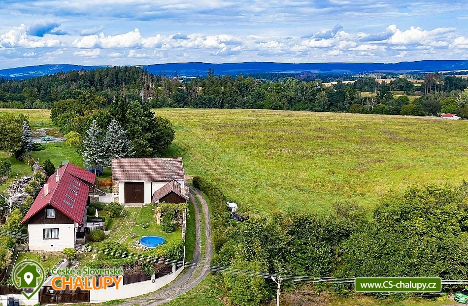 „Chalupa s bazénem na Vysočině - bazén, vyhřívaný sud, velká zahrada...“