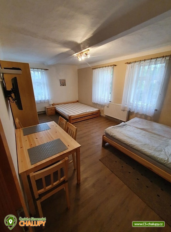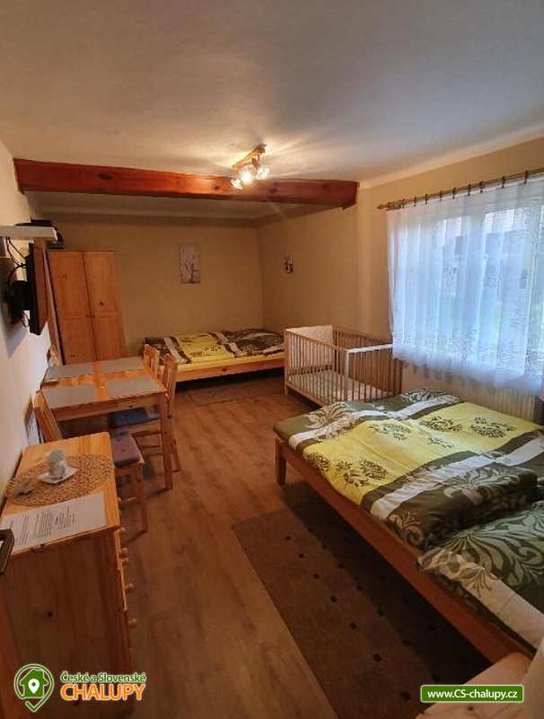 Chalupa s bazénem u hradu Kost - Český ráj. Chalupa se nachází v srdci Českého ráje, nedaleko menšího městečka Sobotka, v obci Vesec. Ubytování je ideální jak pro rodinné oslavy, partu přátel, i pro ty, kteří hledají klidné místo k odpočinku. Díky své skvělé lokalitě nabízí chalupa ideální podmínky pro procházky přírodou i cykloturistiku. V okolí se nachází množství značených stezek a cyklotras v krásném prostředí Českého ráje. K dispozici je ubytování pro až 17 hostů, rozdělené do tří, plně vybavených apartmánů. V přízemí se nachází 4-lůžkový apartmán s jednou ložnicí (2x manželská postel), TV, plně vybavenou kuchyní (mikrovlnná trouba, rychlovarná konvice, lednice, plynový sporák s troubou a nádobí) a koupelnou se sprchovým koutem, umyvadlem a toaletou. Dále je v přízemí 8-lůžkový apartmán, ve kterém se nacházejí dvě samostatné ložnice (každá zahrnuje 2x manželskou postel a TV), plně vybavená kuchyň (mikrovlnná trouba, rychlovarná konvice, lednice, plynový sporák s troubou a nádobí) a koupelna se sprchovým koutem, umyvadlem a toaletou. Tento apartmán je vhodný pro známé nebo rodiny. V prvním patře najdete 5-lůžkový apartmán s velkou místností, která je členitě rozdělena na ložnici (2x manželská postel) a obývací část s TV a rozkládací pohovkou (možnost přistýlky pro 1 osobu). Součástí apartmánu je také plně vybavená kuchyň (mikrovlnná trouba, konvice, lednice, el. varná deska, nádobí) a koupelna se sprchovým koutem, umyvadlem a toaletou. Možnost vypůjčení dětské postýlky a dětské židličky. V objektu se nachází společenská místnost s posezením až pro 20 osob, kde najdete hernu se šipkami, stolním tenisem a vinárnou. Vytápění chalupy je řešeno elektrickým topením, ve společenské místnosti jsou k dispozici krbová kamna. V celém objektu je možnost zdarma WI-FI připojení na internet. Chalupu obklopuje rozsáhlá oplocená zahrada s možností parkování přímo u objektu (max. 4 auta), odkud vede celoročně přístupná příjezdová cesta přímo až k chalupě. Součástí zahrady je posezení pod pergolou, kde je možnost využít zahradní gril. Dále je zde také bazén, trampolína, houpačka, pískoviště či ohniště. Možnost uložení kol v uzamykatelné kůlně. V okolí chalupy možnost turistiky, cykloturistiky, horolezectví, koupání, rybaření, houbaření, běžkování a lyžování. Výhodou jsou blízké tenisové kurty v Libošovicích nebo horolezecká stěna a minigolf v Sobotce. Mezi možnosti koupání patří např.: koupaliště Sobotka, rybník Nebákov, rybník Věžák, Drhlenský rybník, Jinolické rybníky, koupaliště Turnov, koupaliště Kněžmost, rybník Bažantník, koupaliště Sedmihorky, koupaliště Sklář nebo Aqua park v Jičíně. V zimě jsou výhodou blízká lyžařská střediska např.: Ski areál Kozákov, Ski areál Zvičina, Ski areál Paseky nad Jizerou, Ski areál Šachty, Ski areál Máchovka Nová Paka, běžecký areál v Lomnici nad Popelkou atd. K výletům v okolí láká: Prachovské skály (ráj pro horolezce), hrad Kost, zámek Humprecht, zřícenina hradu Trosky, hrad Valdštejn, zámek Hrubá skála, hrad Valečov, zámek Dětenice nebo Jičín - město pohádek. Těšíme se na vás u nás.