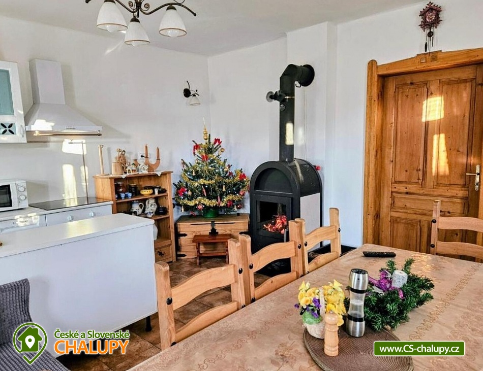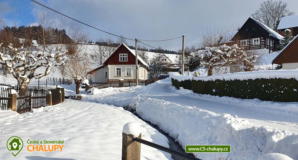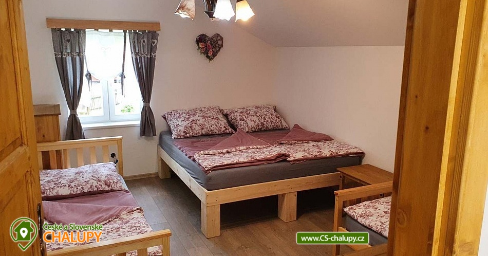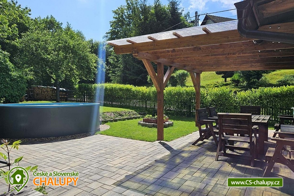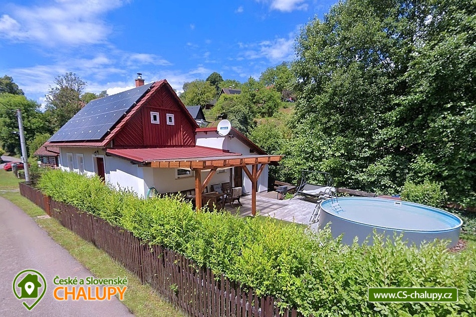 A cozy cottage with a swimming pool is located in a quiet part of the village of Dolní Javoří, in the immediate vicinity of a forest and a stream, not far from the town of Lázně Bělohrad. It is ideal for families with children and groups of friends looking for a quiet place to relax. The location offers a wide range of opportunities for hiking, cycling and relaxation in nature. Accommodation for 8 guests is available in two attic bedrooms (each bedroom has 1 double bed, 2 single beds). A cot is available. On the ground floor of the cottage you will find a common room with a fully equipped kitchenette (fridge with freezer, microwave, kettle, hob, oven and dishes), dining table, sofa and satellite TV. The sanitary facilities include a bathroom with a shower, sink, toilet and washing machine. There is also a separate toilet. The cottage is heated by a fireplace stove with an exchanger and air conditioning. The property offers free WI-FI internet access. The cottage is surrounded by a fenced garden with parking directly at the property (max. 3 cars). The garden includes a covered pergola with a grill. There is also a fireplace. An outdoor pool or garden swing are available for relaxation. The little ones will appreciate the children's sandbox. In the vicinity of the cottage, there are opportunities for hiking, cycling, swimming, fishing, mushroom picking, cross-country skiing and skiing. Swimming options include: Pecka swimming pool, Pardoubek pond - Lázně Bělohrad, Šárovcova Lhota swimming pool, Rumchalpa quarry Nová Paka, Jahodnice water reservoir, Mlázovice swimming pool, Lukavec u Hořic swimming pool, Mostek swimming pool, Dolní Kalná swimming pool, Miletín swimming pool, Podhorní Újezd swimming pool, Konecchlumí swimming pool or Aquapark Jičín. In winter, nearby ski resorts are an advantage, for example: Ski Resort Zvičina, Ski Resort Máchovka in Nová Paka, Ski Resort Mostek, Ski Resort Vrchlabí, Ski Resort Černý Důl or Ski Resort Benecko. Excursions in the surrounding area are attractive: Pecka Castle, Novopacké Waterfalls, Masaryk Tower, ruins of Kumburk Castle, Dvůr Králové Zoo, Prachovské Rocks, Jičín - a fairy tale town, etc.