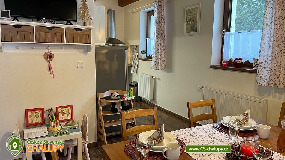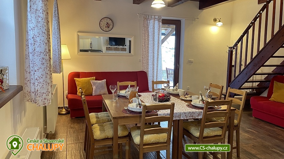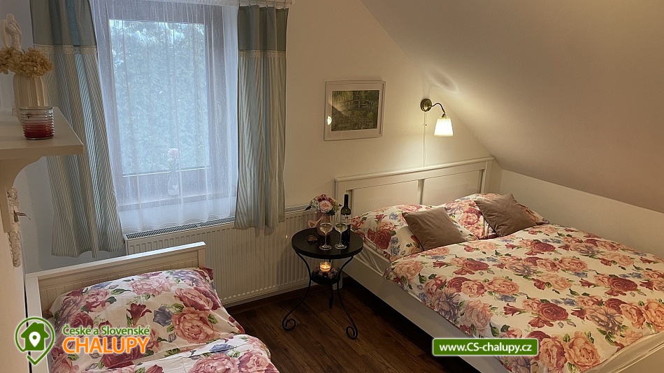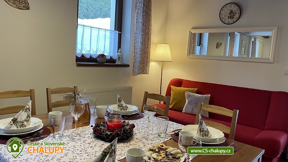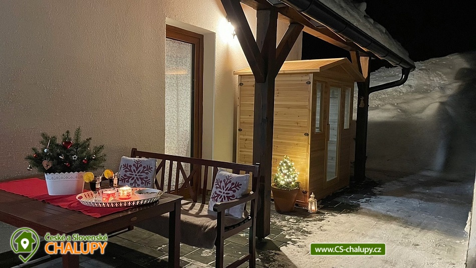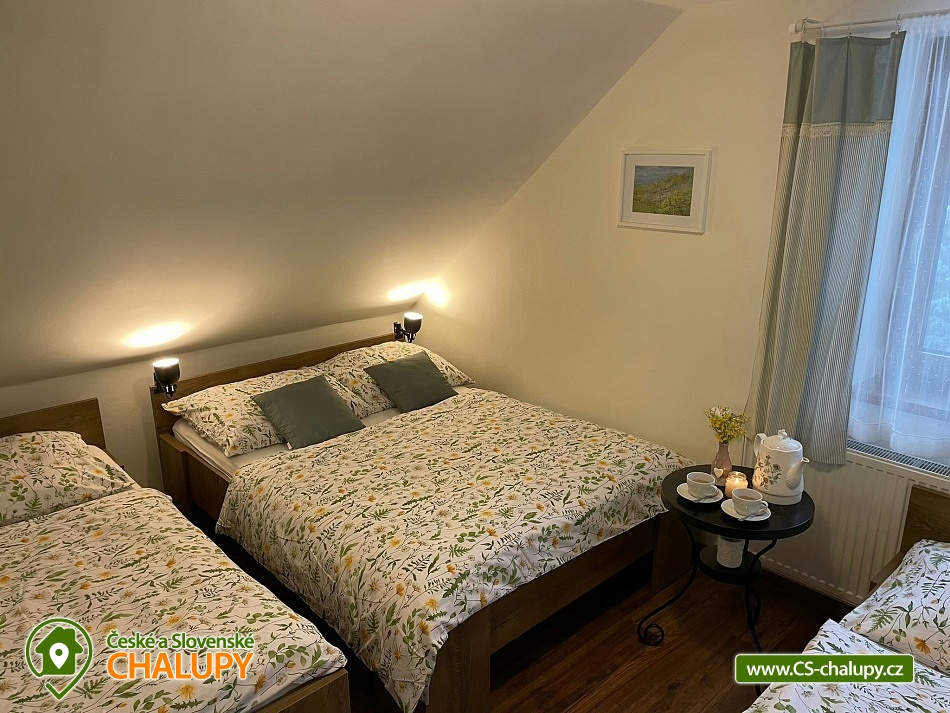 Chalupa U Fojtíků Maršíkov - Velké Losiny - ubytování apartmán CHKO Jeseníky. Naše chalupa se nachází na klidném místě obce Maršíkov uprostřed krásné přírody s výhledem na okolní kopce a hory. Tato lokalita není zatížena turistickým ruchem, najdete zde oázu klidu. Poskytujeme celoroční ubytování pro 8 osob v apartmánu se dvěma ložnicemi, které jsou umístěny v patře. V přízemí apartmánu je hostům k dispozici plně vybavená kuchyně se sporákem, troubou, myčkou, mikrovlnou troubou, lednicí, rychlovarnou konvicí a obývací pokoj se dvěma pohovkami a jídelní stůl pro 8 osob, 1x koupelnu se sprchovým koutem a 2x WC (v přízemí a v patře). Vytápění je zajištěno elektrokotlem. Parkování je možné přímo u chalupy pro až 4 auta. Malí návštěvníci jistě ocení zahradu s houpačkou, skluzavkou a pískovištěm a domečkem. Dále je hostům k dispozici venkovní zastřešené posezení, gril, bazén a infrasauna pro 4 osoby. Večírky/akce nejsou povoleny. Od hostů se vyžaduje noční klid od 22:00 do 6:00. Chalupa je dvojdomek, jeho druhou část nepravidelně používají majitelé. V letních měsících jsou v okolí chalupy ideální podmínky pro horskou turistiku, cyklistiku, in-line brusle, plavání v termálním koupališti, bobovou dráhu, minigolf, minikáry, horské koloběžky, tenis, jízdu na koni, rybaření a mnoho dalších sportovních aktivit. V zimě můžete využít blízká lyžařská střediska pro začátečníky i pro pokročilé. Ski areál Kouty, Přemyslov, Ski Centrum Oáza, Červenohorské sedlo a řada dalších. V okolí se nachází i několik udržovaných běžkařských tras. Možnosti koupání v blízkosti chalupy: Velké Losiny - termály, termální koupaliště Velké Losiny, koupaliště Rapotín, přehrada Krásné, koupaliště Šumperk - Bratrušák, bazén Šumperk - Aquacentrum, koupaliště Bludov - Vlčí Důl, koupaliště Ruda nad Moravou, bazén Domašov - Bělá pod Pradědem, Bazén Karlova Studánka, Edrovický rybník, Rybník Tvrdkov nebo např. Rýmařov - Aquacentrum Slunce.