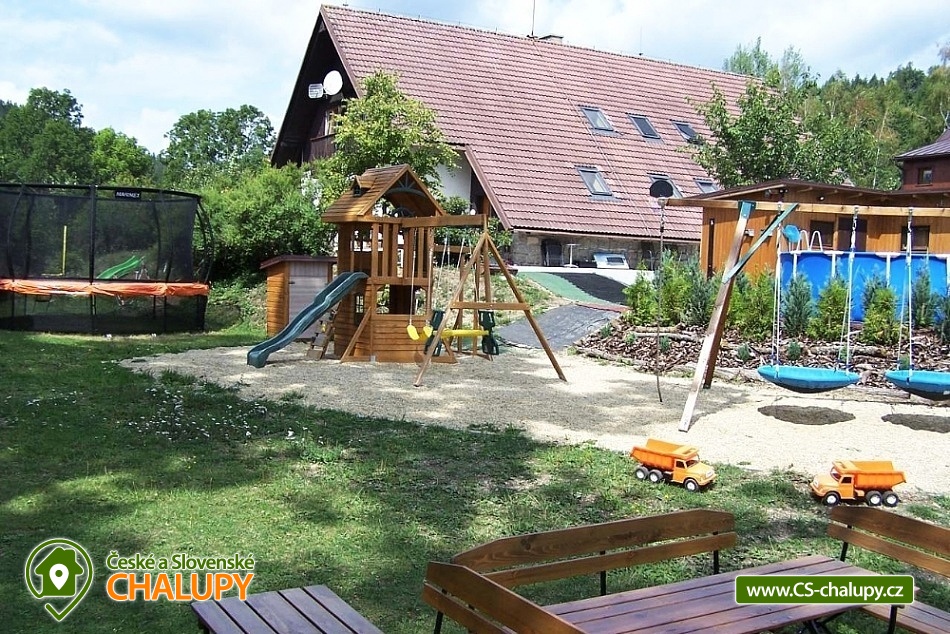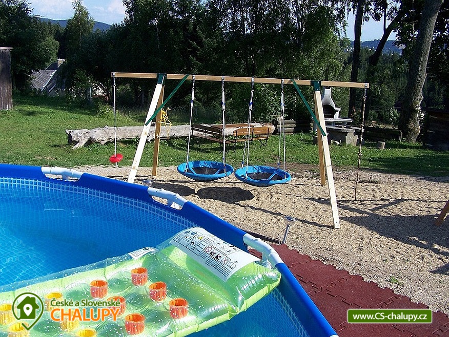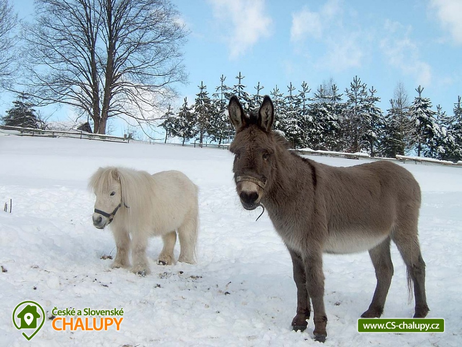Chalupa s bazénem a výhledem na koňské pastviny se nachází na úpatí Jizerských hor, nedaleko Jablonce nad Nisou a Jizerské magistrály (turistika + cyklo + běžky). Setkáte se zde s rozmanitým zvířectvem - koně, skot, poník, oslík, kočičky a pes. Objekt možno pronajmout jako celek v soukromí, případně samostatně apartmán v přízemí a patře, každý je pro až 8 osob. Chalupa poskytuje ubytování ve čtyřech dvojlůžkových stylově zařízených pokojích. Každý pokoj má možnost 2 přistýlek. Dva pokoje jsou v přízemí a z francouzských oken lze vycházet na terasu. Oba pokoje mají společnou chodbičku a kuchyňku. V patře jsou také dva pokoje se společnou chodbičkou a kuchyňkou. Vpravo od schodiště je pro všechny pokoje společenská místnost s krbovými kamny, s kuchyňským koutem, lednicí, TV se satelitem, jídelními stoly a sedací soupravou. Každý pokoj má ve vstupní chodbičce kromě velké šatní skříně k dispozici ledničku. Z této chodbičky se vchází do pokoje nebo do sociálního zařízení, které je vybaveno WC, sprchovým koutem a umyvadlem. Objekt je v zimním období vytápěn centrálně tepelným čerpadlem. V chladných dnech si mohou hosté přitopit krbovými kamny ve společenské místnosti. Velká francouzská okna pokojů jsou orientována na jih, takže pokoje bývají vyhřáté od sluníčka. Pokud nehodláte vařit, z místních pizzerií a vývařoven vám přivezou ochotně pizzu nebo jiné objednané jídlo. V okolí přehrady i cestou do města je velký výběr restaurací a občerstvení. Obě kuchyňky jsou vybaveny sporáky a malými linkami s dřezem. Rychlovarné konvice, mikrovlnky a překapávače jsou v kuchyňkách i v kuchyňském koutu ve společenské místnosti. Jizerská magistrála slouží pro turisty, cyklisty i běžkaře. Při nepříznivém počasí je v dosahu MHD mnoho sportovních, kulturních a obchodních stánků města Jablonce (Muzeum skla, krytý bazén s vodním světem, sauny, kina aj.). V 11 km vzdáleném Liberci najdete ZOO a botanickou zahradu, Ještěd s lanovkou, Babylon, IQlandii aj. Při delších pobytech doporučujeme výlet do nedalekého Harrachova nebo na Maloskalsko či Železnobrodsko (začátek CHKO Český ráj) nebo do nedalekých Lužických hor. Při dostatku sněhu bývá upravena běžecká stopa pro klasiku přímo u objektu. Místní děti užívají pekáčů a lyžiček v bezpečí místního "ďolíku" před odbočkou k chalupě. Těšíme se na Vás u nás.