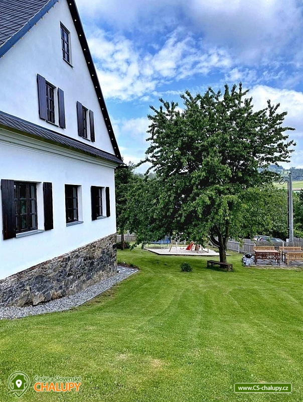 Cottage Three Wells - Kuncice pod Kralicky Sneznikem - 3 apartments. Apartment cottage with swimming pool and whirlpool offers accommodation in 3 separate apartments, the object can be rented as a whole to 1 group of clients, or even individual apartments separately. Apartment 1: triple apartment, extra bed (sofa bed) for 2 additional persons. Apartment 2: four-bed apartment, extra bed (double sofa bed) for 2 additional persons. Apartment 3: five-bed apartment, extra bed (double sofa bed) for 2 additional persons. Each apartment has a separate bedroom, a fully equipped kitchenette, a living area with an extra bed and a bathroom. Kitchen equipment: fridge, microwave oven, induction hob, electric kettle, complete dishware, drugstore (spring, sponge, cloths). Each apartment has its own bathroom. The bathroom has a shower, sink and toilet. Bathroom equipment: towels, toilet paper, soap, hairdryer. Towels are included in the room rate. The cottage is heated by electric heaters. Possibility of renting a baby cot with bedding, children's dining chair - necessary to arrange in advance. The cottages include an outdoor pool, an outdoor whirlpool, a communal seating area, billiards, table football, air hockey and a children's playground with a trampoline. Kunčice is a small mountain village situated at the foot of Kralický Sněžník and Rychlebské mountains, offering conditions for winter sports, cycling, hiking, but also for relaxation and relaxation. In the vicinity we recommend to visit a great attraction: pumping hydroelectric power station Dlouhé stráně, which is one of the wonders, because it is the most powerful hydroelectric power plant in the Czech Republic within the protected landscape area. The dominant feature of the Old Town is the Kralický Sněžník (1424 m), on whose top was once a lookout tower. Nearby ski resorts nearby: Skitech Kuncice, Stribrnice - Návrší, Hynčice - Kraličák, Paprsek, Branná, Jonas park Ostružná, Petříkov, Na Hájovně Branná, Petříkov, X-park Františkov, Zetocha Petříkov, Mala Morava - Vysoká a Ski klub Ramzová pod Klínem. Other possibilities for swimming outside our swimming pool: Hynčice pod Sušinou - pond Užas, Žulová quarry - Brankopy, swimming pool Králíky, Archbishop's quarry, Vycpálek quarry, Žulová quarry, thermal baths Velké Losiny, thermal baths, Domašov - Bělá pod Pradědem, Jeseník - Priessnitz, Rampa quarry, Jeseník swimming pool, Vaněk quarry, Rapotín swimming pool, Mezilesí swimming pool.