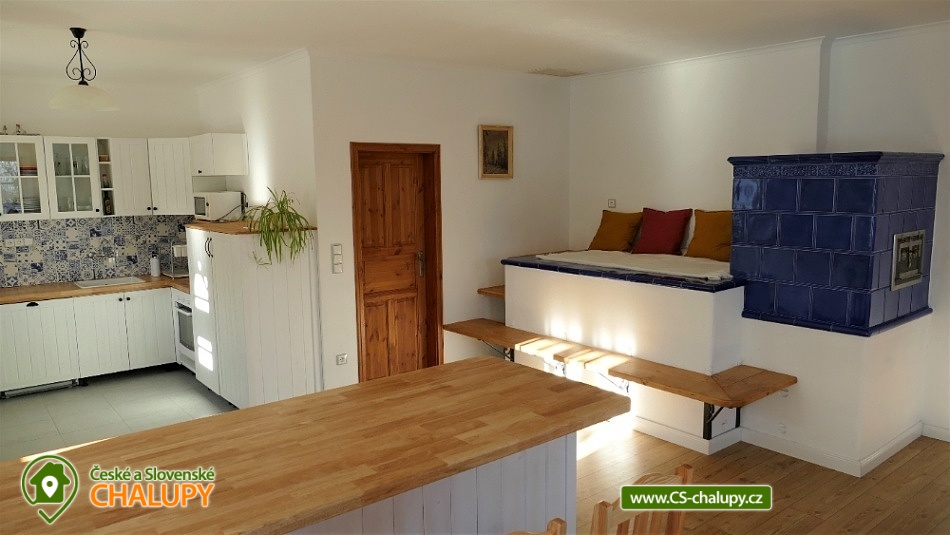 Chalupa s bazénem se nachází nedaleko vyhlášeného střediska Dolní Morava v klidné oblasti obce Zlatý Potok. Poloha v malebné krajině na rozhraní Orlických hor a Jeseníků v oblasti Králického Sněžníku. POPIS chalupy: Přízemí - prostorná kuchyň s velkou jídelnou, barovým pultem, kachlovými kamny s pecí a troubou, dále hrací koutek pro nejmenší děti. Vedle kuchyně je komora s regály na potraviny. Vybavení kuchyně: myčka, digestoř, elektrická trouba, dva vestavěné elektrické sporáky, dvě ledničky s mrazákem, mikrovlnná trouba, veškeré nádobí, hrnce, příbory. Společenská místnost s TV, prostorným gaučem, stolním fotbálkem a šipkami. V přízemí dále pokoj pro bezbariérové ubytování (2x jednolůžko). Koupelna s WC, vanou a bezbariérovým sprchovým koutem a pračkou se sušičkou. Patro - Pokoj č.1: tři lůžka, komoda, skříň. Pokoj č.2: čtyři lůžka, komoda, skříň. Pokoj č.3: pět lůžek, komoda, skříň. Pokoj č.4: pět lůžek, komoda, skříň. V patře dále 2x koupelna se sprchovým koutem a umyvadlem, 2x samostatné WC s umyvadlem a společná část s knihovnou a prostorem pro hraní stolních her. Vytápění objektu: podlahové topení s elektrokotlem, kamna s pecí na pevná paliva (dřevo) - přikládání z chodby. Zádveří, které slouží jako šatna. Další místnost pak jako kočárkárna/lyžárna. Kola je možné nechávat v garáži hned vedle chalupy. Příjezd je po obecní komunikaci a parkování je připraveno pro 4 auta. Přímo před chalupou je terasa s posezením a grilem. Dále pak je k dispozici trampolína, hrací domek, bazén, badmintonové hřiště. Za oplocenou částí se nachází ovocný sad a potůček s rybníčkem. V okolí doporučujeme: Resort Dolní Morava - nabízí celoročně množství sportovních, zážitkových a adrenalinových aktivit. Léto: Lanovka pro turisty, bikery i paraglidisty, Mamutí horská dráha, bobová dráha, lanové centrum, Disc Golf Park, Power Fan, Big swing, horolezecká věž. V zimě vyhlášené lyžařské středisko. Rozhledny - Val, Klepý, Stezka v oblacích, Křížová hora, Suchý vrch. Zřícenina Nový hrad Hanušovice, Pivovarské muzeum a pivovar Holba. Velké Losiny - zámek, muzeum papíru, termální aquapark. Těšíme se na Vás u nás.