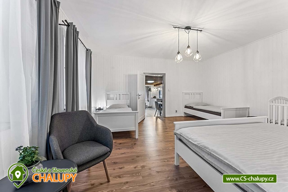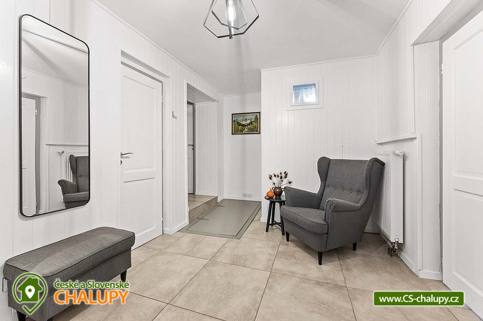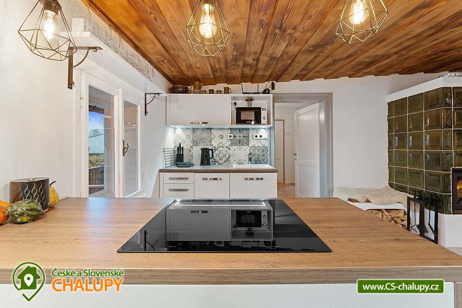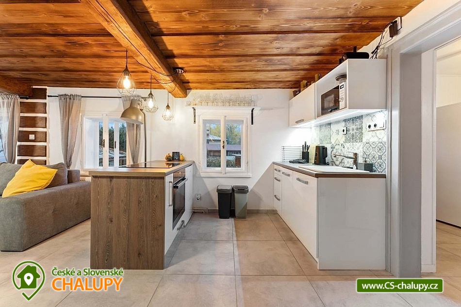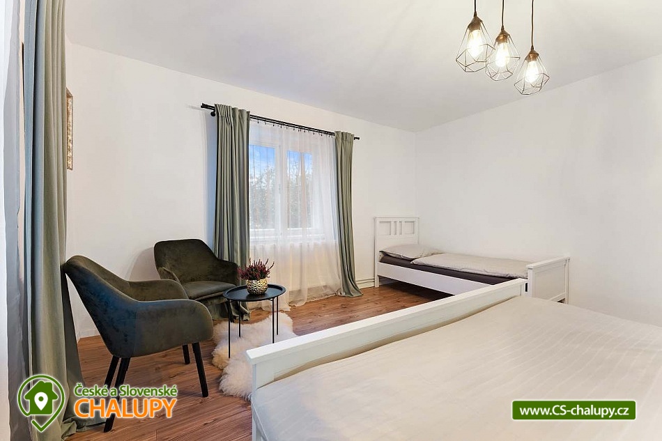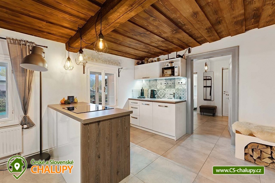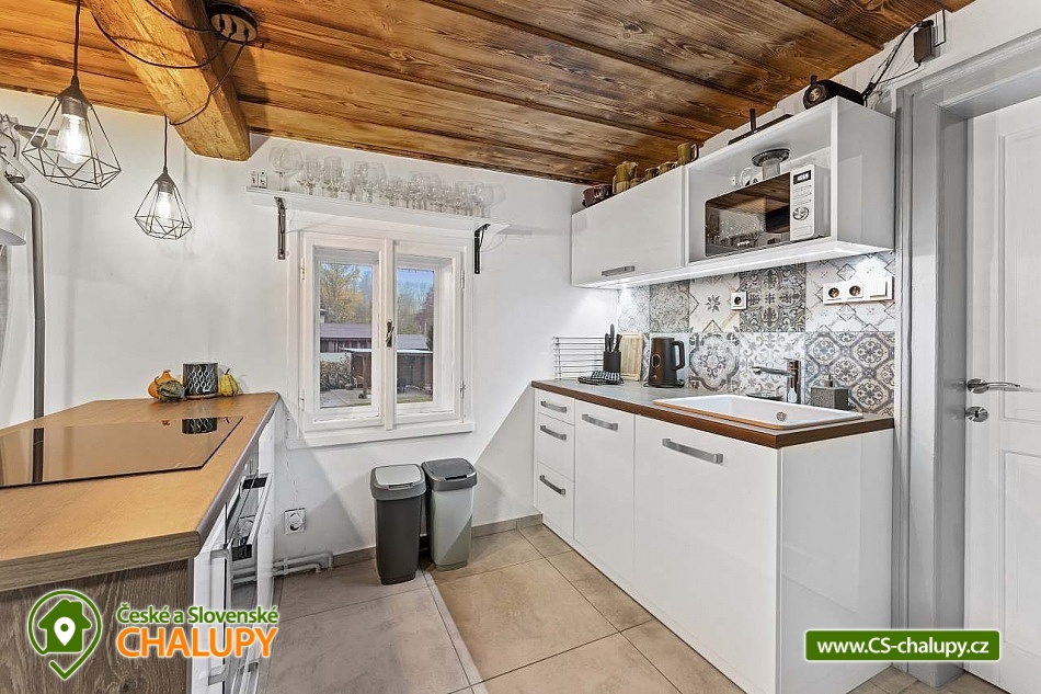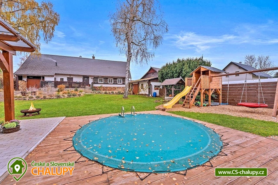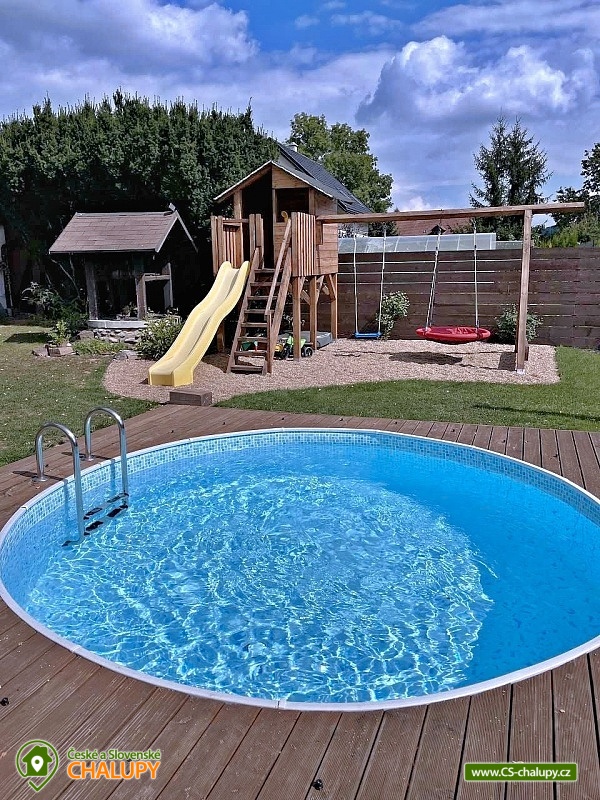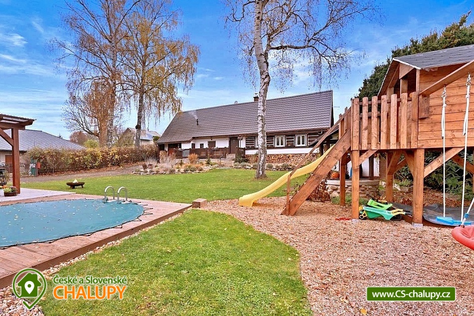 Poloroubená chalupa s venkovním bazénem v Krkonoších u osady Podhůří nedaleko města Vrchlabí, Jilemnice a Špindlerův Mlýn, obec Dolní Branná. Chalupa k pronájmu poskytuje ubytování pro až 9 osob ve 3 ložnicích. POPIS: První ložnice se nachází u vstupní chodby a disponuje dvoulůžkem, nabízí svým umístěním dostatek soukromí. Ve druhé ložnici se nachází dvojlůžko a samostatné jednolůžko, vchází se do ní ze světnice. Třetí ložnice je vybavena dvojlůžkem a dvěma samostatnými jednolůžky, vchod je také ze světnice. Prostorná kuchyňka je vybavená standardními spotřebiči jako jsou: mikrovlnná trouba, rychlovarná konvice, elektrická trouba s indukční deskou, myčka na nádobí, lednice s mrazákem a tyčový mixer. Sociální zařízení: Chalupa má dvě samostatné koupelny. První se sprchovým koutem a WC, druhá koupelna s pračkou a sprchovým koutem. Druhé WC se nachází ve vstupní chodbě. Teplá voda zajištěna plynovým kotlem. Vysoušeč vlasů k dispozici. Dětská vanička k zapůjčení. Další vybavení: Televizor s předplaceným Skylinkem, Aroma difuzér, vysoušeč vlasů, vysavač, sušák na prádlo. Wi - fi připojení k internetu v chalupě i na zahradě. Vytápění: Vytápění je zajištěno plynovým kotlem a kachlovými kamny, které vytvoří kouzelnou atmosféru. Naštípané dřevo je součástí ceny. Objekt je oplocen a nabízí prostornou udržovanou zahradu s možností grilování. Zastřešenou pergolu s posezením, venkovní bazén a solární sprchu. Pro Vaše děti je připravené dětské hřiště se skluzavkou, pískovištěm, houpačkami a trampolínou. Chalupa je vhodná pro rodiny s dětmi, vícegenerační rodiny, skupinu přátel nebo sportovní nadšence, kteří si díky její poloze přijdou na své. Maximální kapacita je 9 lidí (plnohodnotná postel) + možnost zapůjčeni 2 cestovních postýlek pro miminka. Parkování v oplocené zahradě pro 3 osobní automobily. V okolí - Letní aktivity: Turistika, cyklostezky, adrenalinové sporty (paraglaiding, koloběžky, lanová dráha, paintball, a mnoho dalšího). Přírodní koupaliště ve Vrchlabí, tenis, golf. Výlety: Bobová dráha Špindlerův Mlýn 18 km, Safari Park Dvůr Králové nad Labem Zoo 30 km, Stezka korunami stromů - Janské Lázně 20 km, Rozhledna Žalý - Benecko 14 km. Zimní aktivity: Přímo v Dolní Branné jsou udržované běžecké tratě. Ve Vrchlabí vzdálené 5 km je běžecký areál s umělým zasněžováním. V Jilemnici je Biatlonový areál. Lyžování: SKIAREÁL VRCHLABÍ Kněžický vrch - Kebrlák 5 km, Skiareál Herlíkovice 8 km a Špindlerův Mlýn 18 km. Těšíme se na Vás u nás.