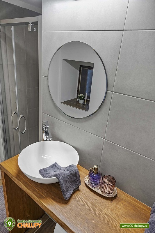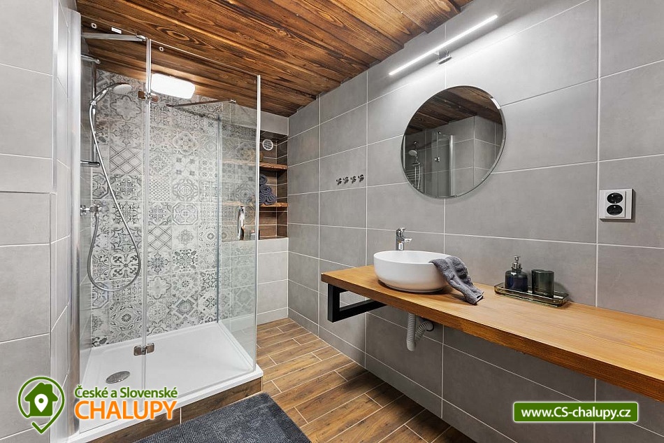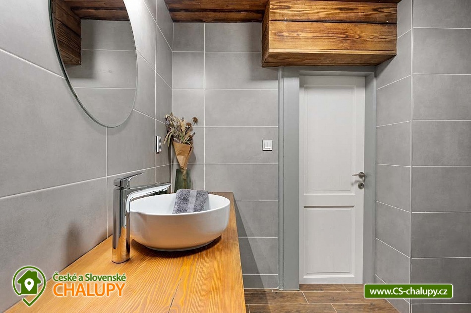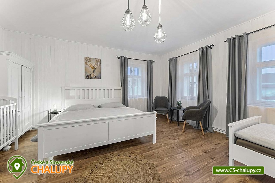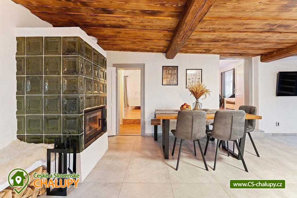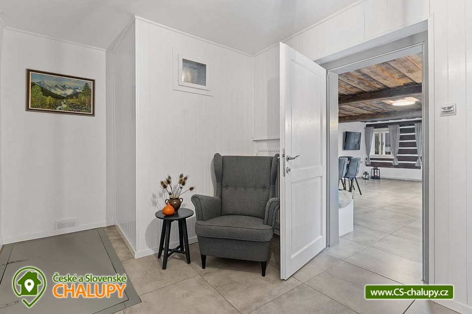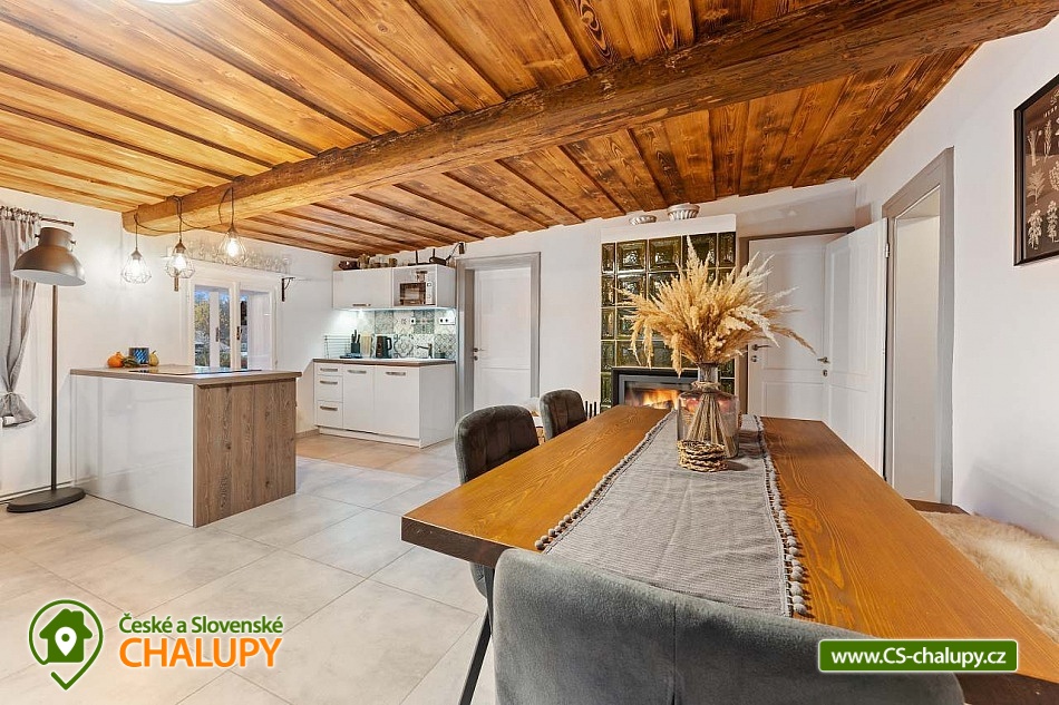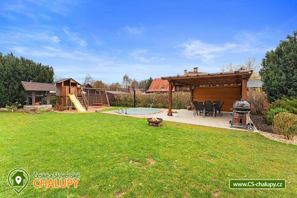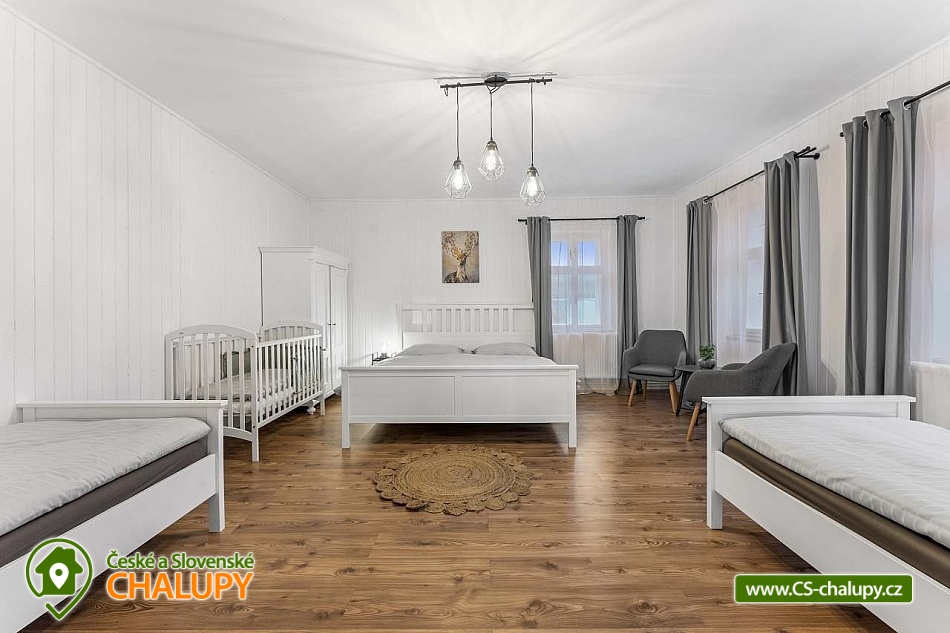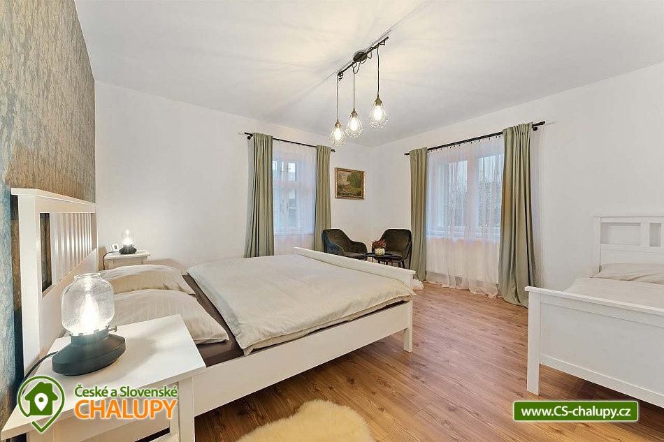 Poloroubená chalupa s venkovním bazénem v Krkonoších u osady Podhůří nedaleko města Vrchlabí, Jilemnice a Špindlerův Mlýn, obec Dolní Branná. Chalupa k pronájmu poskytuje ubytování pro až 9 osob ve 3 ložnicích. POPIS: První ložnice se nachází u vstupní chodby a disponuje dvoulůžkem, nabízí svým umístěním dostatek soukromí. Ve druhé ložnici se nachází dvojlůžko a samostatné jednolůžko, vchází se do ní ze světnice. Třetí ložnice je vybavena dvojlůžkem a dvěma samostatnými jednolůžky, vchod je také ze světnice. Prostorná kuchyňka je vybavená standardními spotřebiči jako jsou: mikrovlnná trouba, rychlovarná konvice, elektrická trouba s indukční deskou, myčka na nádobí, lednice s mrazákem a tyčový mixer. Sociální zařízení: Chalupa má dvě samostatné koupelny. První se sprchovým koutem a WC, druhá koupelna s pračkou a sprchovým koutem. Druhé WC se nachází ve vstupní chodbě. Teplá voda zajištěna plynovým kotlem. Vysoušeč vlasů k dispozici. Dětská vanička k zapůjčení. Další vybavení: Televizor s předplaceným Skylinkem, Aroma difuzér, vysoušeč vlasů, vysavač, sušák na prádlo. Wi - fi připojení k internetu v chalupě i na zahradě. Vytápění: Vytápění je zajištěno plynovým kotlem a kachlovými kamny, které vytvoří kouzelnou atmosféru. Naštípané dřevo je součástí ceny. Objekt je oplocen a nabízí prostornou udržovanou zahradu s možností grilování. Zastřešenou pergolu s posezením, venkovní bazén a solární sprchu. Pro Vaše děti je připravené dětské hřiště se skluzavkou, pískovištěm, houpačkami a trampolínou. Chalupa je vhodná pro rodiny s dětmi, vícegenerační rodiny, skupinu přátel nebo sportovní nadšence, kteří si díky její poloze přijdou na své. Maximální kapacita je 9 lidí (plnohodnotná postel) + možnost zapůjčeni 2 cestovních postýlek pro miminka. Parkování v oplocené zahradě pro 3 osobní automobily. V okolí - Letní aktivity: Turistika, cyklostezky, adrenalinové sporty (paraglaiding, koloběžky, lanová dráha, paintball, a mnoho dalšího). Přírodní koupaliště ve Vrchlabí, tenis, golf. Výlety: Bobová dráha Špindlerův Mlýn 18 km, Safari Park Dvůr Králové nad Labem Zoo 30 km, Stezka korunami stromů - Janské Lázně 20 km, Rozhledna Žalý - Benecko 14 km. Zimní aktivity: Přímo v Dolní Branné jsou udržované běžecké tratě. Ve Vrchlabí vzdálené 5 km je běžecký areál s umělým zasněžováním. V Jilemnici je Biatlonový areál. Lyžování: SKIAREÁL VRCHLABÍ Kněžický vrch - Kebrlák 5 km, Skiareál Herlíkovice 8 km a Špindlerův Mlýn 18 km. Těšíme se na Vás u nás.