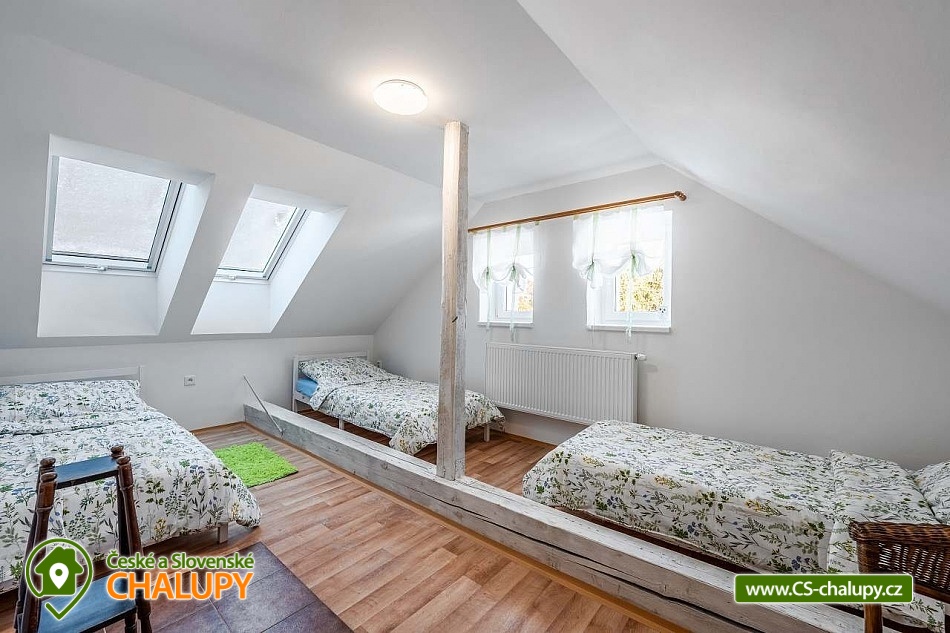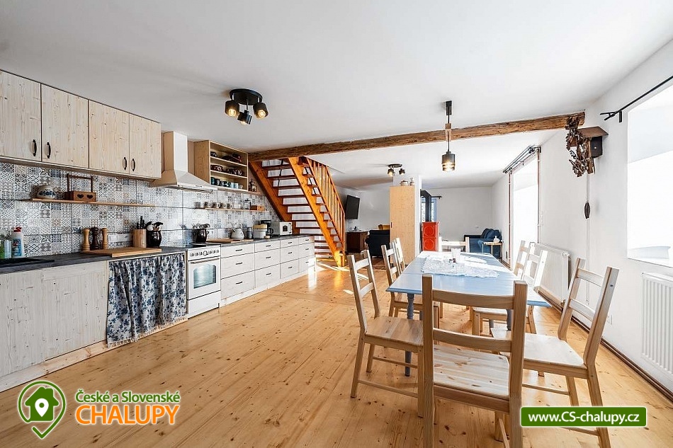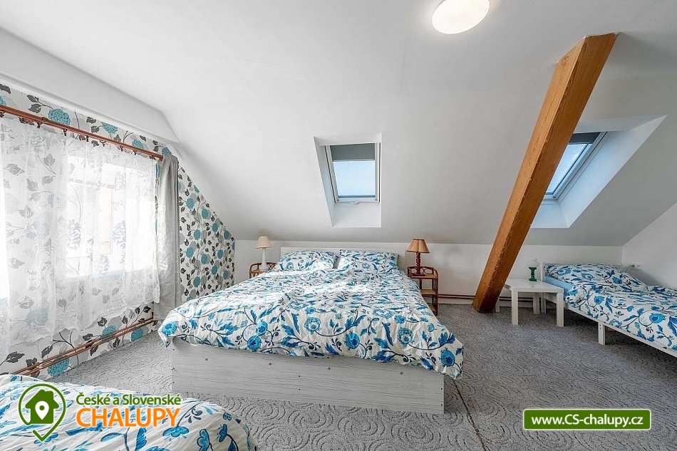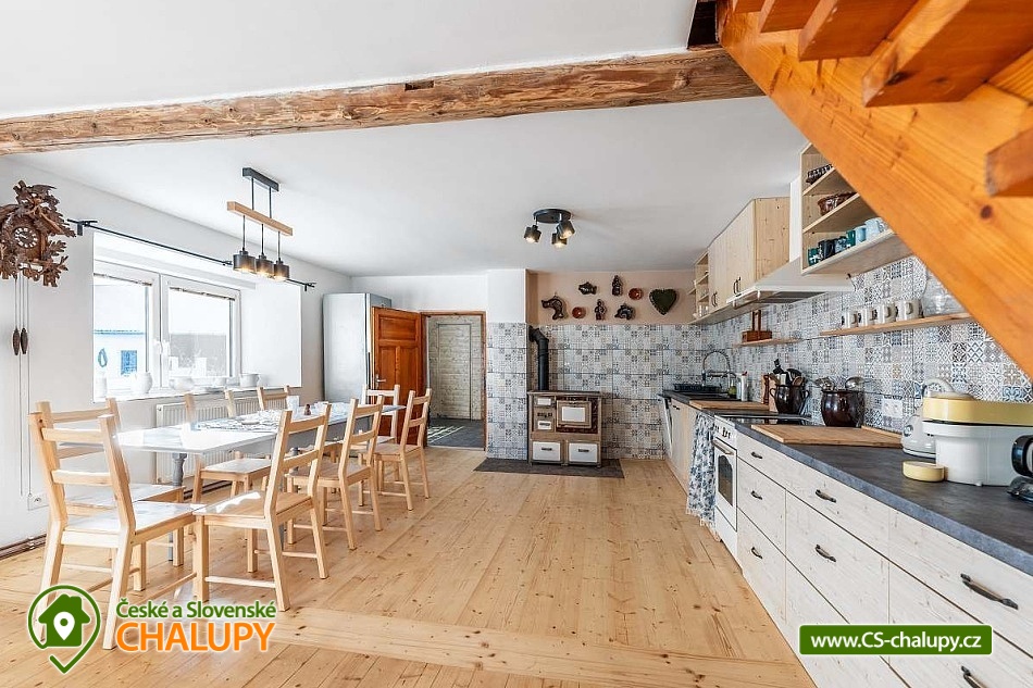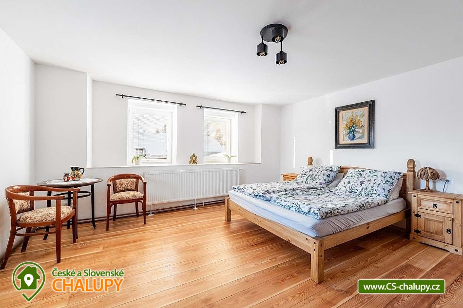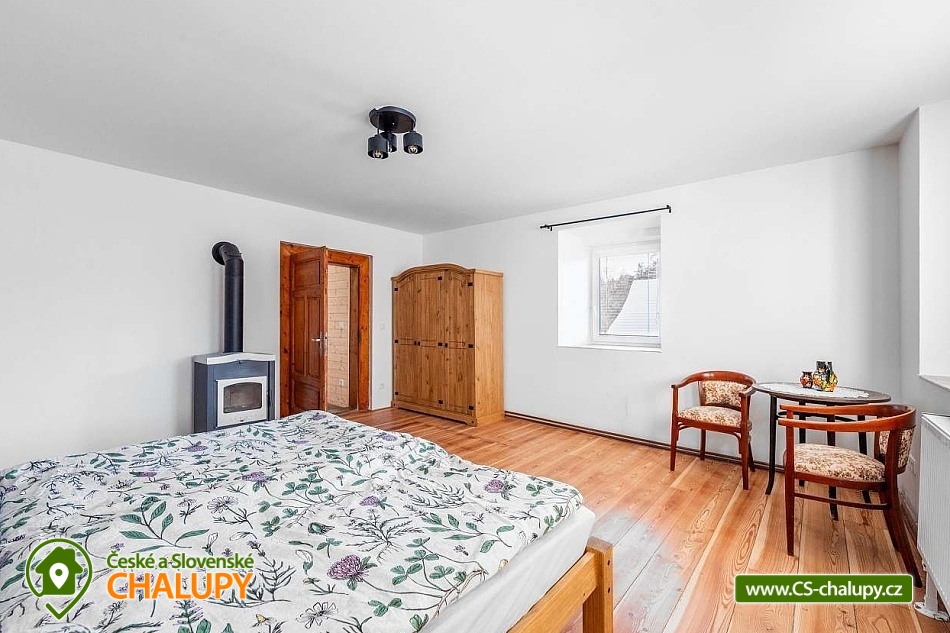 A rural cottage with a swimming pool near a forest and a pond is located near the town of Kutná Hora in the beautiful countryside of Posázaví. An ideal stay for lovers of peace and relaxation. The cottage can accommodate 11 people in 3 bedrooms. There is a double bedroom with a fireplace (2x double bed) on the ground floor and a four-bed bedroom (1x double bed and 2x single bed) and a five-bed bedroom (2x double bed and 1x single bed) on the floor. On the ground floor, you can spend time together in a spacious common room with a large and fully equipped kitchen (fridge with freezer, electric stove with oven, microwave, electric kettle, coffee bean grinder, drip coffee maker, Nespresso Vertuo capsule coffee maker - 5 capsules available, hand blender, rice cooker, juicer, dishwasher, glasses, mugs, tableware, cooking utensils, cooking utensils and cutlery). In the kitchen, you can also cook something good on the old tiled stove. The room also includes a dining table for 8 people and a living area with a fireplace, TV and sofa. Upstairs there is another living room with a fireplace, seating, TV, record player with a few LP records and radio. The sanitary facilities include two bathrooms, one on the ground floor and the other on the first floor. The first bathroom includes a bathtub, toilet, heating ladder, washing machine and cosmetics. The second has a shower, toilet and cosmetics. An ironing board, iron and clothes dryer are also available for rent. Heating is provided by a heat pump and a fireplace stove, which are in the lower bedroom and in both living rooms. WIFI internet connection is provided throughout the property. Outside on the fenced plot there is a covered pergola - chest of drawers, refrigerator, garden furniture and a grill. A spacious grassy garden (2,500 m2) is available for outdoor activities. In warm weather, you can refresh yourself in the outdoor pool with a diameter of 5.5 m, with a depth of 1.5 m and 2/3 of it sunk into the ground. There is also a fireplace. Parking is available directly at the property. In the vicinity of the cottage, there is the possibility of hiking, cycling, swimming, skiing, cross-country skiing, fishing and mushroom picking. There is also a riding school and tennis courts nearby. Swimming options include: Vidlák Černíny Pond, Zbraslavice Starý rybník, Lake Katlov, Uhlířské Janovice Swimming Pool, Kutná Hora - Velký rybník, Aquapark Kutná Hora, etc. Nearby ski resorts are available: Kadlečák and Melechov. Trips in the surrounding area include the historic town of Kutná Hora (UNESCO), the Sion Ruins - Chlístovice, Zruč nad Sázavou Castle, Český Šternberk Castle, Malešov and Kácov Brewery, Rataje nad Sázavou Castle, the National Agricultural Museum Čáslav or the natural landscape by the Sázava River. We look forward to seeing you there.