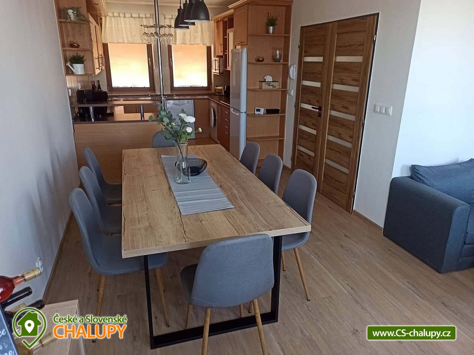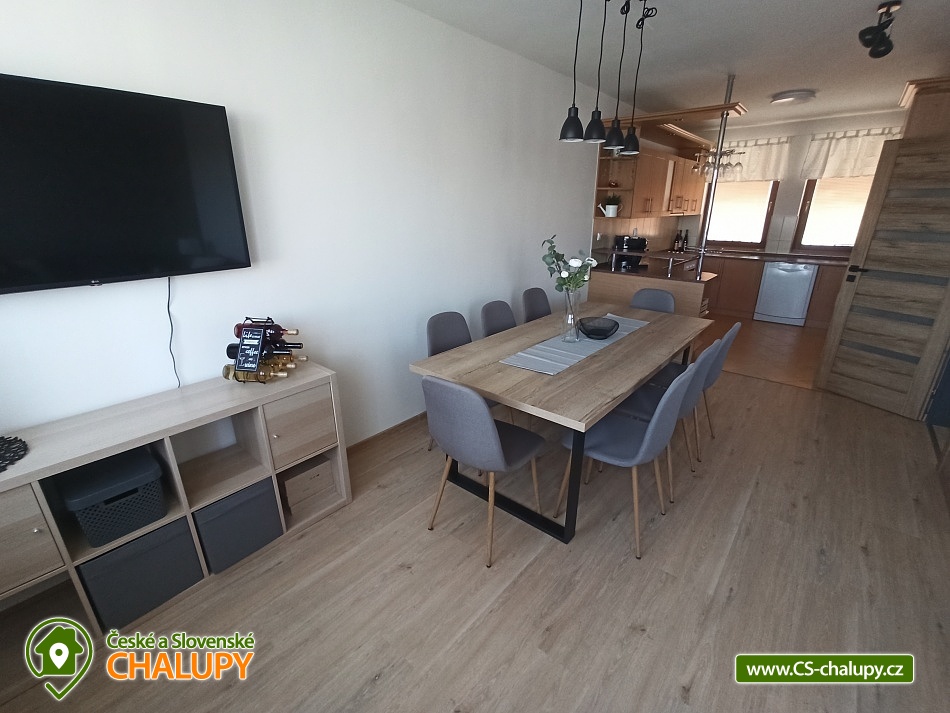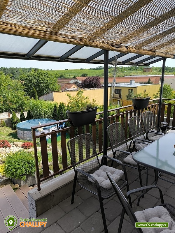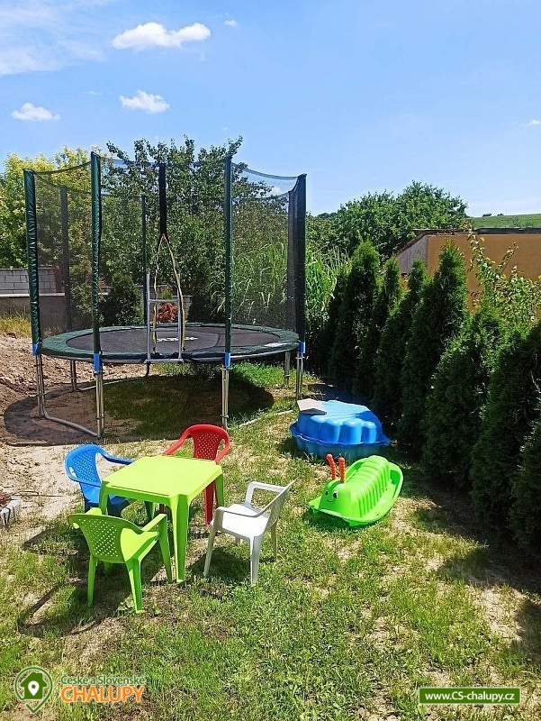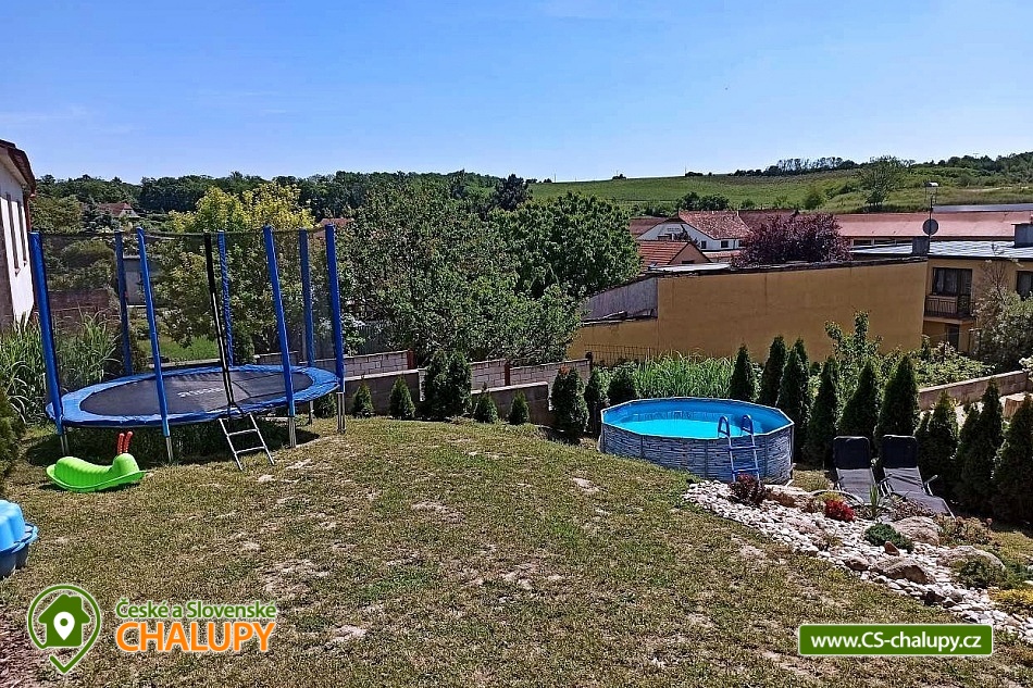 Chalupa s bazénem v Lednicko-valtickém areálu na jižní Moravě. Chalupa má kapacitu až 11 osob ve 3 ložnicích. Objekt je vhodný pro partu přátel, rodiny s dětmi nebo nadšené cyklisty. Součástí chalupy je uzavřená zahrada, která nabízí výhled do okolí, vyžití pro děti a relaxaci pro dospělé. Je zde zastřené posezení s grilem, bazén v letních měsících, trampolína, pískoviště, houpačka a vybavení pro děti a lehátka pro relaxaci dospělých. V patře domu jsou tři ložnice a koupelna se záchodem. Ložnice jsou dvě dvoulůžkové a jedna čtyřlůžková. Všechny postele mají kvalitní matrace. V případě potřeby máme k dispozici dvě dětské postýlky. V přízemí domu je plně vybavená kuchyně s velkým jídelním stolem a obývacím pokojem s TV, kde jsou dvě rozkládací pohovky na další přespání. Kuchyně je plně vybavena nádobím i spotřebiči. Je zde lednice s mrazákem, myčka, pračka, el. trouba s plynovým sporákem, mikrovlnky, rychlovarná konvice, topinkovač a nechybí kávovar naplněný zrnkovou kávou. V tomto patře je také samostatné WC a vchod do domu. Z obýváku je pak vchod na zastřešenou terasu na zahradě. Ve sklepní části domu je posezení s kulečníkem a nechybí vinotéka. I zde je samostatné WC a koupelna. Ze sklepa se díky tomu, že dům je ve svahu, také dostanete na zahradu, kde je posezení s plynovým grilem. Součástí domu je garáž na kola a před domem 4 parkovací místa. V centru města je zámek s rozlehlou zahradou. Nad Valticemi se tyčí krásná Kolonáda Reisna a v okolních lesích nespočet památek. Celý lednicko-valtický areál je protkaný cyklostezkami. Najdete tu krásné stavby jako je Chrám Tři Gracii, Rendezvous, zámeček Belveder, Apollonuv Chrám a mnoho dalších. Nedaleká Lednice Vám nabídne jeden z nejkrásnějších zámku v republice, spolu se zahradou. Tu můžete projít jak pěšky, tak na koních nebo využít místní lodní dopravu. Ta Vás zaveze jak k Minaretu tak vzdálenějšímu Janohradu. Pro děti se nad Valticemi line Stezka Bosou nohou nebo lanový park v nedalekém lese.