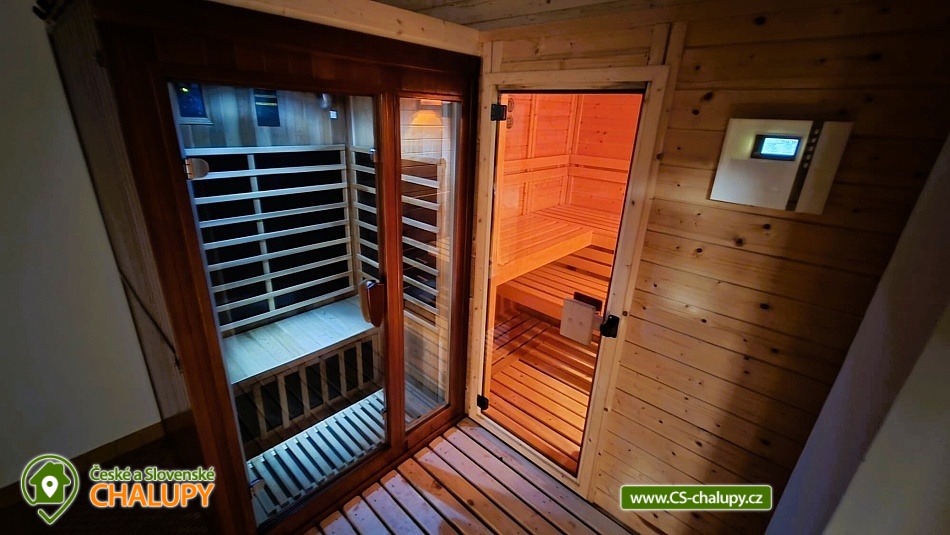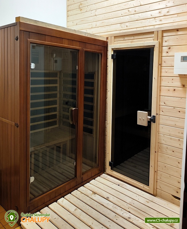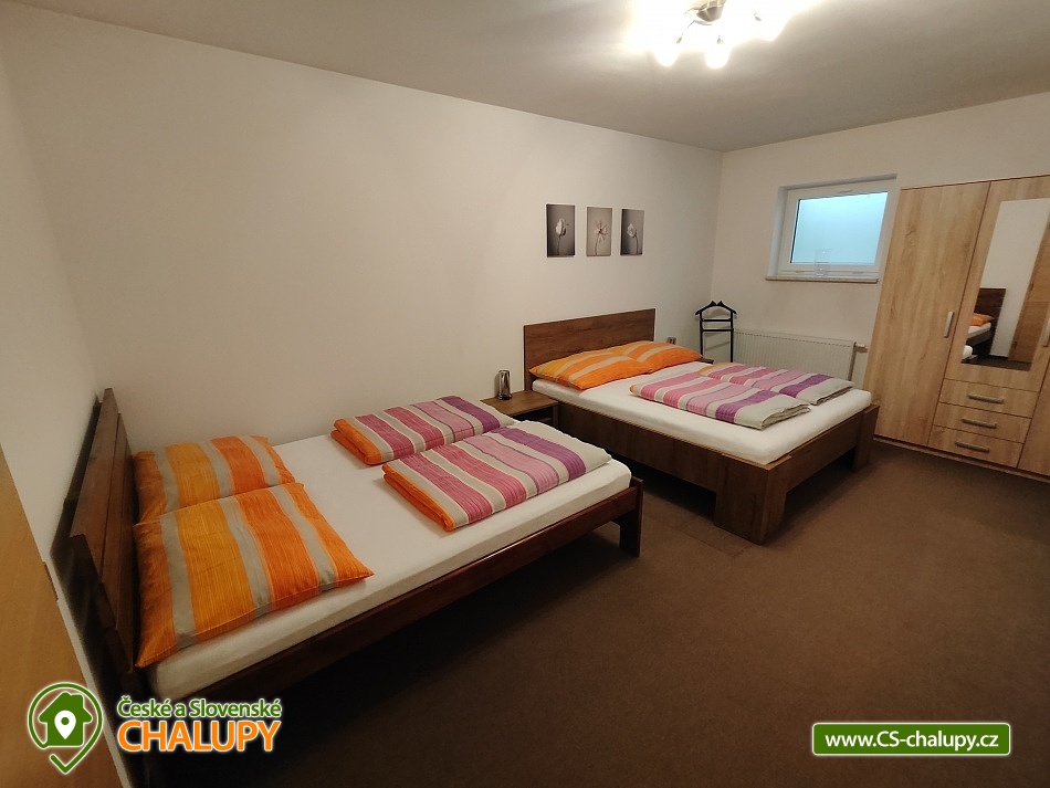 The Aramis apartment cottage is located on the edge of the picturesque village of Zavlekov, in the very heart of the Šumava Mountains. You can look forward to a large terrace with a large sunken pool, a covered outdoor seating area or a fireplace with a grill and a smokehouse. The property offers accommodation for 11 people in 2 separate apartments, ideal for families with friends. The apartments are part of a family house inhabited by the owner of the property, but have completely separate entrances and their own land. The GREEN apartment (max. 5 people) is equipped with a 3-bed bedroom (1x double bed + 1x separate single bed) and a sofa bed in the living room for 2 people. A cot is available for rent. This apartment can be expanded (in winter) for a fee by a Finnish sauna with a cooling pool, shower, relaxation room and separate toilet. PINK apartment (max. 6 people) is equipped with a 4-bed bedroom (1 double bed + sofa bed for 2 people) and a sofa bed in the living room for 2 people. A cot is available for rent. Each apartment is also equipped with a living room with LCD-TV, a comfortable sofa bed and a fully equipped kitchenette (ceramic hob, microwave, fridge, freezer, electric kettle, toaster, dishwasher and dishes) with a dining table and seating for up to 6 people. The sanitary facilities in each apartment include a bathroom with a shower, a sink and a separate toilet. The entire building is heated by central heating and each apartment has its own electric wall heater. Free Wi-Fi internet access is available throughout the building. The cottage is surrounded by a fenced garden with a grassy area. For relaxation, there is a shared covered, illuminated terrace, equipped (separately for each apartment) with its own outdoor seating area with 6 chairs. Darts and table tennis are available. There is also an uncovered, large terrace with a sunken pool with colored lighting (depth 1.25 m, size 7.5 x 4 m), surrounded by smooth interlocking paving stones, with the possibility of renting sun loungers (10 pieces in total). In the corner of the terrace there is a large concrete fireplace with a grill and a smokehouse (wood for a fee). The little ones will certainly appreciate the trampoline. Parking is possible directly in the building area on a covered outdoor parking space for 2 cars. In the vicinity of the cottage there is the possibility of hiking, cycling, swimming, fishing, mushroom picking, skiing and cross-country skiing. Swimming options include: Valcha pond, Hnačov pond, Kolinec swimming pool, Santos island or the swimming pool in Sušice. In winter, nearby ski resorts are an advantage, for example: Ski Resort Špičák, Ski Resort Železná Ruda or Ski Resort Zadov. For cross-country skiers, there are groomed trails around the villages of Keple or Prášily. The following attractions are worth visiting in the area: the Valcha recreation center, the ruins of Rabí castle, the Švihov water castle, the Klatovy baroque church, the Klenová chateau, the Velhartice castle, the royal town of Sušice or the Kašperk castle. We look forward to seeing you there.