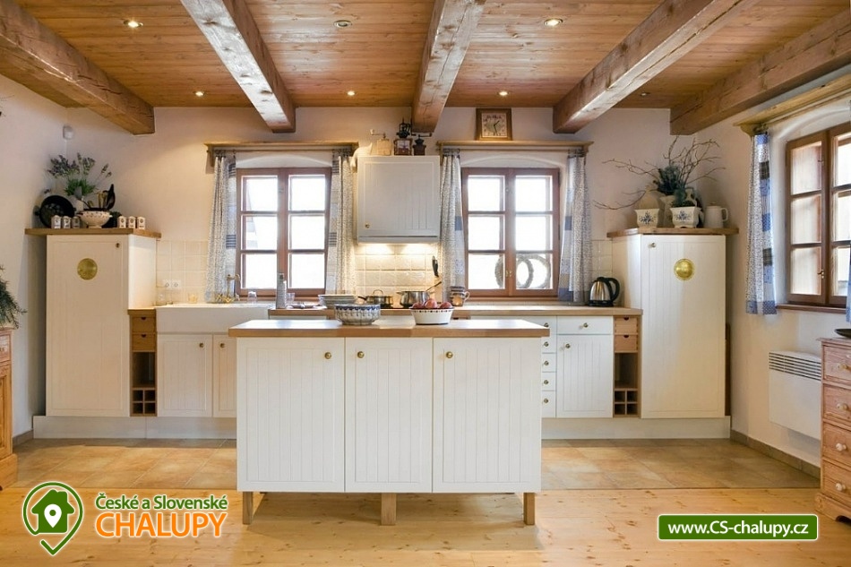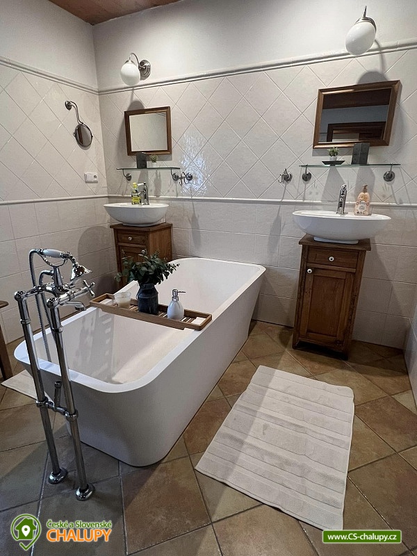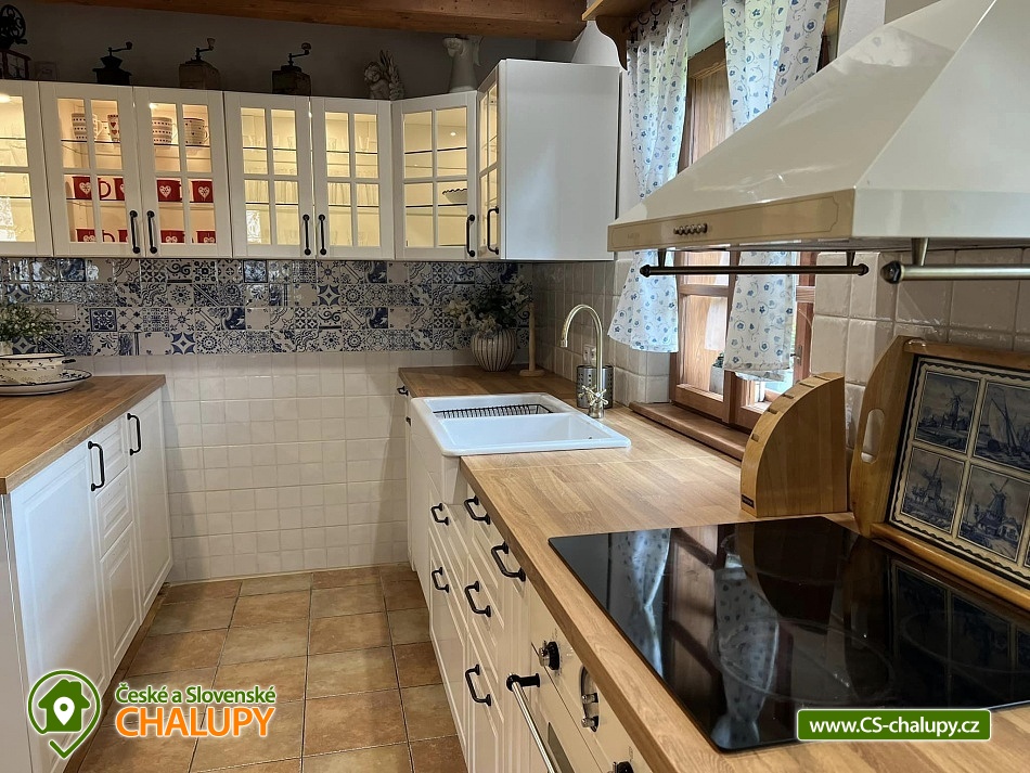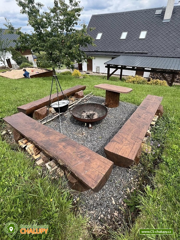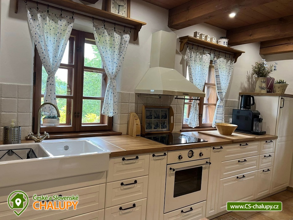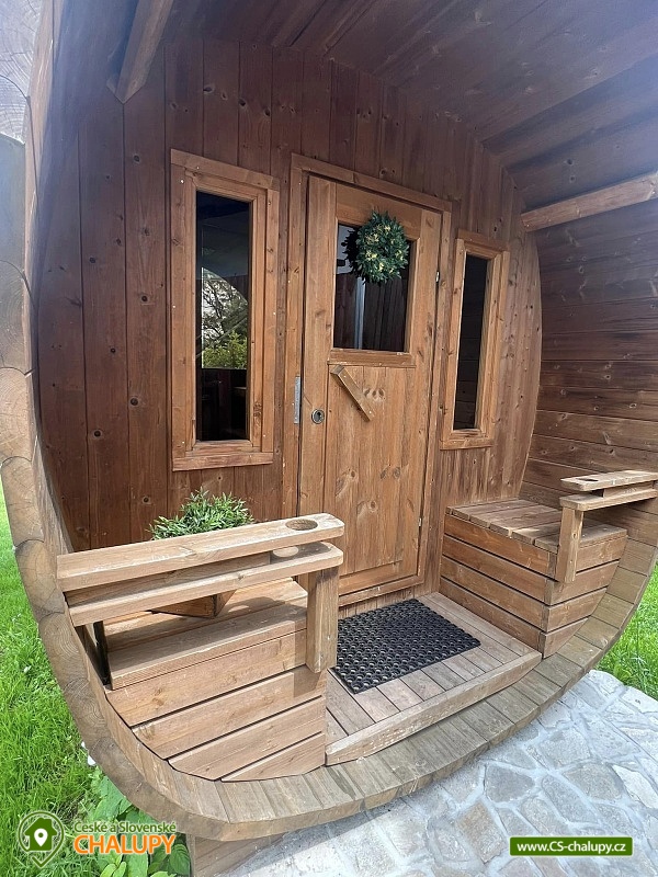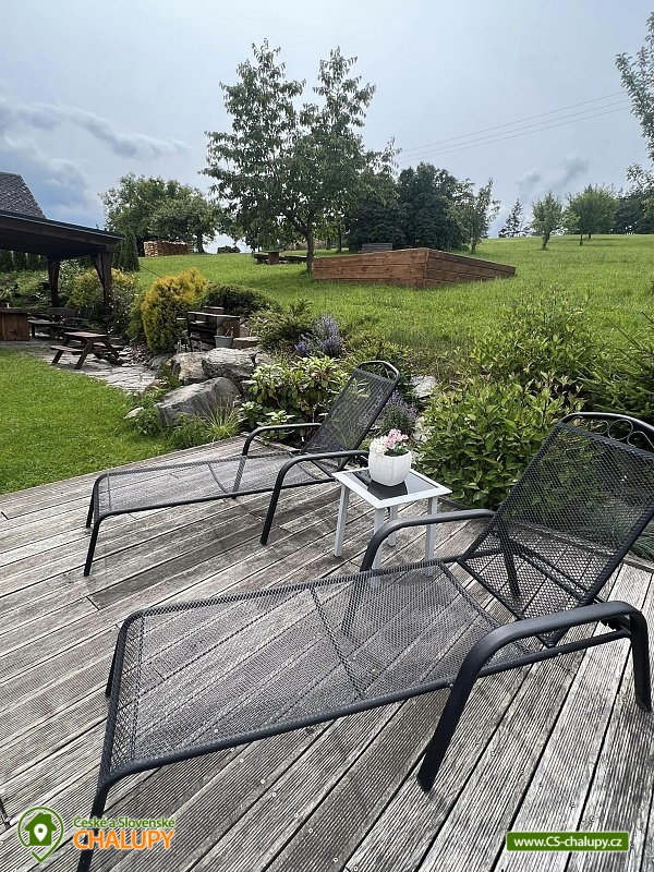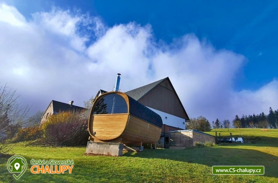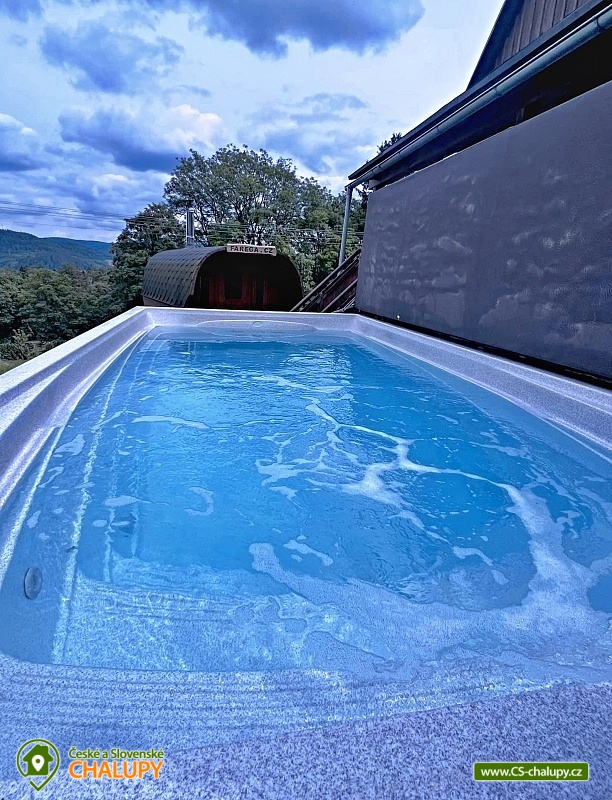 Wellness Chalupa s bazénem se nachází v Orlickém předhůří v obci Studené nedaleko historických měst Jablonného nad Orlicí a Letohrad a pouze 4 km od Pastvinské přehrady. Chaloupka je umístěna na mírném svahu s úžasným výhledem na okolní horskou krajinu a obklopena vonícími loukami a ovocnými stromy, a přitom nedaleko lesa, který v letních měsících nabízí příjemný stín, modré borůvky a výběr hub. Okolní krajina přímo vybízí k pěší turistice, Nordic Walking nebo cykloturistice různých obtížností a v zimě k běžkování a lyžování. Těšit se můžete na dvě slunečné terasy, celoročně vyhřívaný bazén Swimm spa s protiproudem a masážními tryskami a na finskou saunu v sudu s překrásným výhledem na Orlické hory a Jeseníky. Chalupa je vybavená stylovými doplňky a masivním nábytkem, nabízí klidný a pohodlný pobyt pro 10 osob ve 3 romantických ložnicích nesoucích název dle stylu vybavení. „Žlutá“ ložnice, umístěná v přízemí, má k dispozici 2 krásné původní postele z měšťanské rodiny. Ložnice nabízí výhled na terasu a je vybavena běleným dřevěným nábytkem. „Modrá“ ložnice, umístěná v 1. patře, disponuje 1 dvoulůžkem a 2 samostatnými lůžky. Ložnice je vybavena útulným nábytkem v teplém tónu modřínového dřeva a doplněna stylovým zařízením. V 1. patře se nachází také třetí, velmi prostorná „Romantická“ ložnice vybavená dvoulůžkem, dvěma jednolůžky a masivním nábytkem. Součástí ložnice je také rozkládací sedací souprava (po domluvě zde možné 2 přistýlky). V ložnicích jsou pro plnohodnotný odpočinek k dispozici latexové matrace s kokosovým vláknem, přikrývky z pravé ovčí vlny a příjemné povlečení z jemné bavlny. Zařízení chalupy a ložnic je komfortně přizpůsobeno dětem. K dispozici jsou dětské židličky (až 3 ks), dřevěná dětská postýlka přímo v horní ložnici, dále 2 cestovní postýlky, dětská kuchyňka + dětský stoleček s židličkami, hry a malý dětský koutek. Společné chvíle lze trávit v přízemní světnici otečené na jih, takže téměř celý den prozářené sluncem. Ve světnici s krbovými kamny je k dispozici jídelní stůl s posezením pro 8 osob, k příjemnému stolování je sladěné stolní vybavení a textilie. Součástí světnice je také plnohodnotně vybavená kuchyně s troubou, varnou deskou, mikrovlnou troubou, kávovarem na zrnkovou kávu a dalšími potřebnými předměty (ponorný mixér, šlehací mixér, toustovač a rychlovarná konvice). K dispozici jsou také dvě TV (ve světnici a v ložnici) a WIFI připojení na internet. Volný čas a chvíle klidu lze také trávit v knihovně, kde je připraveno množství titulů. Sociální zařízení v chaloupce zahrnuje dvě koupelny. První koupelna, umístěná v přízemí hned vedle společenské místnosti je velmi prostorná a útulná, dominuje ji volně stojící vana na nožkách a dvě stylová umyvadla. Hodnotné vybavení doplňuje bidet a WC. Dále potěší, že podlaha je v koupelně vytápěna. V druhé koupelně je k dispozici sprchový kout, WC, pračka a sušička. Pro děti jsou připraveny dětské nočníky, malá plastová vanička, přebalovací podložka a další pomůcky. Vytápění je řešeno elektrickými přímotopy s nastavitelnou teplotou. V koupelně je topení podlahové a sušení ručníků je zajištěno topným žebříkem. Ve světnici jsou také norská krbová kamna jotul – u nichž si lze užívat příjemné večery u hořícího krbu. Venku u chalupy můžete posedět pod krytou pergolou se zahradním nábytkem s masivního dřeva. Pro milovníky dobrého jídla je zde vestavěný velký nerezový gril. K dispozici je také ohniště. Relaxovat lze také na terase u bazénu s venkovními lehátky nebo v sauně. Malí návštěvnici se mohou těšit na prolézačky, pískoviště a trampolínu. Parkovat lze přímo u objektu. V zimě nutná výbava sněhovými řetězy. V okolí chalupy možnost turistiky, cykloturistiky, koupání, houbaření, rybaření, lyžování a běžkování. V blízkosti jsou také tenisové kurty, hřiště a golfové hřiště. Mezi možnosti koupání patří např.: přehrada Pastviny, koupaliště Jablonné nad Orlicí, koupaliště Letohrad, aquapark Žamberk, koupaliště Kunvald, koupaliště Písečná - Rubínek, bazén Mezilesí, koupaliště Králíky, koupaliště Rokytnice v Orlických horách, bazén Ústí nad Orlicí, atd. V zimním období blízká lyžařská střediska: Pastviny, Jablonné nad Orlicí - Malák, Mladkov - Petrovičky, České Petrovice a další. K okolním výletům láká skalní útvar Studenecké skály (zhruba 2 km od chalupy) s krásnými výhledy do údolí Celného, Těchonína a na hraniční hory a ideální pro horolezce, dále Jablonné nad Orlicí se svým malebným náměstím a dřevěnicemi nebo Letohrad, jemuž dominuje náměstí se zámeckými budovami a objekt Nového Dvora, také vojenská opevnění Hanička či Bouda nebo výšlap na Králický Sněžník. Těšíme se na Vás u nás.