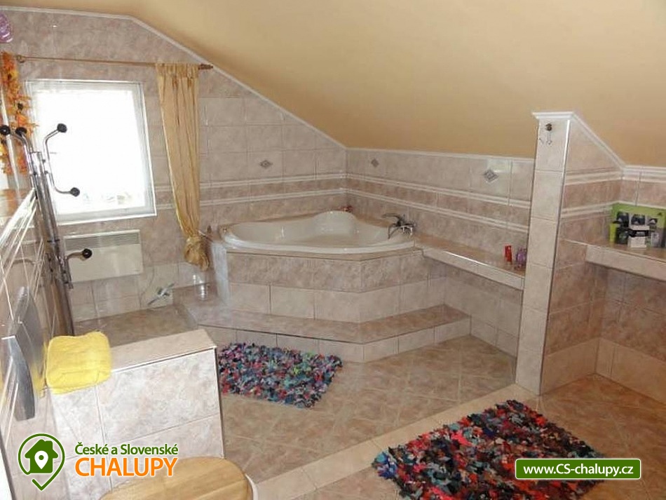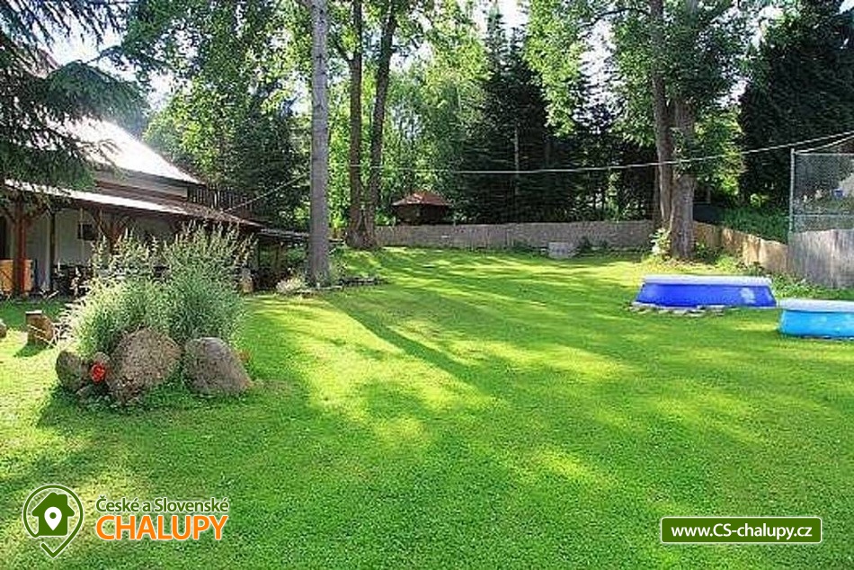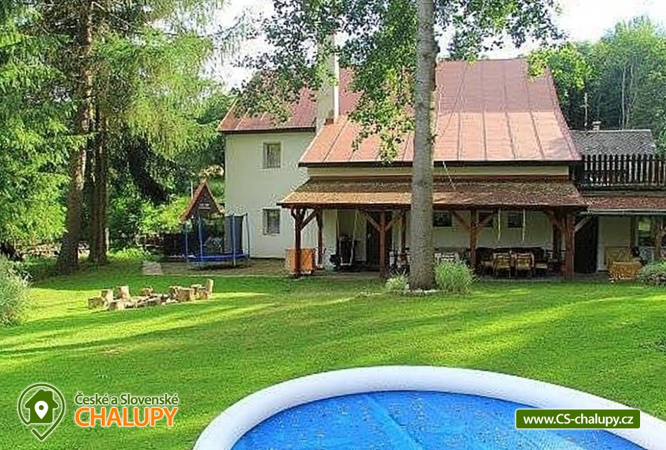 Pronájem chalupy s bazénem pod vrchem Plešivec - Krušné hory, chalupa v obci Merklín - část obce Lípa. Tichá lokalita a blízkost lesa Vám zaručí příjemně strávenou dovolenou v přírodě. Ubytování je vhodné pro rodiny s dětmi, skupiny přátel a příznivce turistiky. Chalupa k pronajmutí poskytuje ubytování pro až 21 osob v 8 ložnicích. Hned u vstupu Vás na přízemí přivítají dvě společenské místnosti. V každé se ohřejete u ohně praskajícího v krbu a prolenošíte si na pohodlných gaučových soupravách, například při sledování televize. K dispozici jsou i dvě plně vybavené kuchyně. Při přípravě jídla Vám v každé poslouží elektrický sporák, lednice, mikrovlnná trouba, rychlovarná konvice a myčka nádobí. Noční část se nachází na patře a sestává z osmi útulně zařízených 2-3 lůžkových ložnic. Mysleli jsme i na Vaše dětičky, na které již v dětském koutku čekají hezké hračky. Pro starší je připraven rotoped. Osvěžení si dopřejete v jedné z pěti koupelen s WC. V každé je sprchový kout, dvě z nich jsou navíc vybaveny i vanou. Posedět při sklenici vínka si můžete na venkovním posezení na kryté terase. Pečené masíčko si připravíte na ohništi nebo grilu. V horkých letních dnech naleznete osvěžení ve dvou venkovních bazénech. Děti se vyřádí na trampolíně nebo houpačkách. Rozsáhlý pozemek Vám nabízí prostor na hraní míčových her. Odreagovat se můžete i při hraní kulečníku. Novinkou pro naše hosty je infra-sauna, ve které příjemně zrelaxujete. Samozřejmostí je WiFi připojení na internet. Pro ještě větší komfort máme pro naše hosty k dispozici i pračku. Parkování je zajištěno na oploceném parkovišti. V okolí najdete turistické i sportovní vyžití v každém ročním období. Vydejte se na Naučnou stezku Bijadla a prohlédněte si expozici o přírodě, myslivosti i starých řemeslech. Součástí areálu jsou výběhy s jeleny, muflony a jinou lesní zvěří. Nádherné výhledy se Vám naskytnou z Rozhledny na Plešivci. Adrenalinové dobrodružství zažijete v Lanovém parku Plešivec.