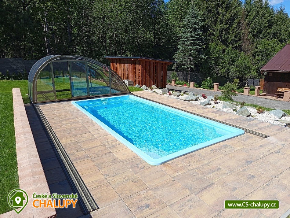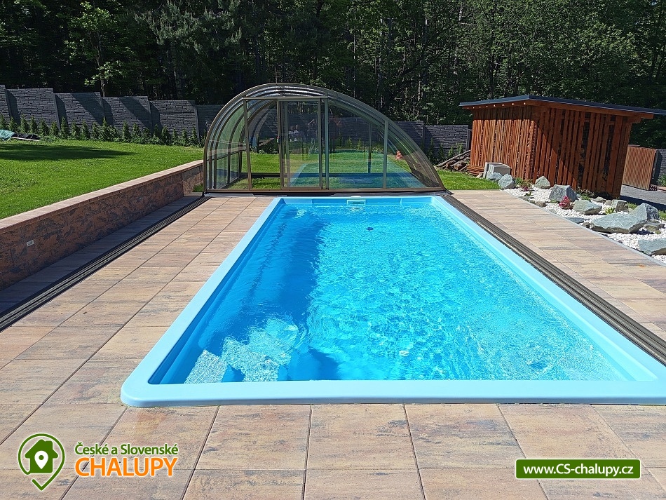 Chalupa s bazénem - polosamota u lesa Beskydy Beskydy Mountains