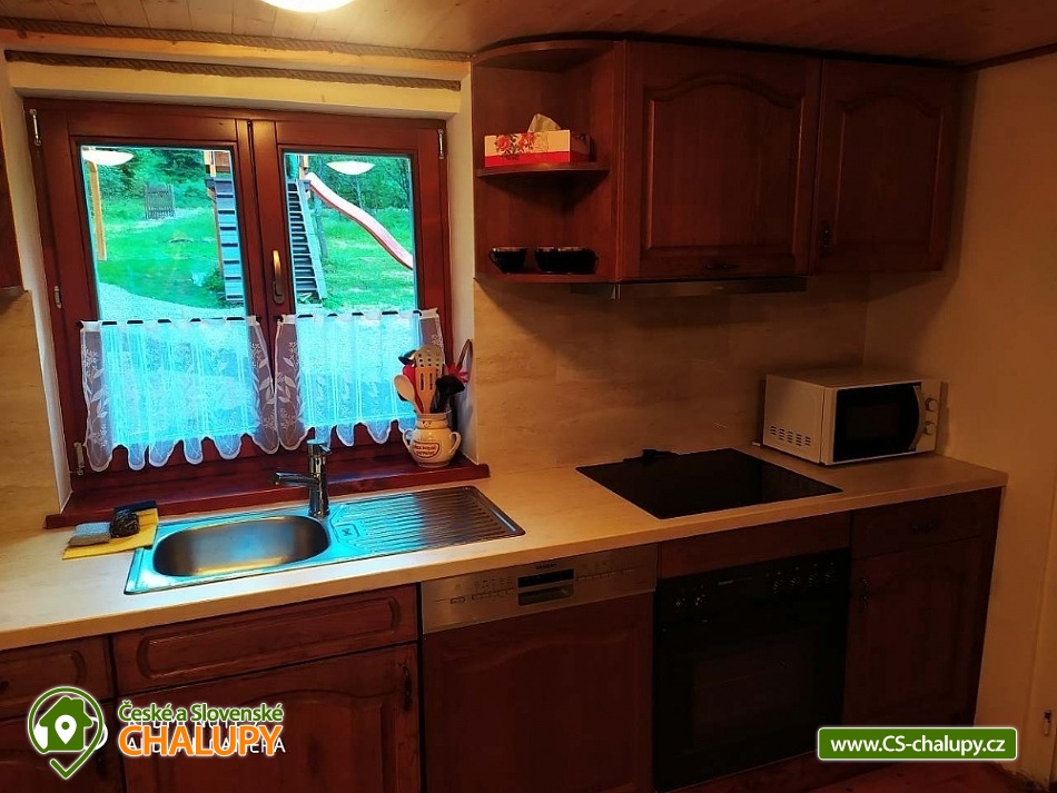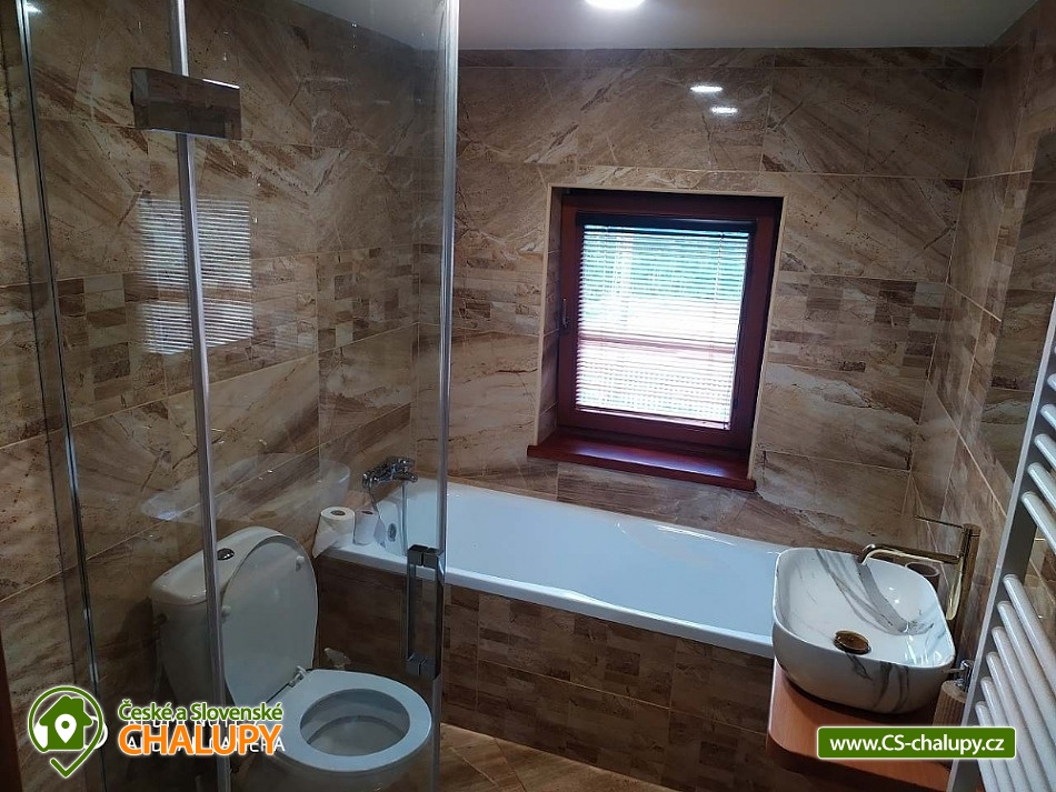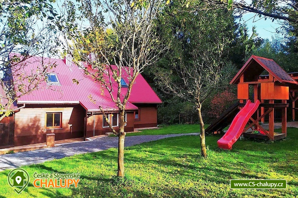Chalupa s bazénem a koupacím sudem - polosamota u lesa v obci Mosty u Jablunkova - Beskydy. Chalupa poskytuje ubytování pro až 12 osob ve 3 ložnicích. U chalupy k dispozici bazén 6,6x3,2m. Bazén má slanou vodou, s nočním osvětlením a protiproud pro náročné plavce. Bazén je vyhříván solárními panely. Pro lepší využití bazénu je zde podchozí bazénové zastřešení, které využijete pokud je nepříznivé počasí. V přízemí se nachází společenská místnost s krbovými kamny a dřevěnými stoly a křeslem je zde také Smart TV s úhlopříčkou 55" s 89 kanály a internetem. Dále se v přízemí nachází koupelna se sprchovým koutem, vanou a záchodem, u koupelny je místo pro pračku. Kuchyň je vybavená lednicí, elektrickou varnou deskou s troubou, myčkou na nádobí, mikrovlnou troubou, topinkovačem, toustovačem, varnou konvicí a nádobím. Z kuchyně máte výhled přímo na zahradu, kde si mohou hrát děti na pískovišti a domečku pro děti. V přízemí je také ložnice, kde je manželská postel, postel pro další osobu a v případě požadavku je zde postýlka pro vaše dítě. V podkroví jsou dvě ložnice. V každé ložnici jsou čtyři postele s nočními stolky včetně přikrývek a povlečení. V podkroví je také další WC. Chalupa se vytápí pomocí teplovodních krbových kamen. V chalupě jsou radiátory a v koupelně podlahové topení. Parkování je na soukromém pozemku u chlupy. Autem přijedete až k chalupě cca 3m před vchod, v zimním období je cesta udržována. U objektu je zahrada s ovocným sadem a s hřištěm pro vaše děti. Dům se nachází cca 1 km lesní cestou nedaleko cyklostezky z Dolní Lomné až do Horní Lomné. Tato cyklostezka je velmi využívána jak cyklisty tak i bruslaři a také pro procházky až třeba k pralesu Mionší. V obci Mosty u Jablunkova můžete jít na výlety po okolí nebo jít s dětmi na bobovou dráhu ve Ski areálu Mosty u Jablunkova, jsou zde další atrakce pro děti i dospělé. Toto místo je vzdálené jen cca 3 km od chalupy. V obci Mosty u Jablunkova se nachází také opevnění Velké Šance. Pro celoroční relaxaci je u chalupy koupací sud s bublinkovou masáží a s hydromasáži! Doporučuji využít!