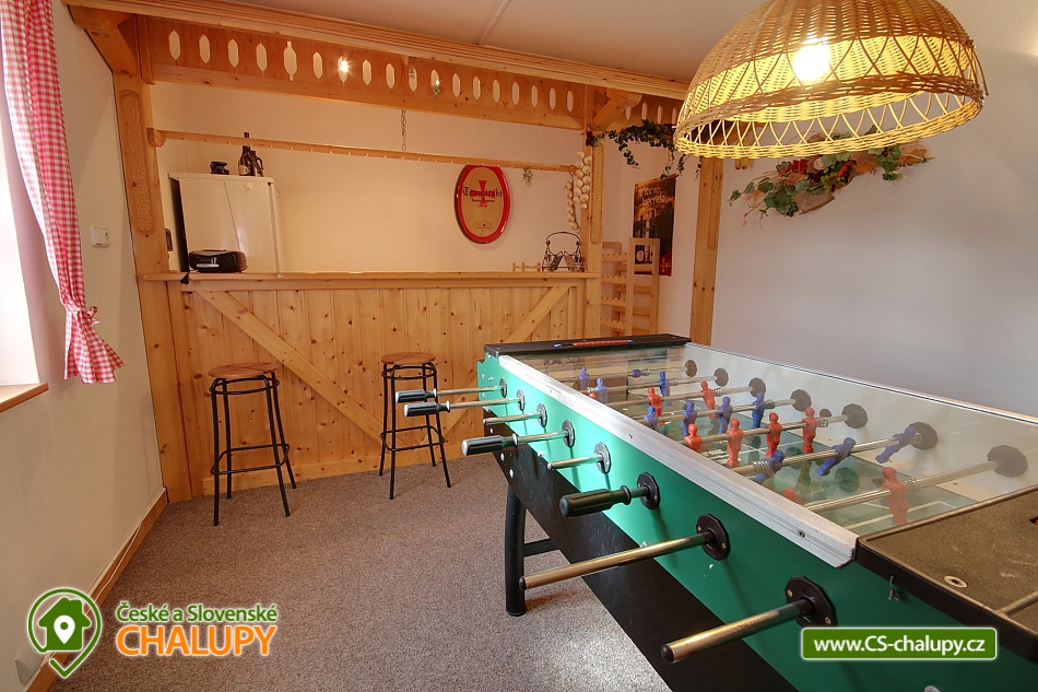 Sýkorova cottage - Suchá Rudná. Rent cottage Jeseníky, Praděd. Sýkorova cottage for rent Bruntál district. The comfortable Sýkorova cottage is located in the small village Suchá Rudná in the district of Bruntál in the Jeseníky Mountains at the foot of the Praděd Mountain. The cottage is in the middle, has a large garden and is in a beautiful valley surrounded by deep forests. On the ground floor in a hunting style of a furnished building there is a spacious lounge (sitting, bar with wine and fridge, CD player and table football), large living room (comfortable seat, large dining area, CD, TV / SAT, party games and wooden staircase to Floor) and fully equipped kitchen (refrigerator with freezer, electric oven, ceramic hob, kettle, microwave oven, mixer and complete dining service), there is a technical room with washing machine, dryer, iron and iron. Plank. On the ground floor there is also a bathroom with a toilet. On the floor of the cottage there are four completely identical bedrooms (in each bedroom 2 x double bed and TV / SAT) and large bathroom with toilet. Inside the cottage there is a lockable ski / bicycle. The property has a large 1500 m2 garden, an outdoor pool, an outdoor sitting area, a garden fireplace with all amenities, a piglet, a children's climbing frame, a swing, basketball basket and a well with drinking water. You can park directly at the property. The surrounding area is perfect for hiking, cycling, mushroom picking and winter sports.