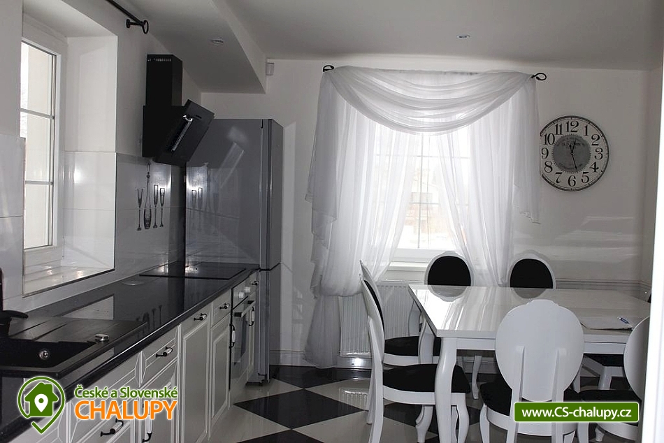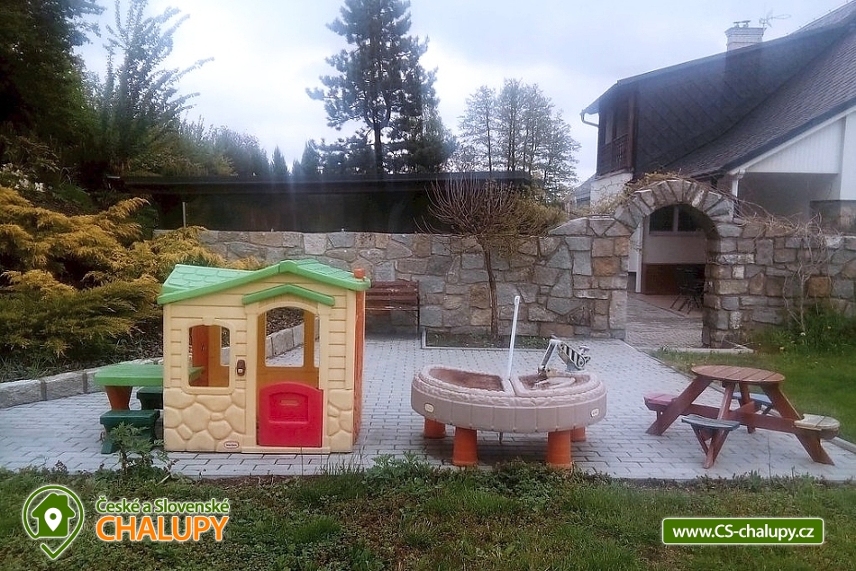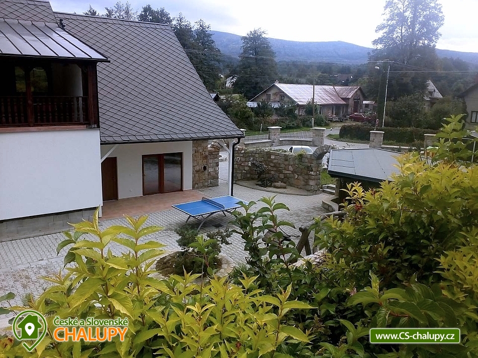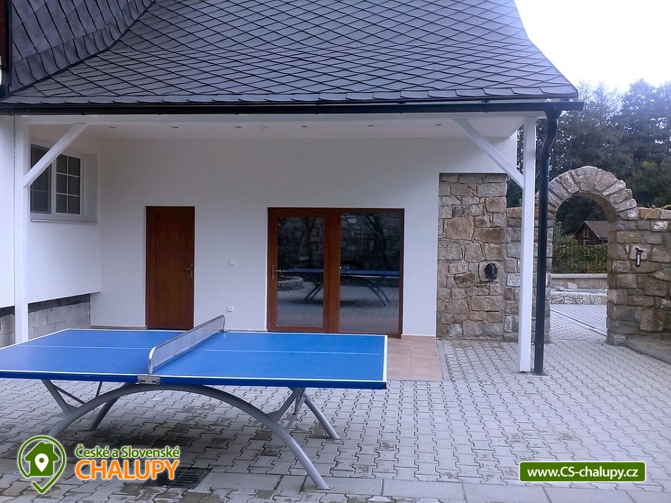 Chalupa s bazénem u Rychlebských stezek v Jeseníkách. Komfortní rekreační chalupa s bazénem, saunou a plážovým volejbalem zahrnuje kapacitu 16 lůžek + část Stodola 7 lůžek. Objekt nabízí nejen bikerům i jejich rodinám veškerý komfort poblíž Rychlebských cyklostezek, rybníků a zatopených lomů v Jeseníkách. Chalupa k pronajmutí poskytuje ubytování pro až 23 osob v 8 ložnicích. CHALUPA - nabízí obývací místnost s krbem a posezením. K přípravě jídel můžete využít kompletně zařízenou kuchyň. Pohodlí během spánku zajišťují tři 2-lůžkové pokoje, jeden 3-lůžkový pokoj (dětský pokoj pro 2 s přistýlkou, vhodný i pro dospělé) a prostorný podkrovní mezonetový Lovecký apartmán, jehož kapacita je připravena pro až 7 osob. V apartmánu je navíc terasa s posezením i kuchyňský koutek. Samozřejmě součástí každého jednoho pokoje je koupelna se sprchovým koutem (případně vanou) a toaletou. STODOLA - přijedete-li jako vícečetná skupinka hostů, můžete si pronajmout i Stodolu (Stodolu nelze pronajmout samostatně bez Chalupy). V přízemí se nachází plně zařízená kuchyň s obývací místností a polohovací sedačkou. Přímo v prostorách stodoly máme k dispozici dva 2-lůžkové pokoje a jeden 3-lůžkový pokoj. Dva z pokojů mají vlastní koupelnu se sprchovým koutem a toaletou přímo na pokoji, jeden má jen toaletu. Nejen rodiny s dětmi ocení možnosti využívání všech vnějších aktivit. Výborně padne posezení pod pergolou s možností grilování nebo vaření kotlíkového guláše. Velká kuchyň v přízemí chalupy: velká lednice, myčka nádobí, indukční varná deska, trouba, mikrovlnná trouba, varná konvice, Kávovar na překapávanou kávu, Presovač Krups (na kapsle Dolce Gusto), tyčový mixér, topinkovač, toustovač, vaflovač. Kuchyňka v Loveckém apartmá: varná deska, malá lednice, varná konvice, kávovar na překapávanou kávu, dále na chodbě před Loveckým apartmá je kávovar Krups Dolce Gusto na kapsle a další varná konvice. Vybavení Stodoly: Velká lednice, myčka nádobí, mikrovlnná trouba, malá trouba, rýžovar, kávovar na překapávanou kávu, kávovar Krups Dolce Gusto na kapsle, polohovací sedací souprava, v pokoji Bella polohovací postel s ovládáním. Dětičky si mohou zahrát na bohatě vybaveném dětském hřišti, případně si v případě nepříznivého počasí hrát v dětském koutku na zahradě nebo zašívárně ve sklepě s kulečníkem a dalšími hrami. Jsme baby friendly a máme tak k dispozici také dětskou postýlku a jídelní židli. Venku si můžete zahrát plážový volejbal či badminton. K dispozici je také trampolína a venkovní stolní tenis. Po náročném dni dobře padne odpočinek ve venkovním krytém bazénu (koupání obvykle od května do konce září) nebo ohřátí se v infrasauně. Večery můžete trávit u ohýnku v lesíku přímo na zahradě. Nechybí u nás ani úschovna kol s držáky na kola. V celém domě jsou na oknech sítě proti hmyzu. V rámci našeho ubytování je samozřejmostí bezplatné WiFi internetové připojení. Parkování vozidel je také možné přímo u objektu. Jelikož se nacházíme v lokalitě poblíž Rychlebských stezek (dům leží 1,5 km od jejich základny), naše ubytování vyhledávají především cyklisté. Vykoupat se můžete i v zatopených lomech nebo rybnících. Kromě cyklistiky, turistiky, plavání a houbaření můžete také absolvovat jízdu na koních. Nechybí ani tenis, hledání křišťálů, rybaření, lezení po skalách nebo výlety do Polska. Bouldering - lezení po skalách: Smolný Vrch, Princovy Skály v Žulové - na obrázku, Píšťala, Borový Vrch, Řeznické Skály, 7 skal, Žulový Vrch, Venušiny Misky, Sokolí Skály, Kraví Skály, Šafářova Skála. V zimě můžete využít okolní ski areály, kde si dokonale zalyžujete na upravovaných sjezdovkách. Těšíme se na Vás u nás.