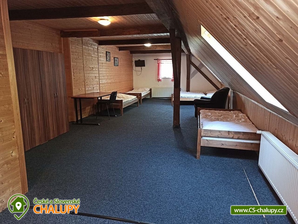 Pronájem horská chalupa Salaš - Zdobnice - Orlické hory. Horská Chalupa Salaš s kapacitou 25 osob se nachází na nejkrásnějším a nejslunečnějším místě horské obce Zdobnice v Orlických horách. Má výhodnou polohu přímo nad ski areálem Zdobnice a to proto, že lyžařské vleky jsou tak blízko, že není nutné přejíždět autem. Plně vybavená kuchyň s velkou společenskou místností výčepním zařízením (el.sporák s ektrickou troubou dvakrát, myčka, rychlovarná konvice, lednice s mrazákem, mikrovlnná trouba, talíře, hrnce adt.) V chalupě je 6 ložnic.: 1. Ložnice je v přízemí a prochází se z ní do 2. ložnice, 2. ložnice ta má celkem 4 lůžka (1x palanda, 1x dvojlůžko) a šatní skříň. První ložnice má 2 lůžka ( 1x dvojlůžko). Vybavení: sedací soupravu, jídelní stůl pro 8 lidí, Led TV s USB, kuchyňský kout a samostatné WC a prostorná sprcha. 3. Ložnice je v prvním patře má celkem 4 lůžka (2x jedno lůžko, 1x dvojlůžko). Vybavení: šatní skříň, Led TV s USB , koupelna WC a sprcha. 4. Ložnice je v prvním patře má celkem 4 lůžka (2x jedno lůžko, 1x dvojlůžko). Vybavení: šatní skříň, Led TV s USB , koupelna WC a sprcha. 5. Ložnice je v prvním patře má celkem 6 lůžek (4x jedno lůžko, 1x dvojlůžko). Vybavení: šatní skříně, Led TV s USB , koupelna WC a sprcha. 6. Ložnice je v prvním patře má celkem 5 lůžka (3x jedno lůžko, 1x dvojlůžko). Vybavení: šatní skříně, Led TV s USB , koupelna WC a sprcha. Chalupa leží v nadmořské výšce 700m, v Chráněné krajinné oblasti Orlické hory. Není zde problém potkat nějakého jelena, muflona, lišku a další zvěř. Toto je jedno z mála míst, kde skutečně ještě není příroda zničena. Zdobnice se nachází přímo v srdci chráněné krajinné oblasti Orlické hory a je ideálním výchozím místem pro pěší turistiku a cykloturistiku. Obcí Zdobnice prochází hlavní cyklotrasa Orlických hor, která spojuje Deštné v Orlických horách, Říčky a Bartošovice. Chata v Orlických horách je také využívána k ubytování milovníky houbaření a rybaření. Ubytování Orlické hory - v zimě: Chalupa Vás přivítá v klidném lyžařském středisku Zdobnice v Orlických horách. Náročnější lyžaři mohou využít sjezdové tratě ve střediscích Říčky v Orlických horách nebo Deštné v Orlických horách. Poloha ve středu chráněné krajinné oblasti Orlické hory a nadmořská výška 680 m. n.m. je výhodná i pro milovníky běžek. Po 5 km stoupání po strojově upravené běžecké stopě se dostanete na hlavní lyžařskou magistrálu Orlických hor Jiráskovu cestu, která spojuje nejvyšší horu Orlických hor Velkou Deštnou a Komáří vrch. Z lyžařské magistrály je nádherný výhled na celé Orlické hory, Jeseníky a na krajinu východních Čech a jižního Polska. Pro milovníky běžek je upravován i Zdobnický okruh s krásnými výhledy, který měří devět kilometrů a spojuje Zdobnici s obcí Říčky v Orlických horách. K odpočinku po namáhavém lyžování můžete využít i služby bazénu v Rychnově nad Kněžnou.
