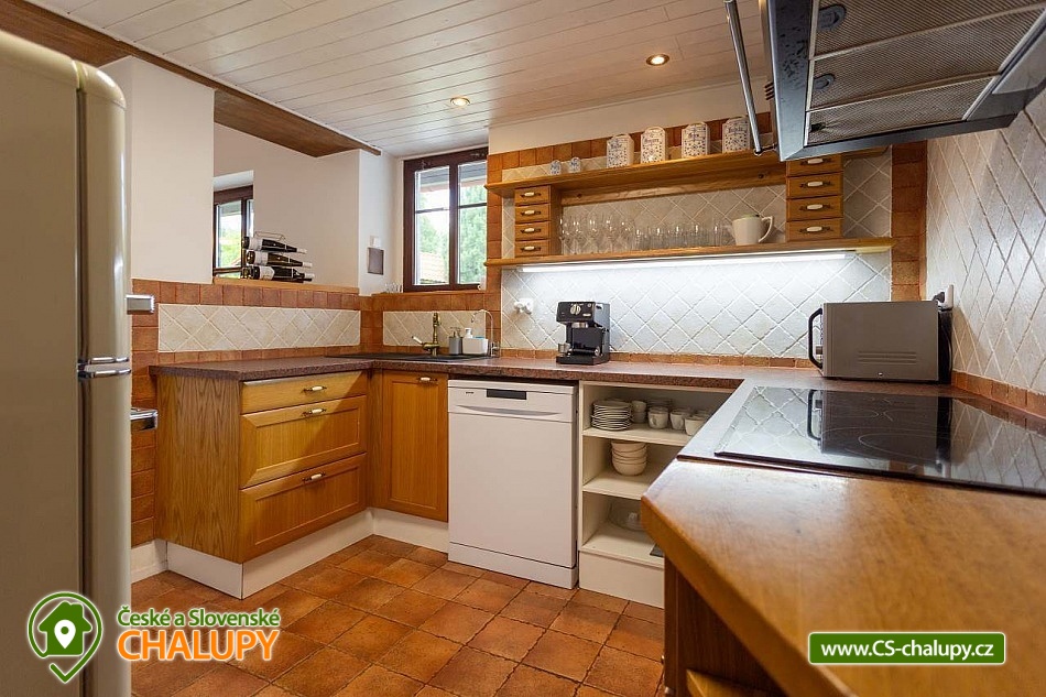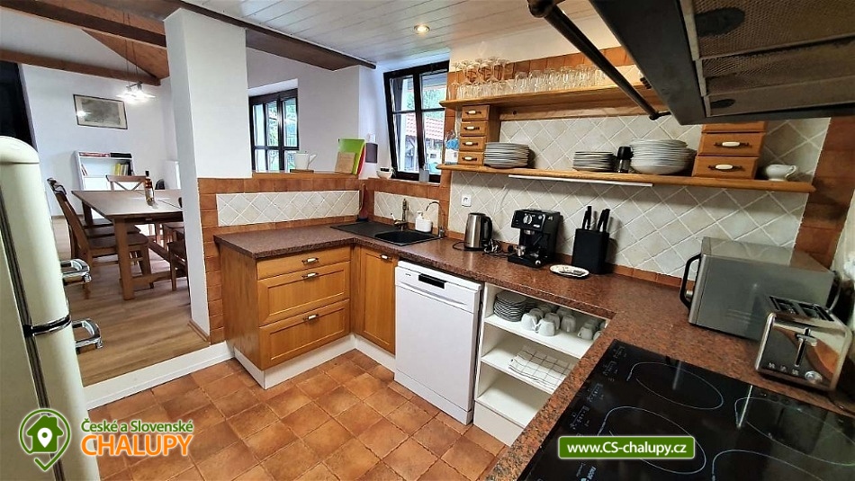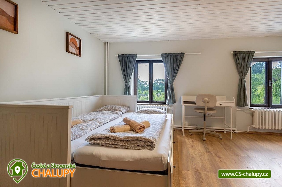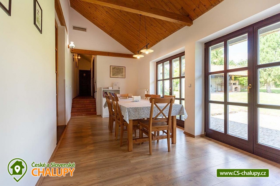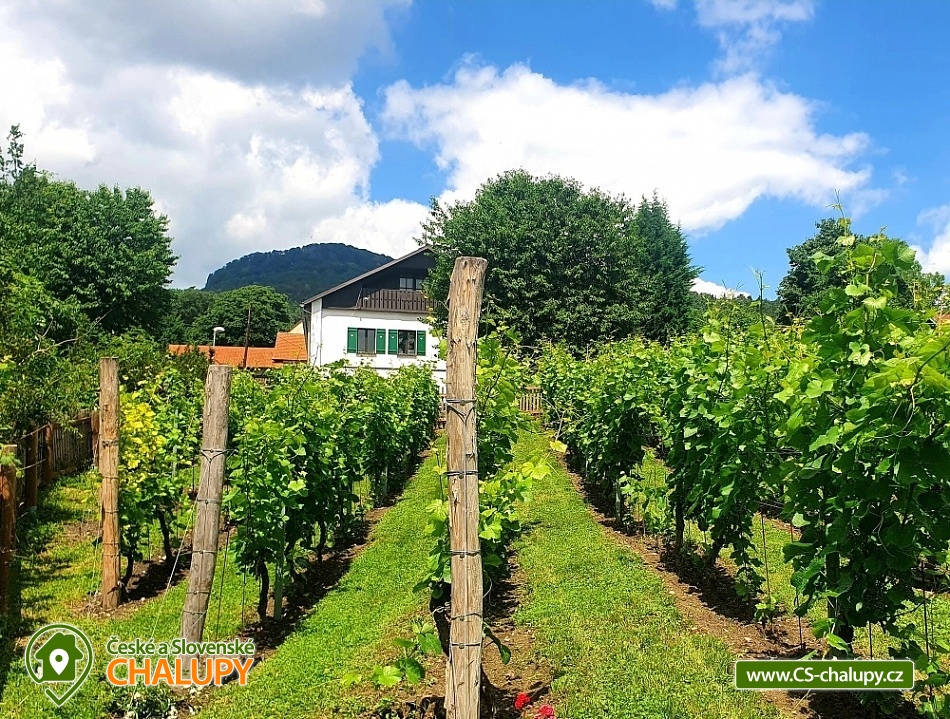 HAUS 44 - cottage with pool Liběšice - Horní Chobolice - PLA České středohoří. We offer a cottage for rent for up to 8 people in 3 bedrooms. The surroundings of the cottage consist of a large fenced grass field, 2 gazebos with a smokehouse and a grill, and a 6x3 m swimming pool. The land is completely fenced and you do not share it with anyone else. The cottage is located in the picturesque village of Horní Chobolice, which lies at the foot of the Sedlo mountain in the wonderful environment of the PLA České středohoří. The family house is adjacent to the vineyard and is close to the forest. The cottage is entered through a small corridor into the living area with a tiled stove, a large sofa and satellite TV. There is also a bathroom with a shower, a separate toilet and a spacious closet. Another room on the ground floor is a dining room with a kitchenette and large French windows to the private mature garden. The fully equipped kitchen is equipped with a 4-plate glass-ceramic el. hob, microwave oven with grill and hot air, kettle, toaster, fridge with freezer, dishwasher. A small staircase leads to a bedroom with a double bed and a private bathroom with a bathtub. The children's room then offers 4 places on two comfortable sofa beds. The spiral staircase leads to the attic, where there is a second bedroom with a double bed and satellite TV. The room is complemented by a private balcony overlooking the vineyard. Heating is provided by a heat pump and a fireplace stove. Parking is possible directly at the property in a fenced parking lot for 2 cars, in front of the cottage for another 1 car. Our cottage is mainly offered for families with children and for lovers of hiking, cycling, nature, monuments and good wine, which is produced directly by our winery. In the vicinity of the Ploskovice castle, the historic town of Úštěk, the Chmelař lake, the Helfenburk castle, the national nature museum Zubrnice, the city of Litoměřice. Mount Sedlo at an altitude of 726 m is the fourth highest mountain in the České středohoří, and its entire peak with an area of 42.2 ha is protected as the Sedlo National Nature Reserve in the České středohoří PLA. The reason for this protection is the remains of original deciduous forests with rare flowers. The view is priceless, we guarantee it.